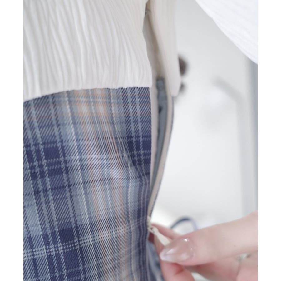 ハイウエストで切り替えたチェック柄のスカートは、