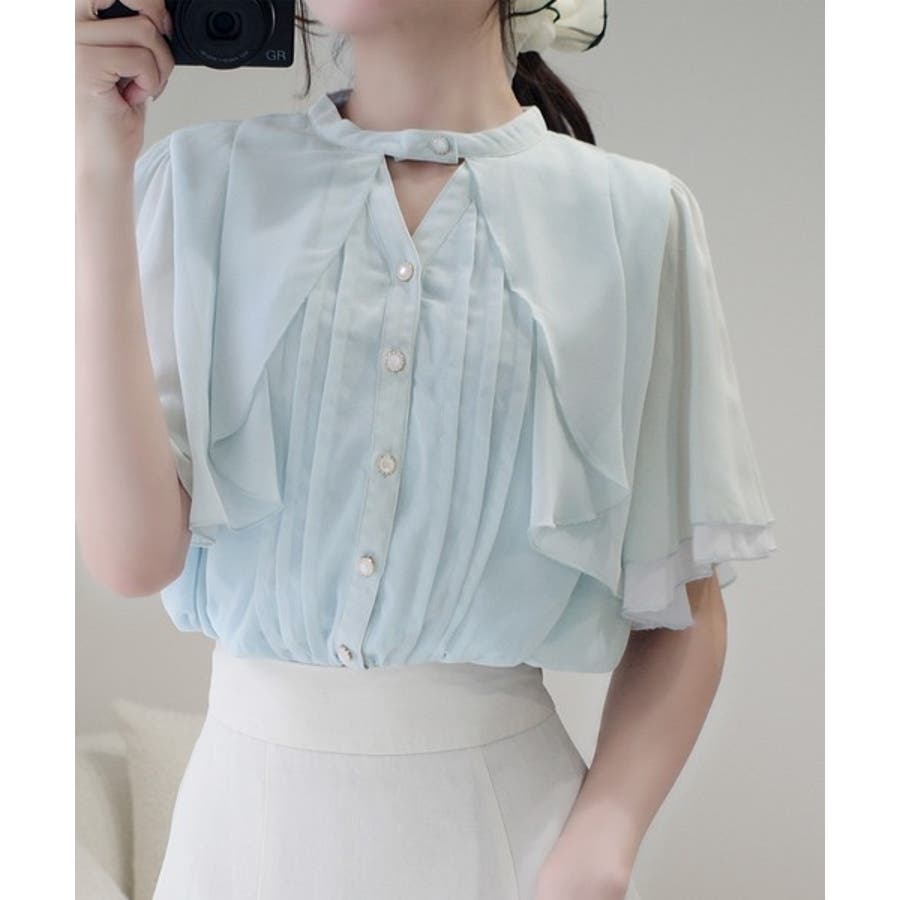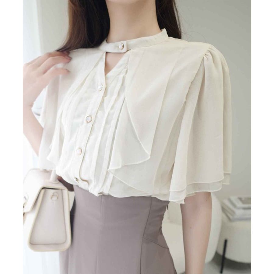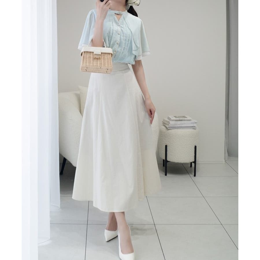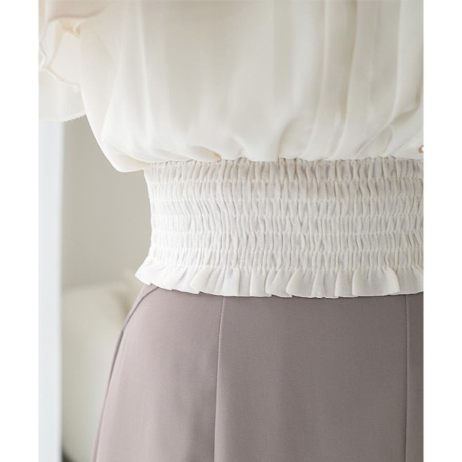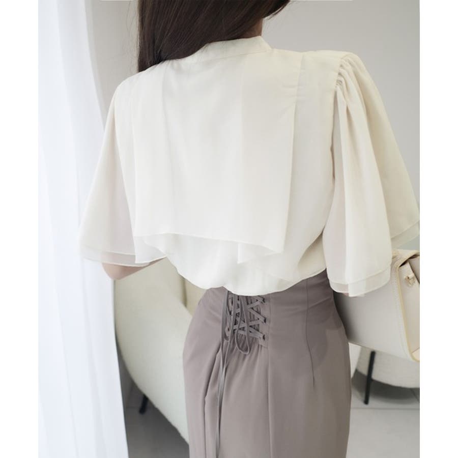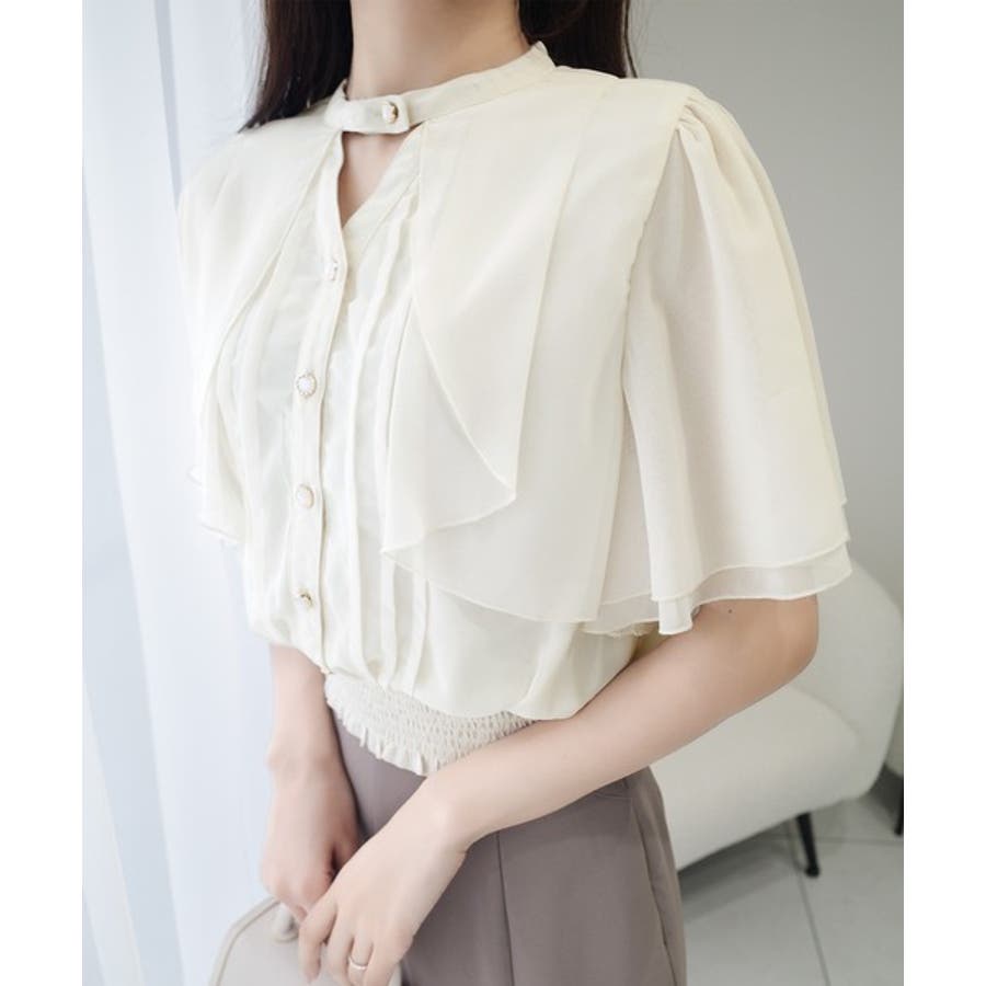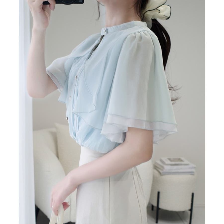 ボディから広がるダブルフリル袖がレディライクな印象を与え、