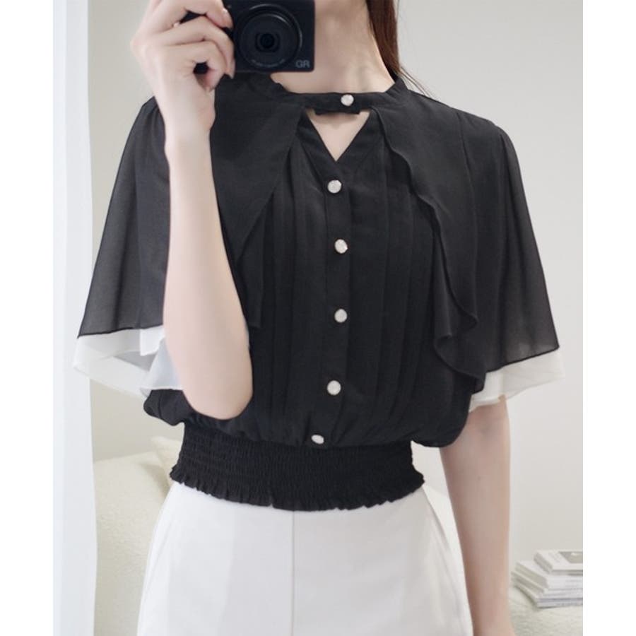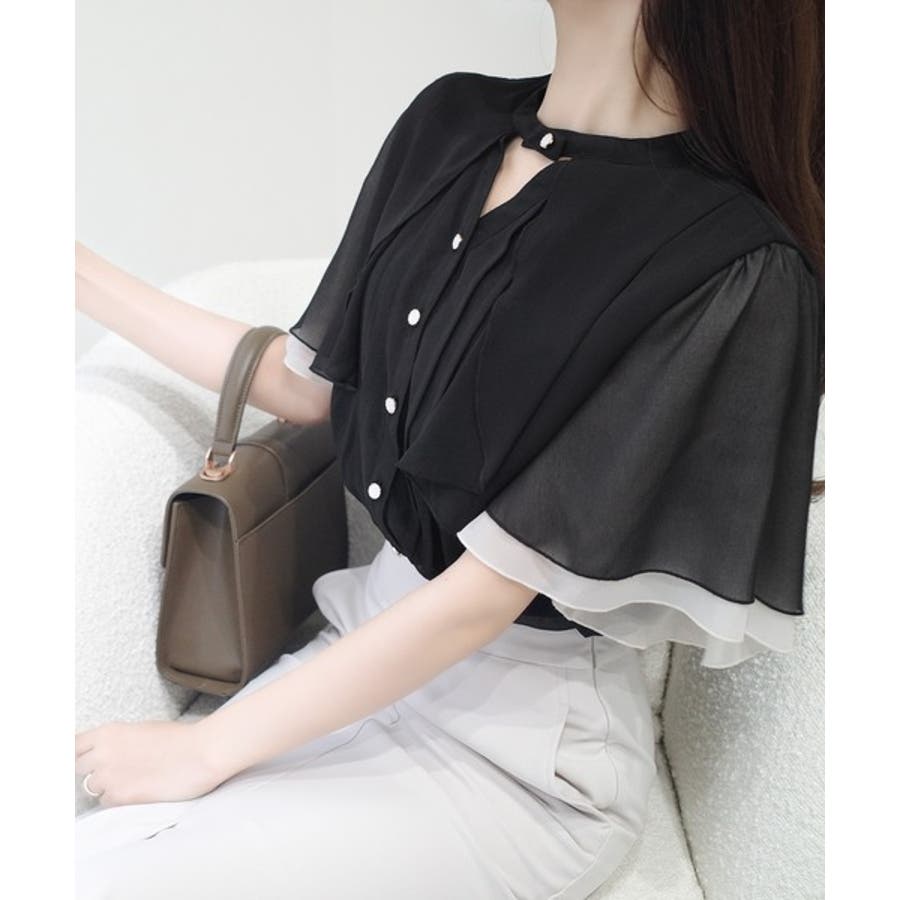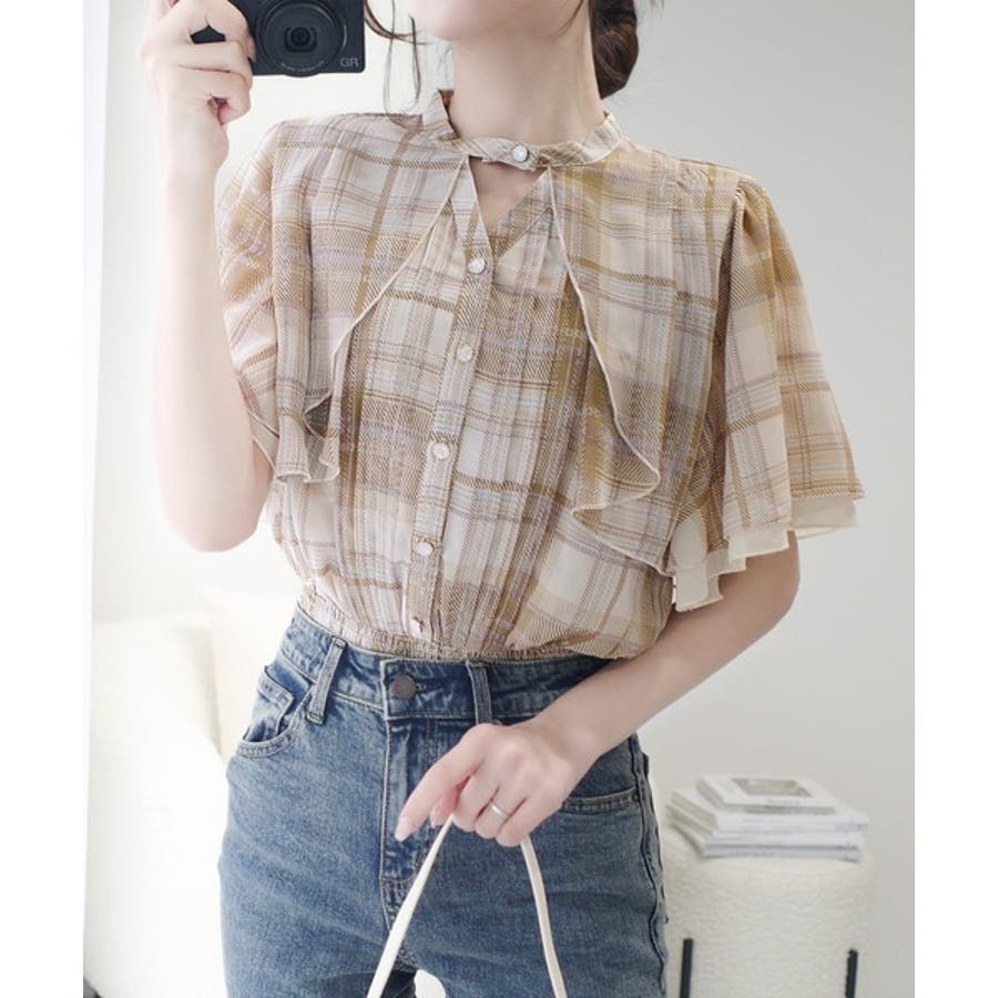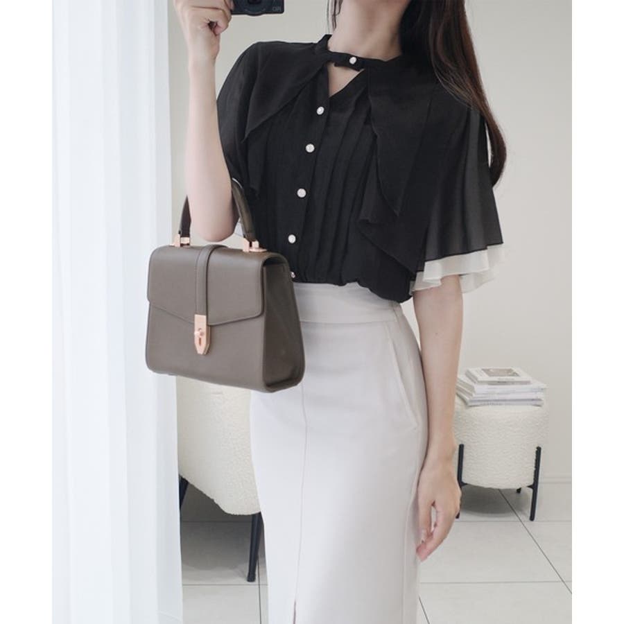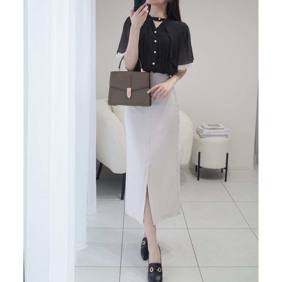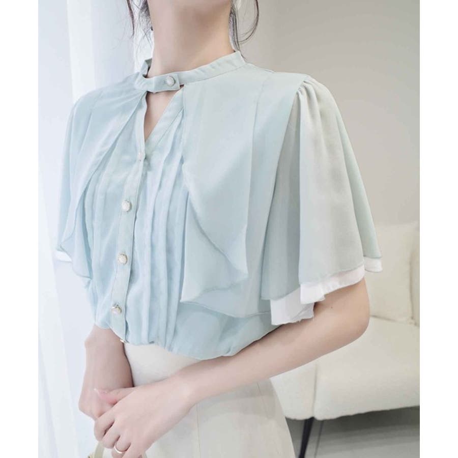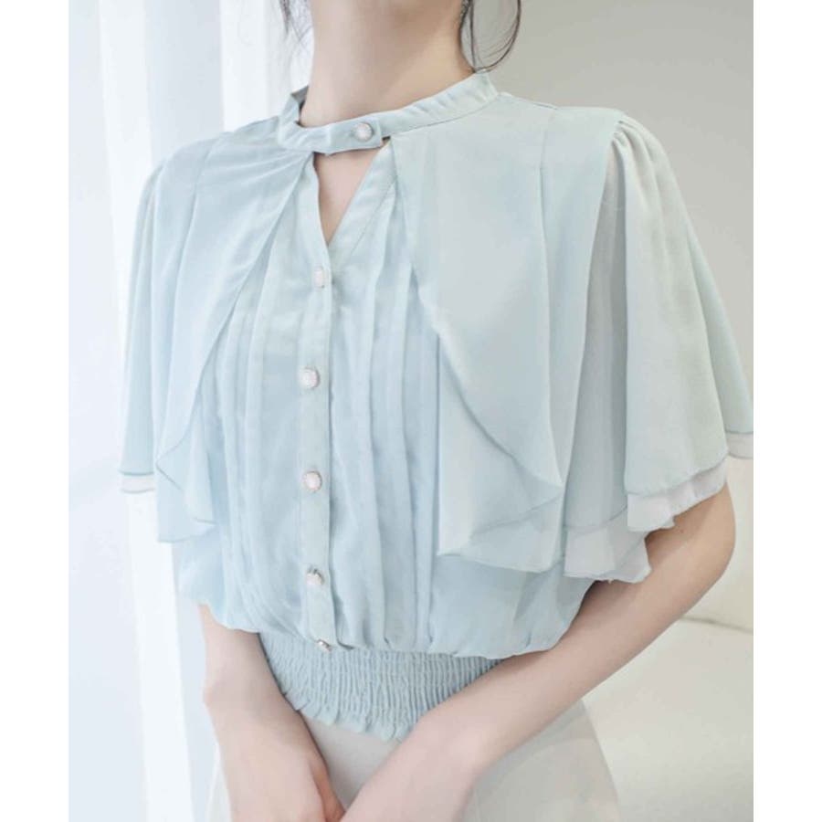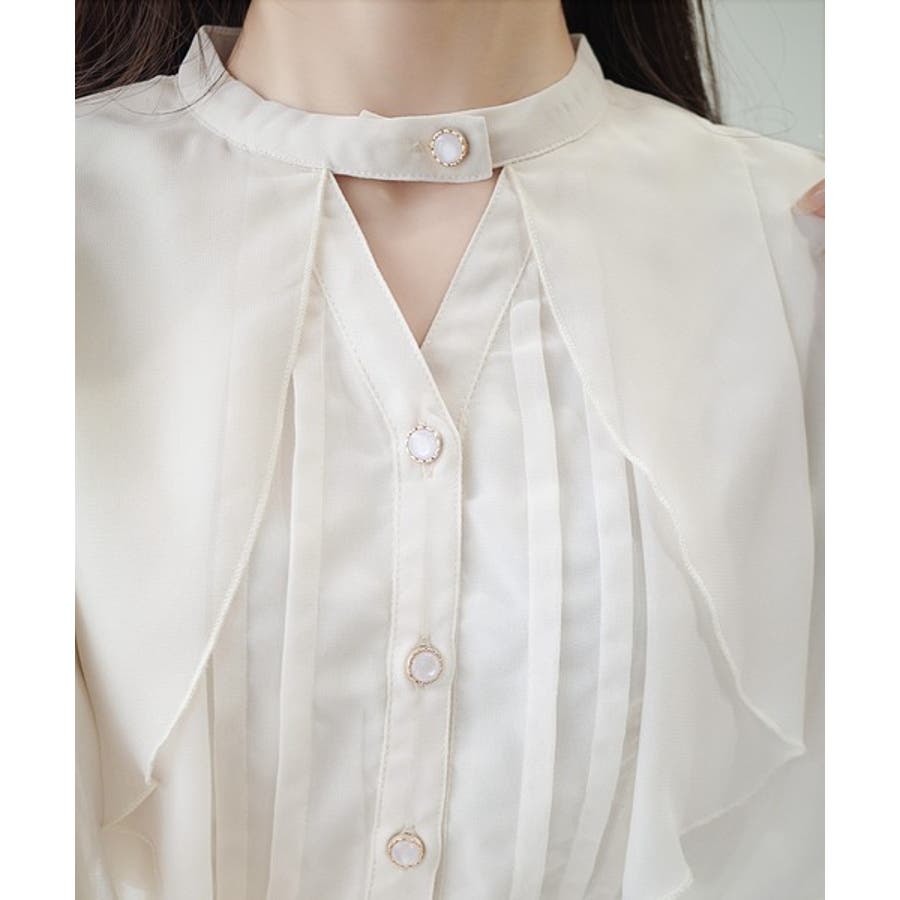 ボディから広がるダブルフリル袖がレディライクな印象を与え、