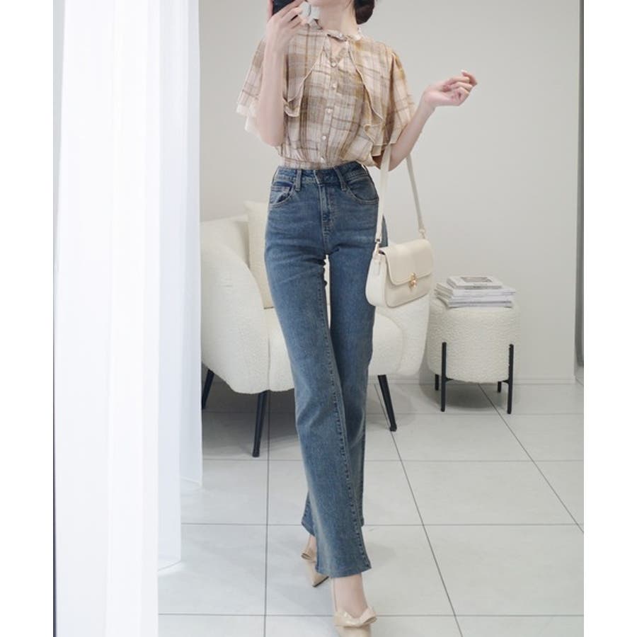 その日の気分に合わせてデニムやフレアパンツを合わせてもOK◎