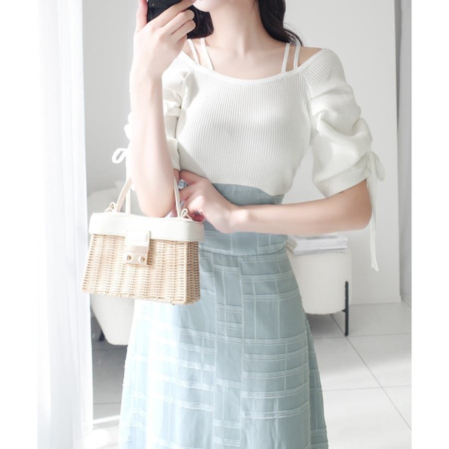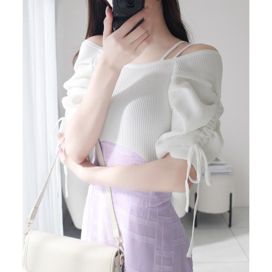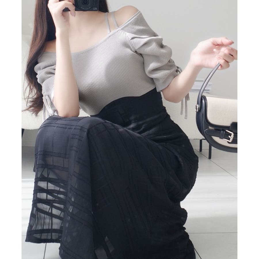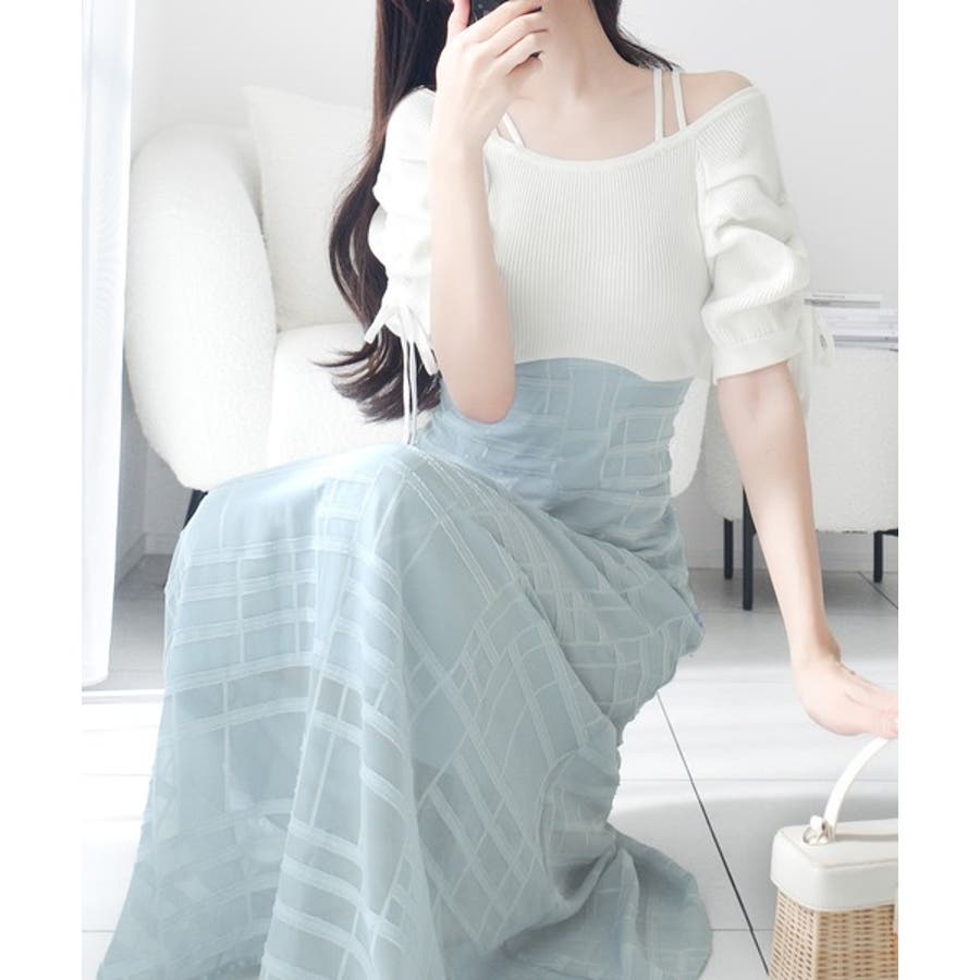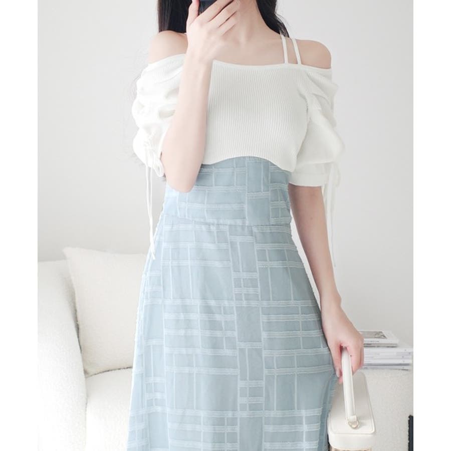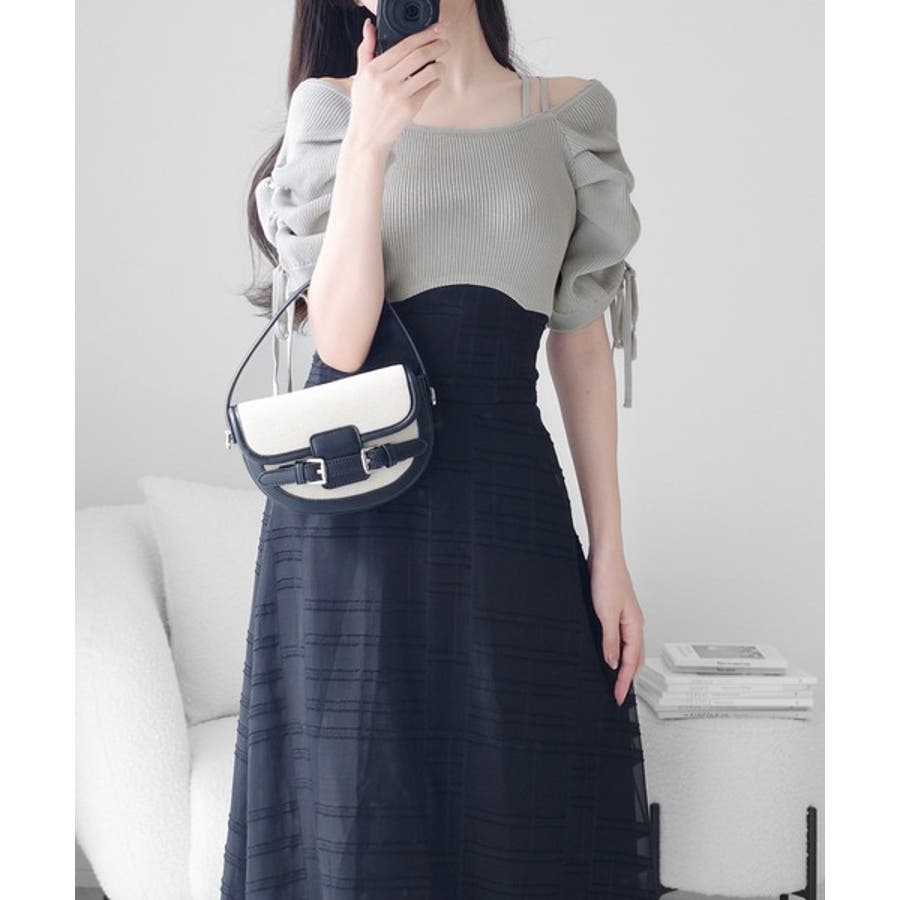1枚で映える主役級。オフショル2wayパフ袖リボンニットドッキングワンピース