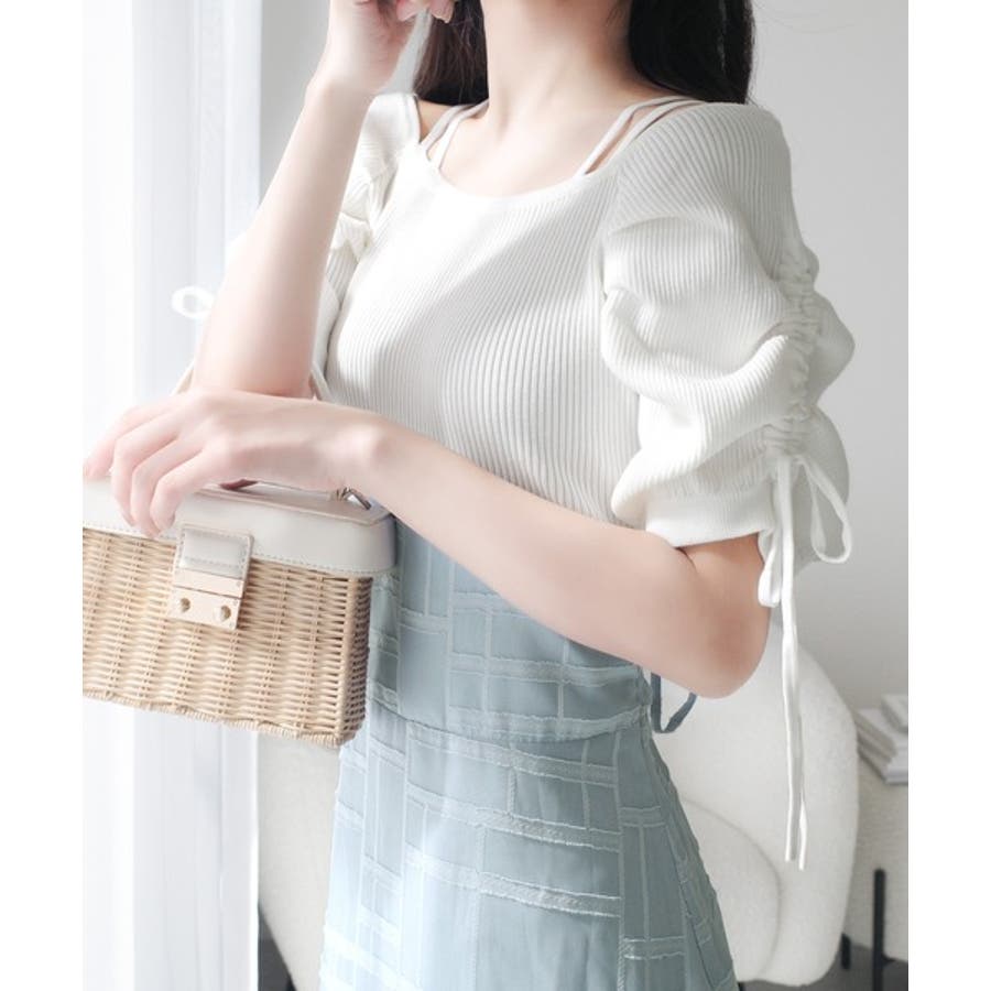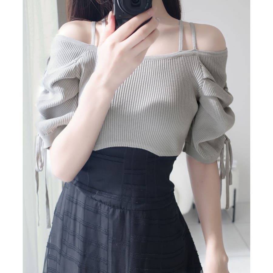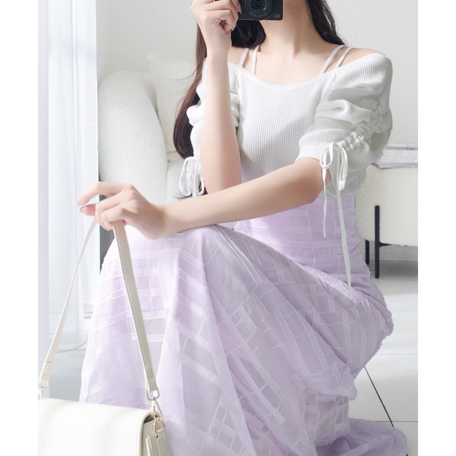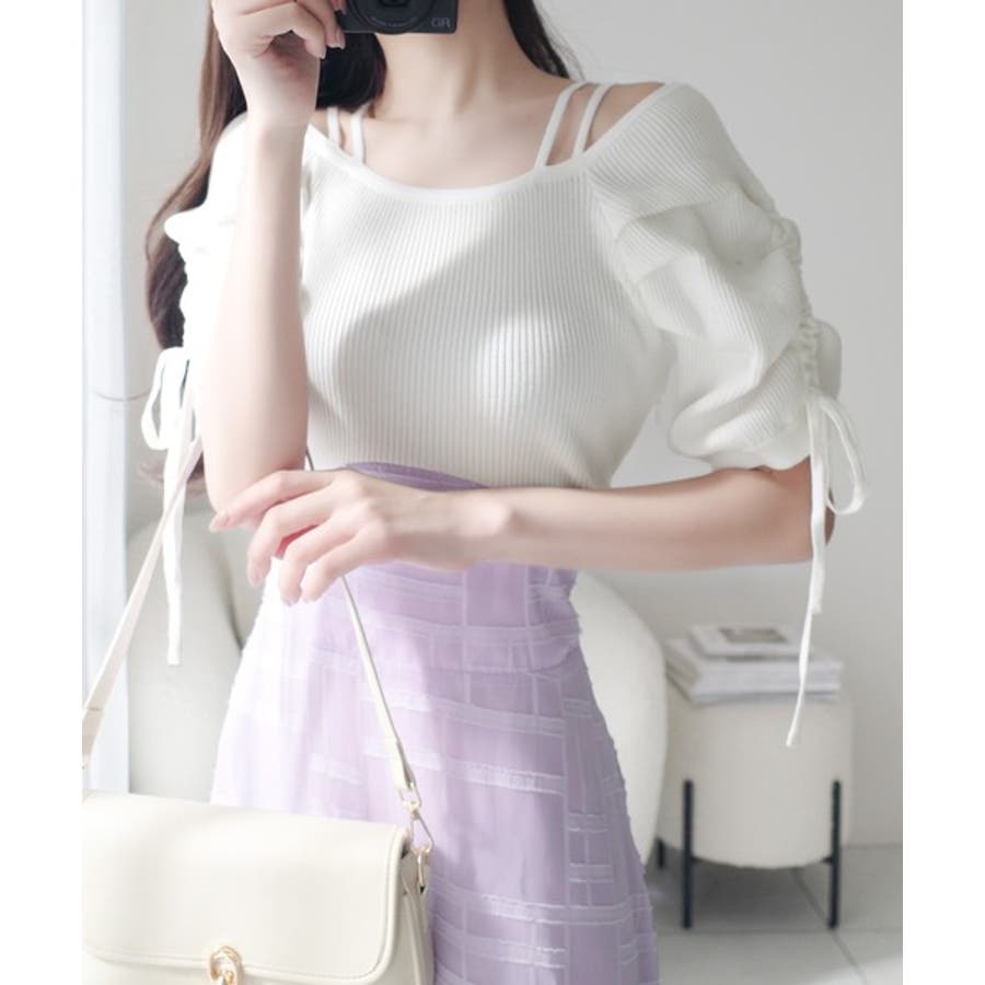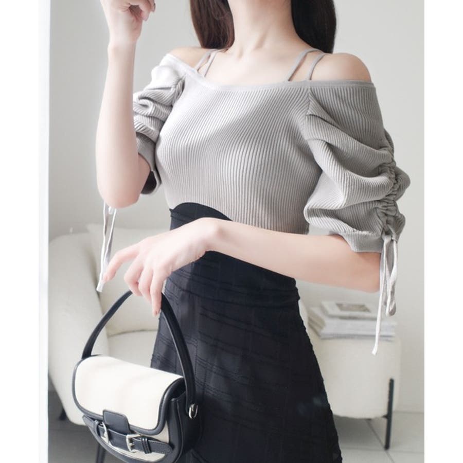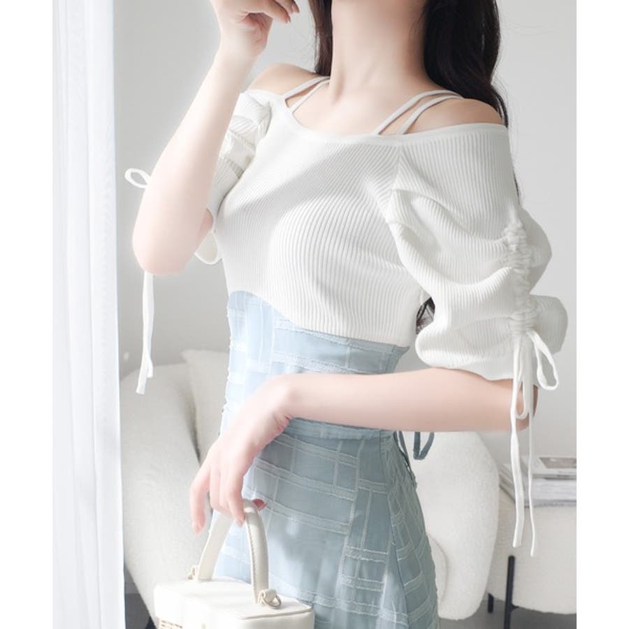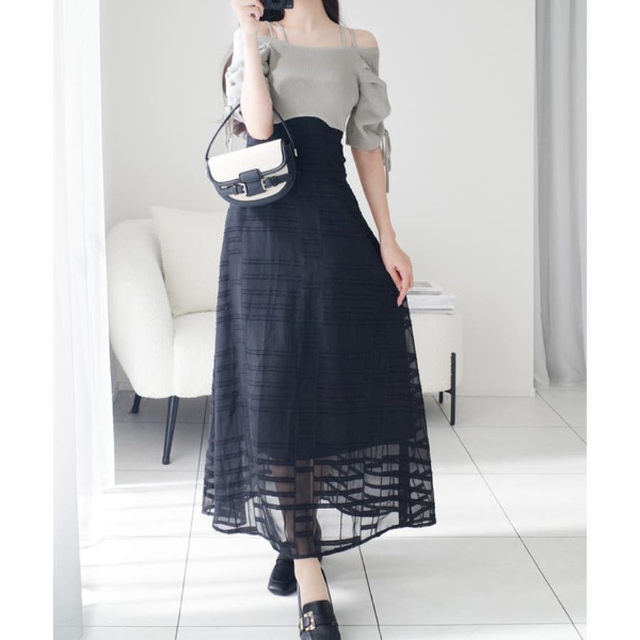 1枚で映える主役級。オフショル2wayパフ袖リボンニットドッキングワンピース