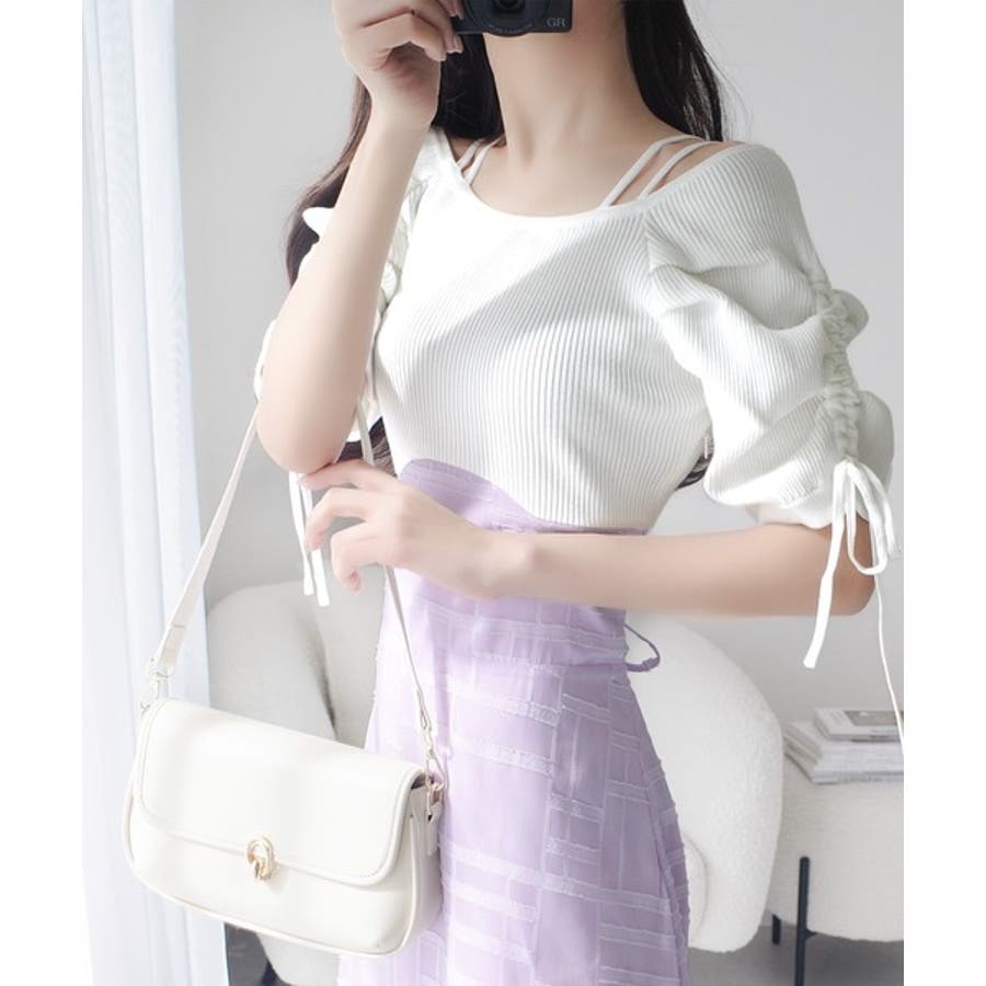 オフショルとしても楽しめるデザインでダブルの肩紐で抵抗なく肩見せできます。