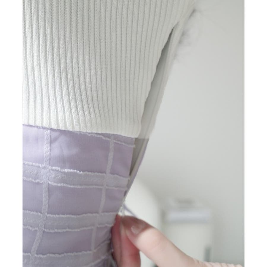 (リブニットとオパールチェック柄の組み合わせ)
