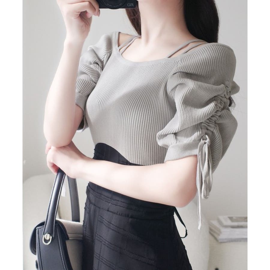 ボリューム感たっぷりのパフ袖に、リボンをプラスしてガーリーなアクセントをON。