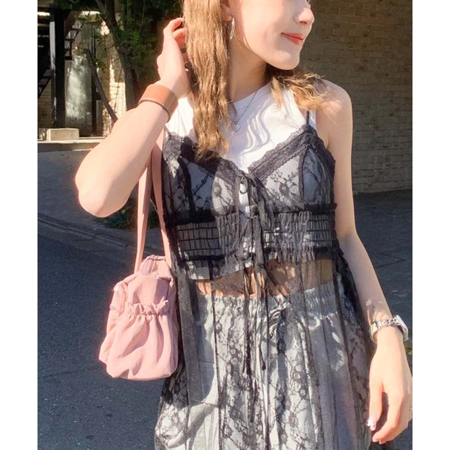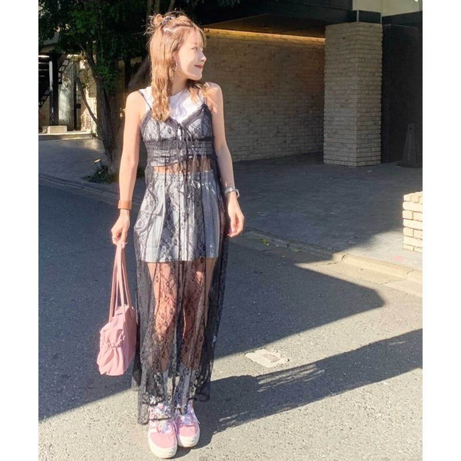 【mily bilet】トレンド満載大人ガーリー。レース使いシアーキャミワンピー…
