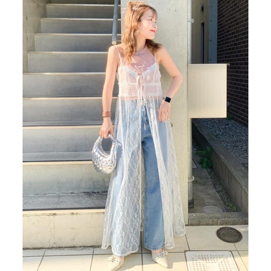 軽やかなレース素材が、夏の暑い日にも涼しげな印象を与えます。