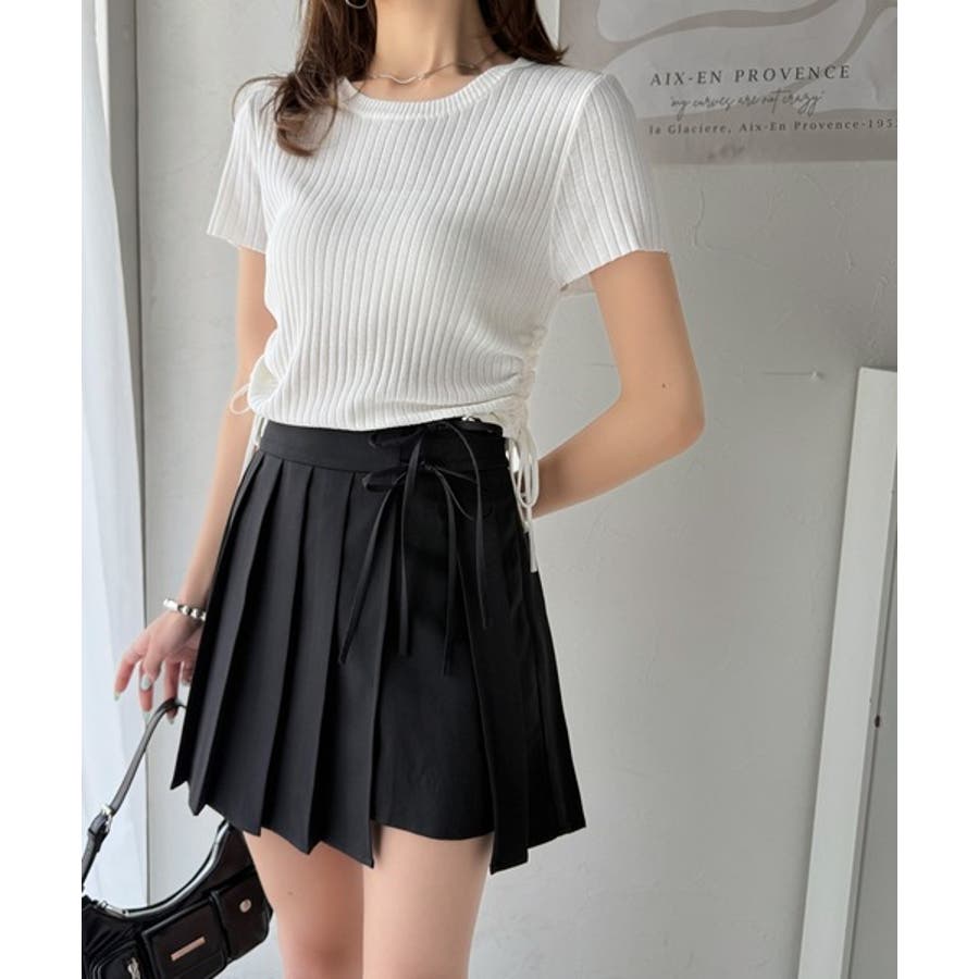 軽やかなプリーツとリボン使いが大人可愛いミニボトム。