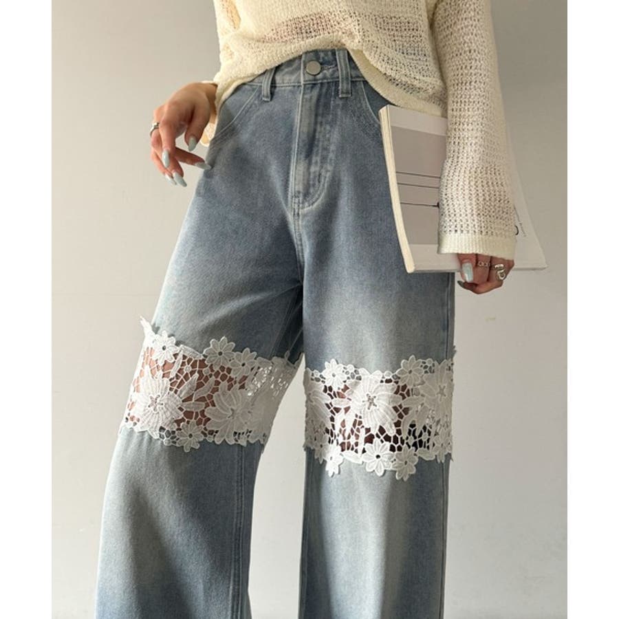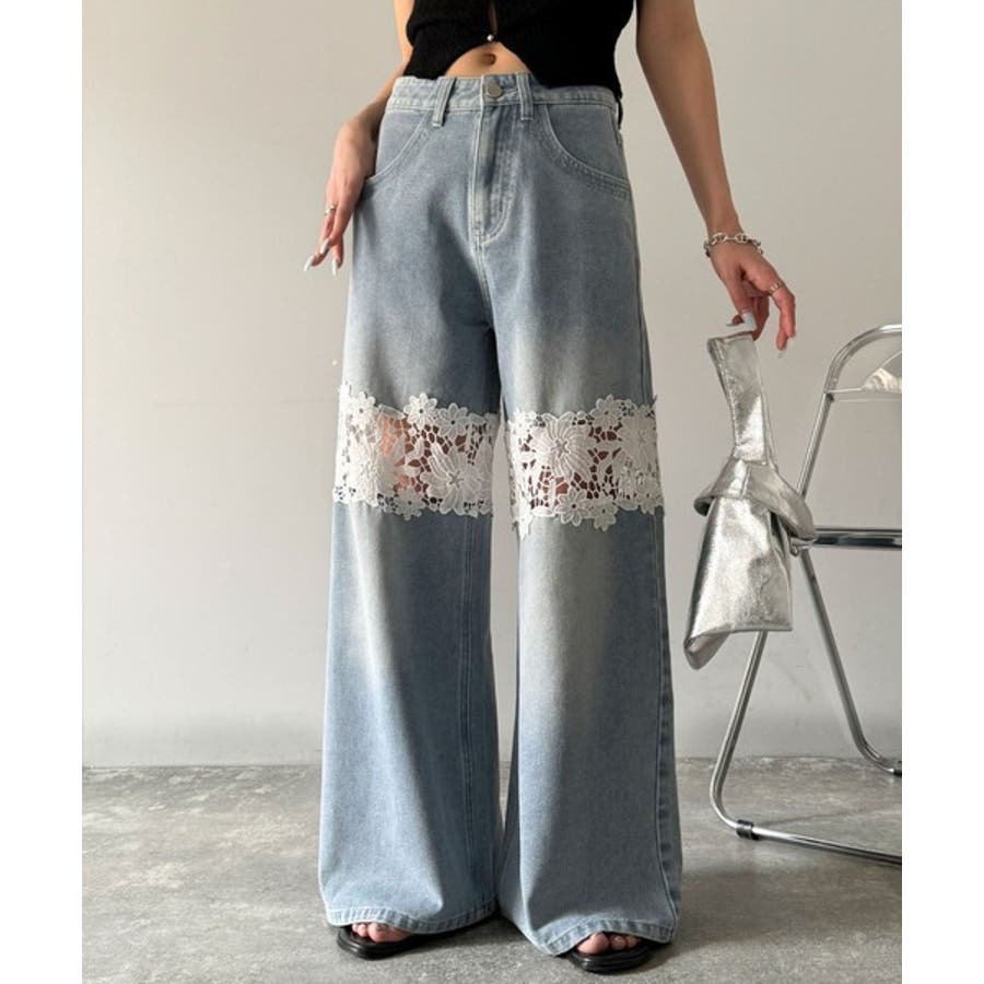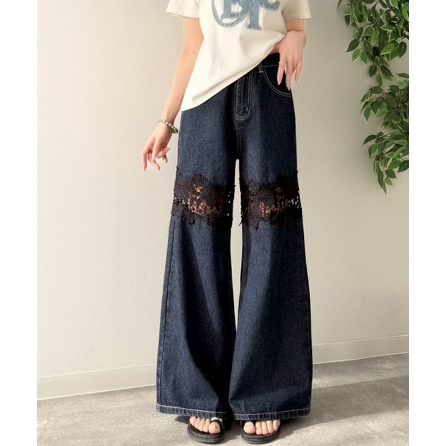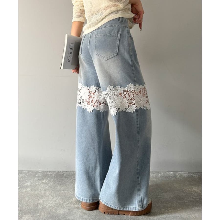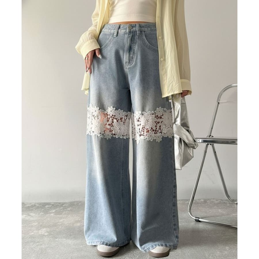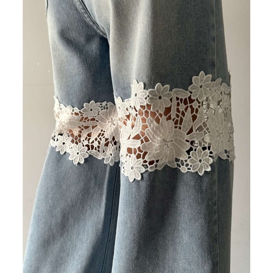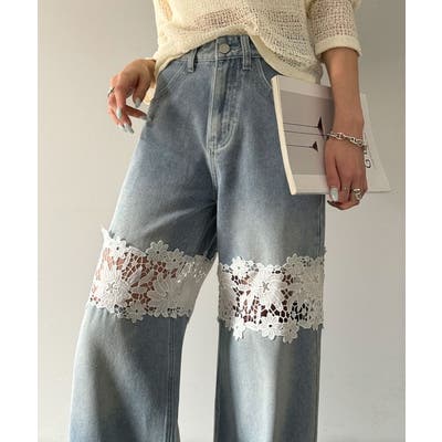 花柄レースワイドデニムパンツ♪