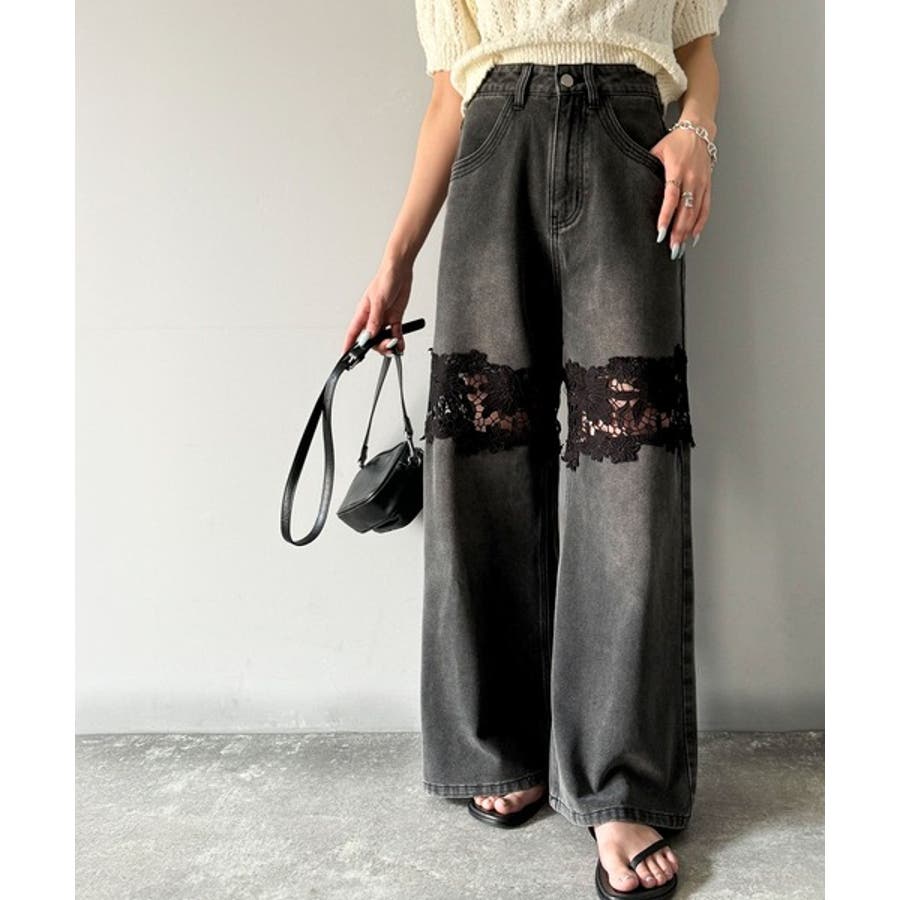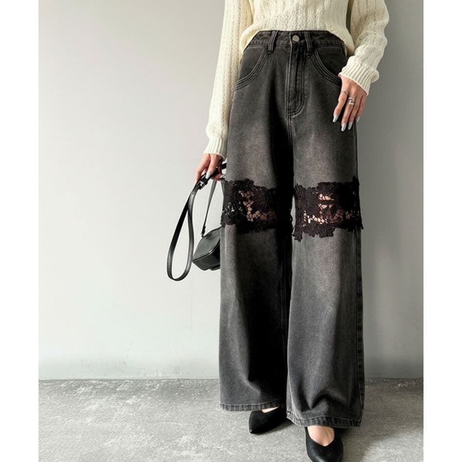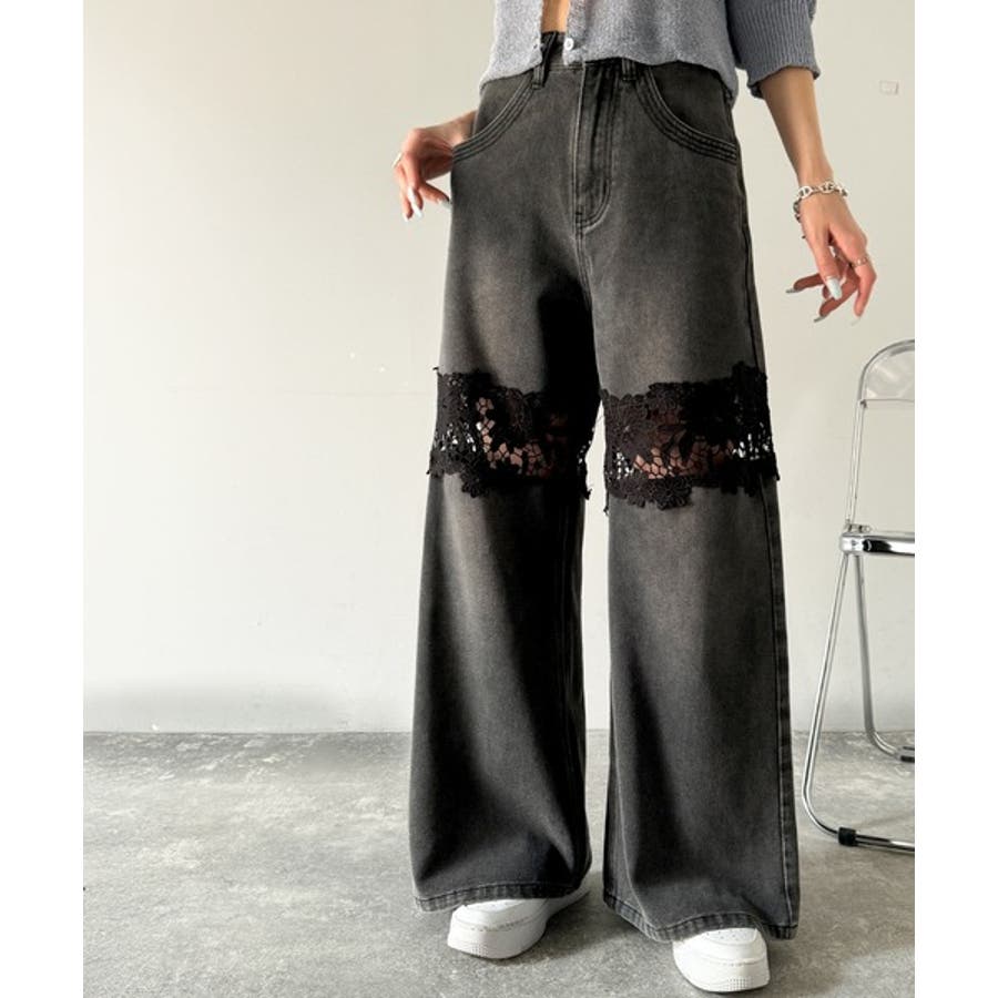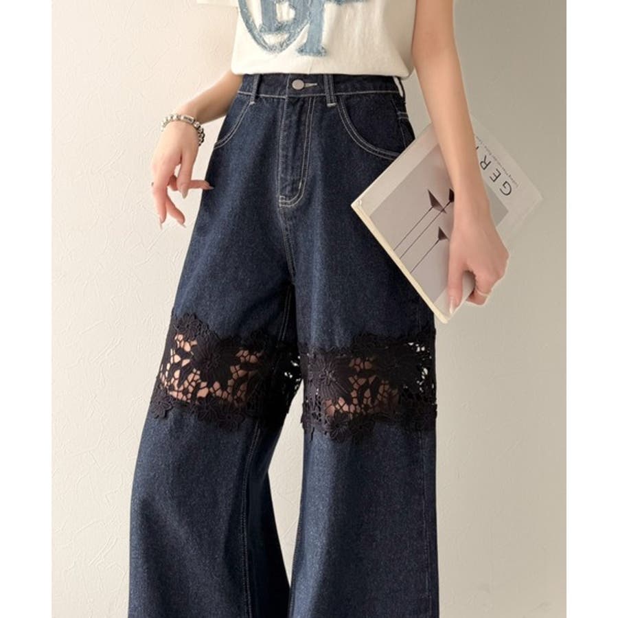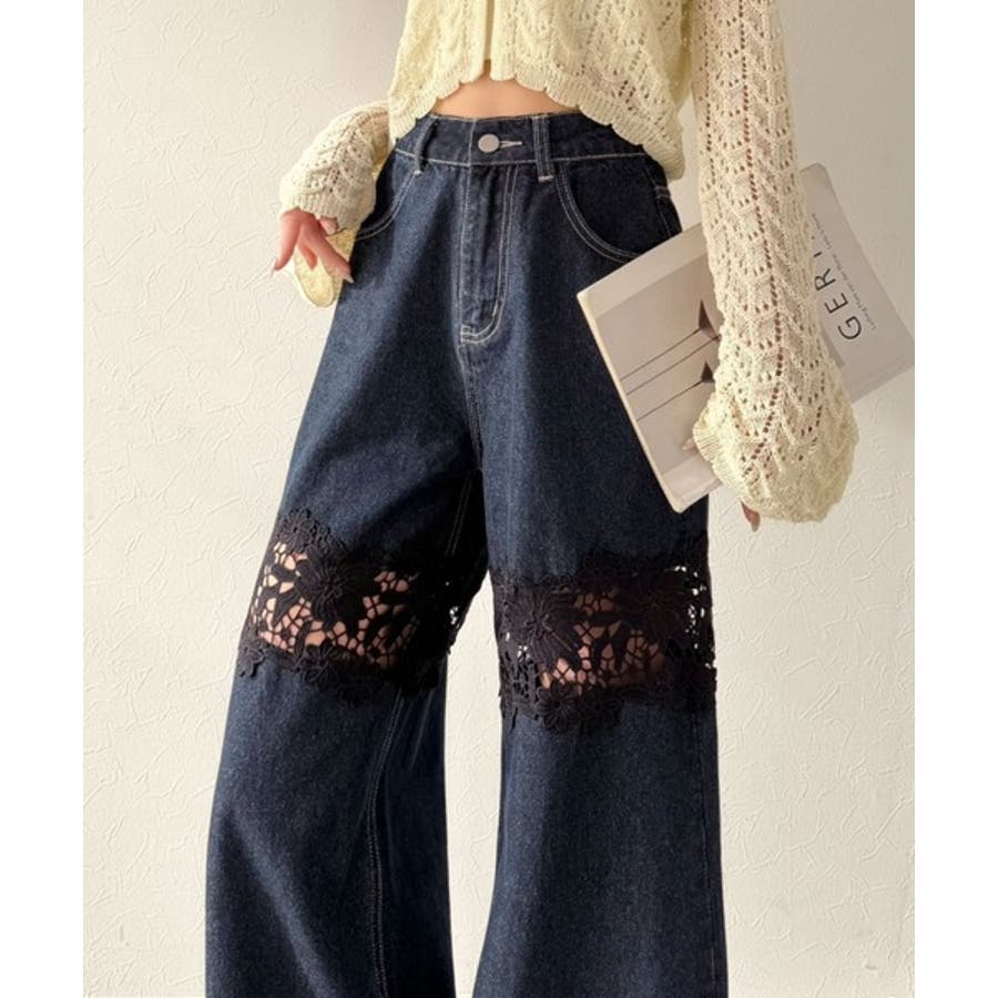 花柄レースワイドデニムパンツ♪