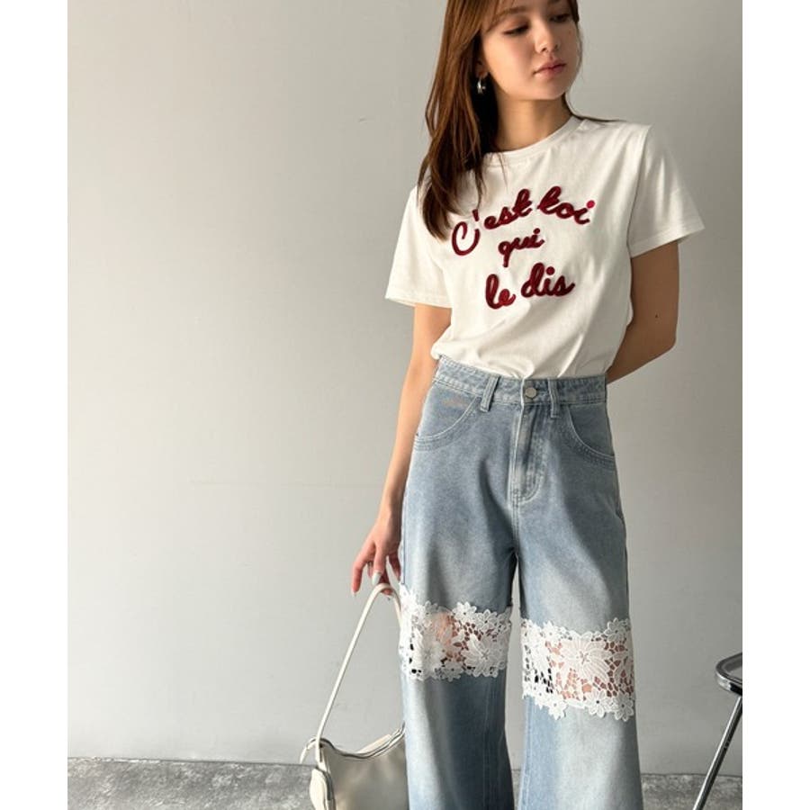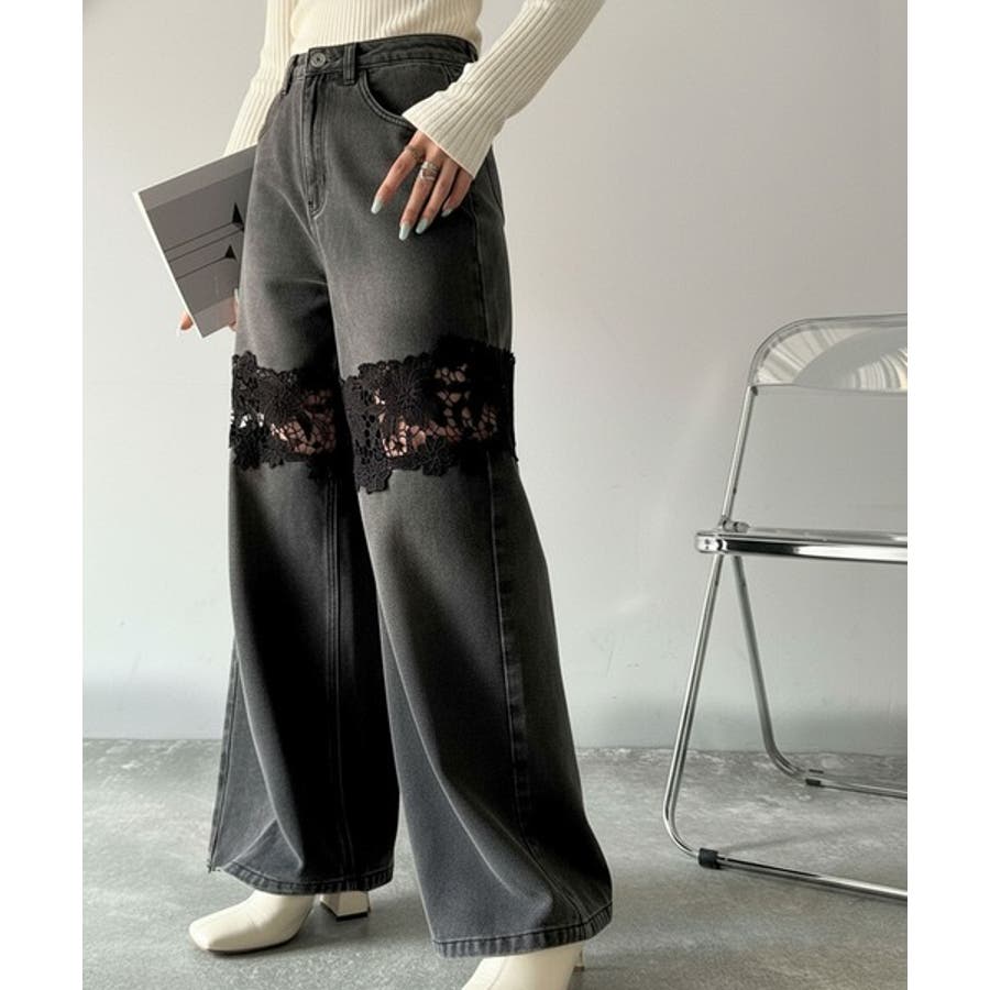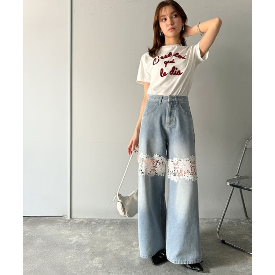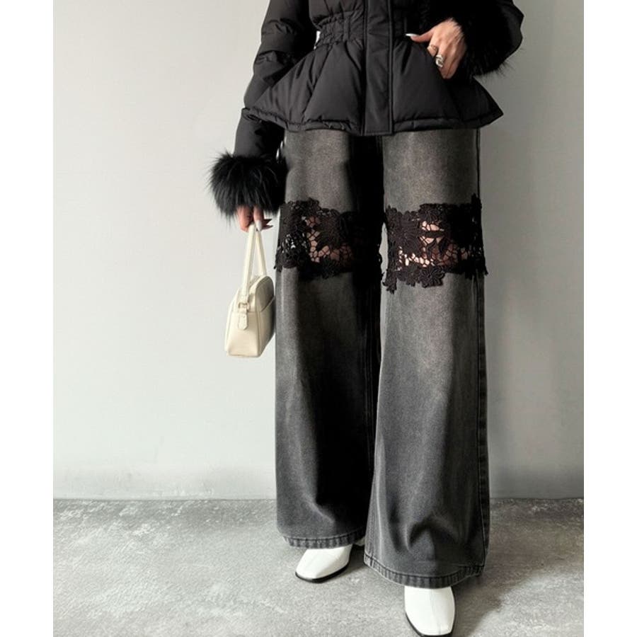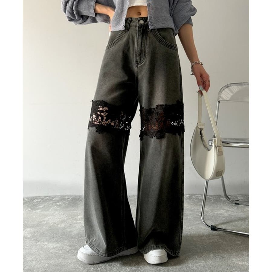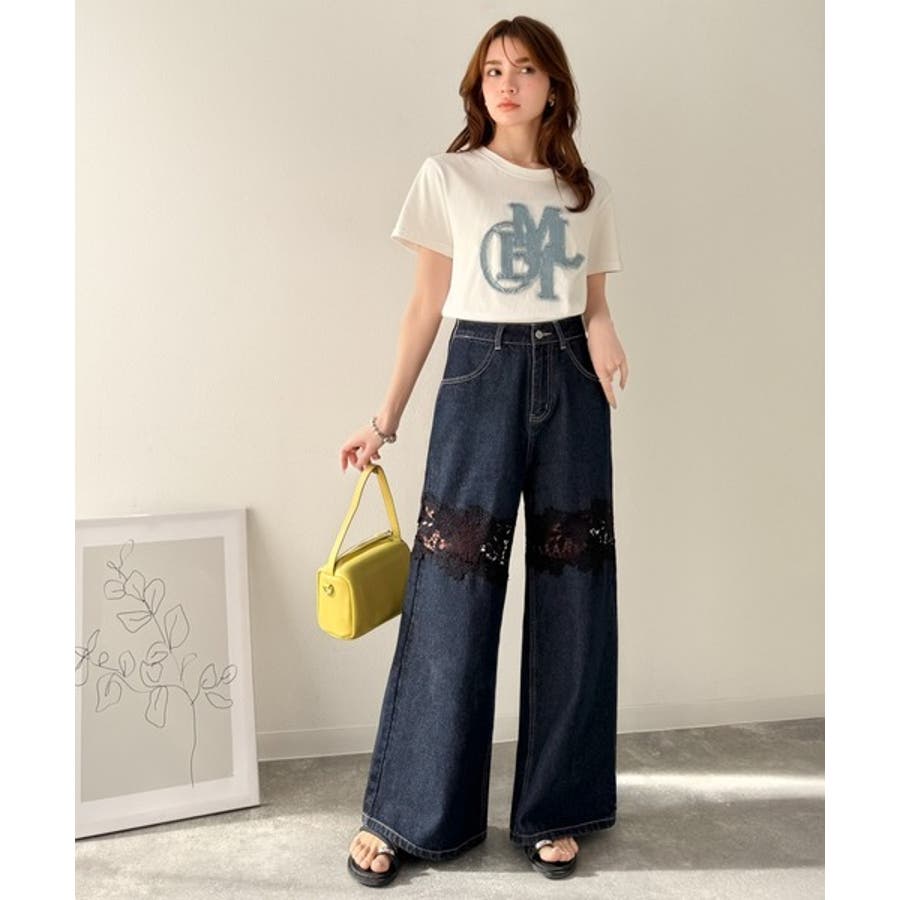 花柄レースワイドデニムパンツ♪