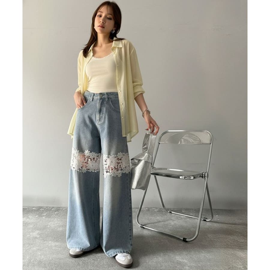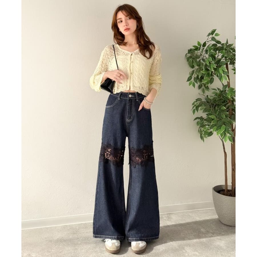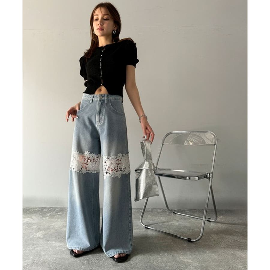 デニムのカジュアルさにレースの華やかさが加わり、周囲の視線を集めること間違いなし!
