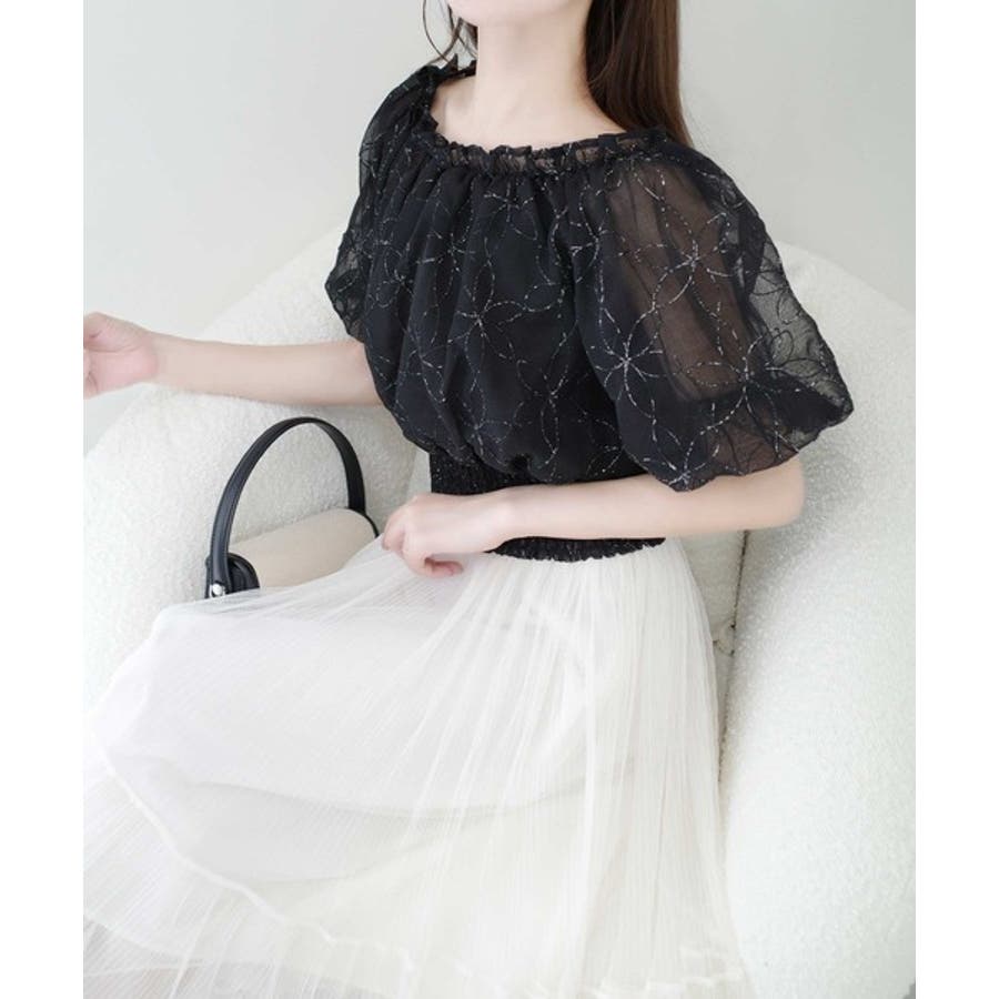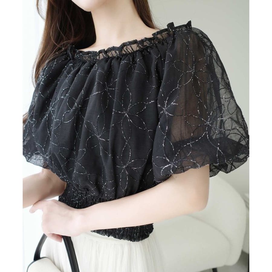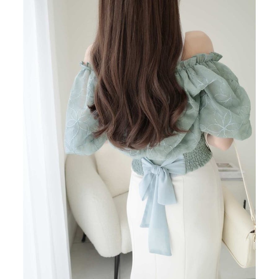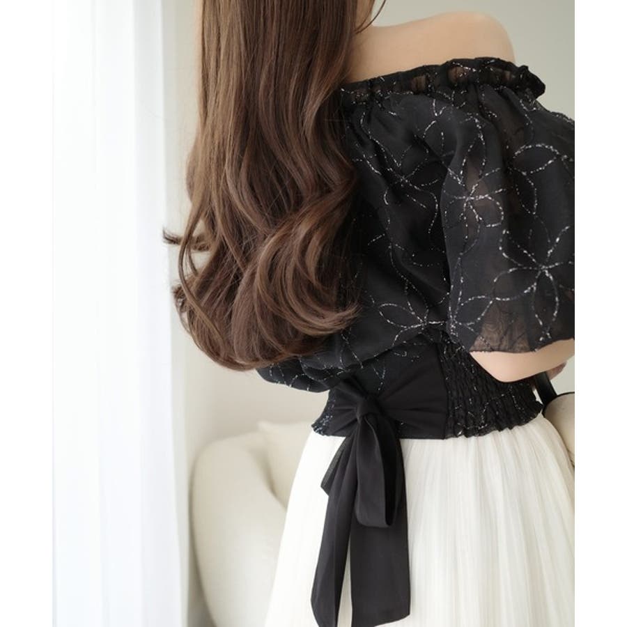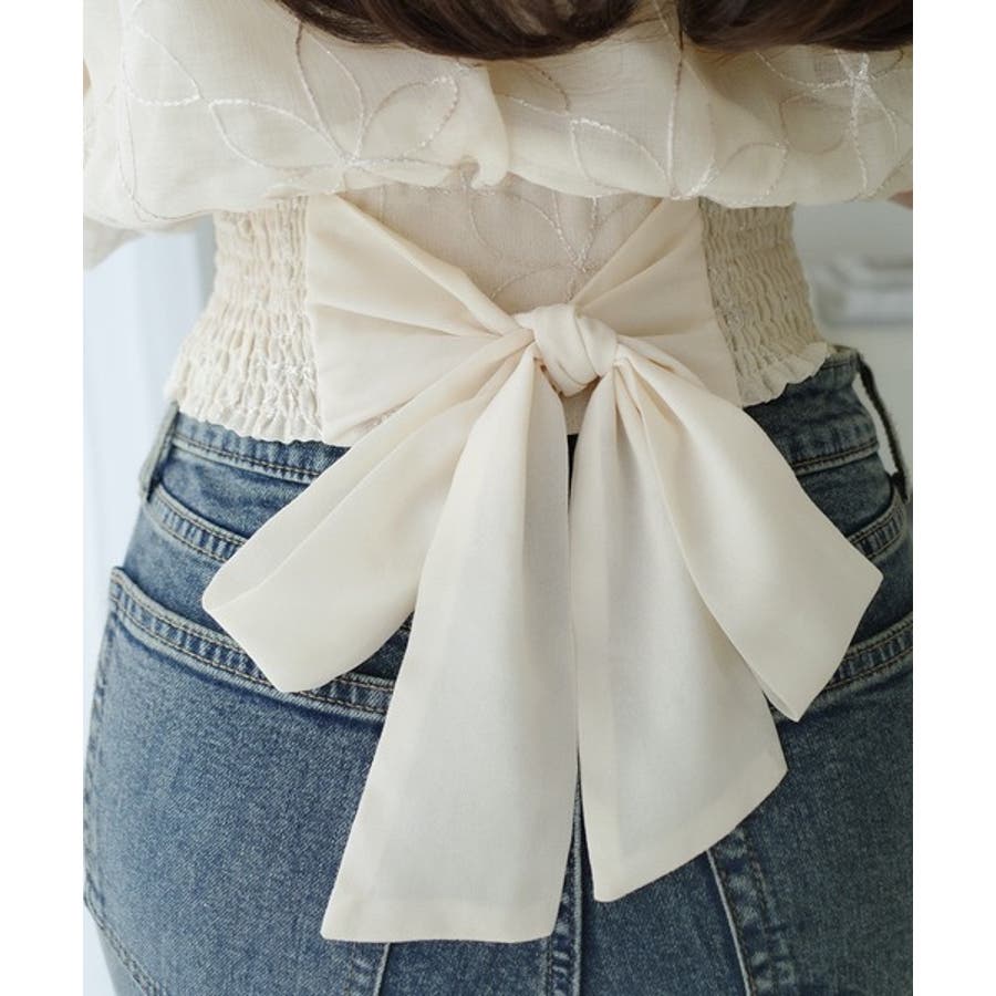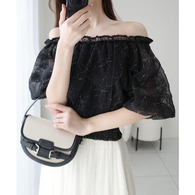 オフショル2WAY花柄コード刺繍バックリボンブラウス