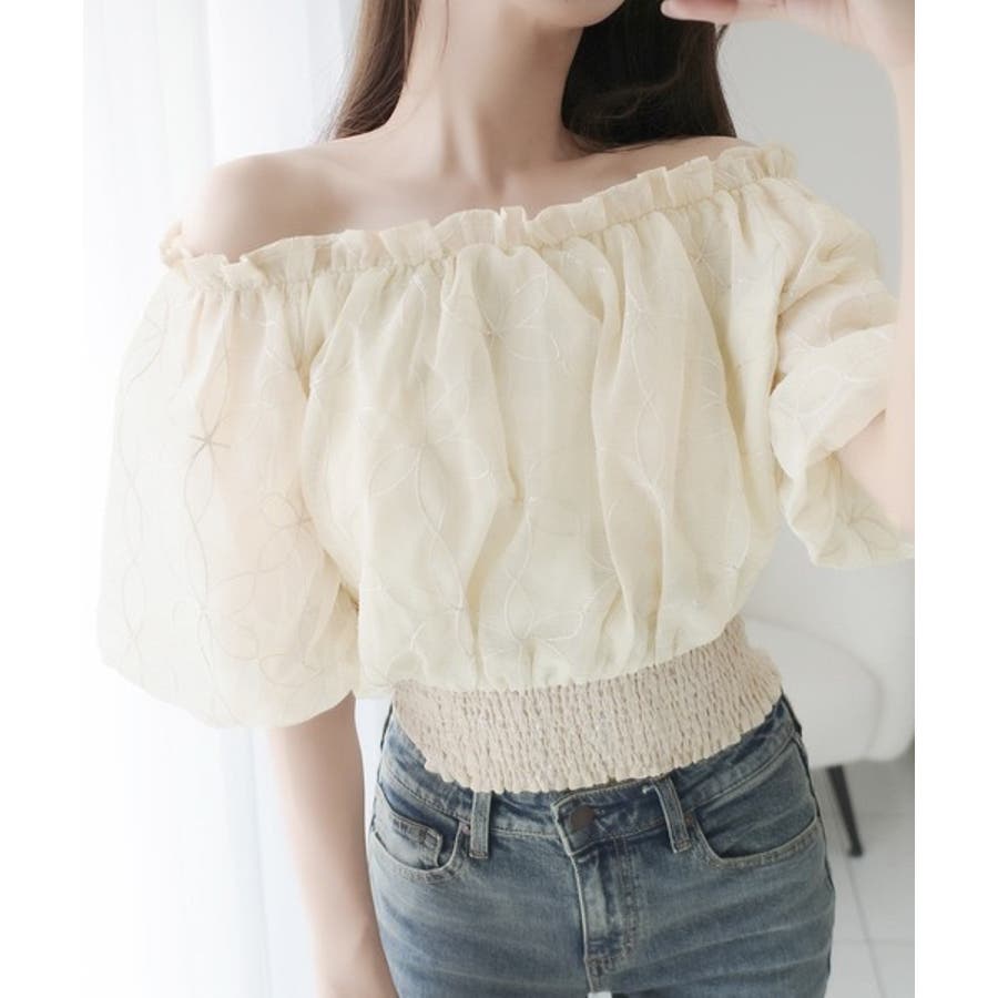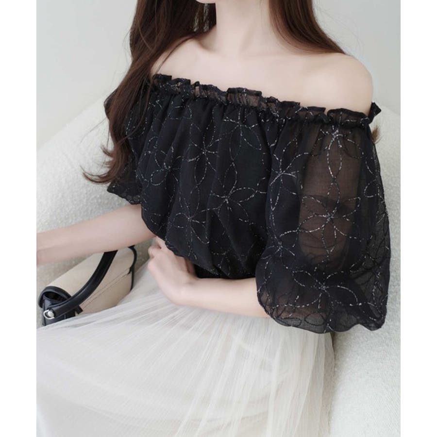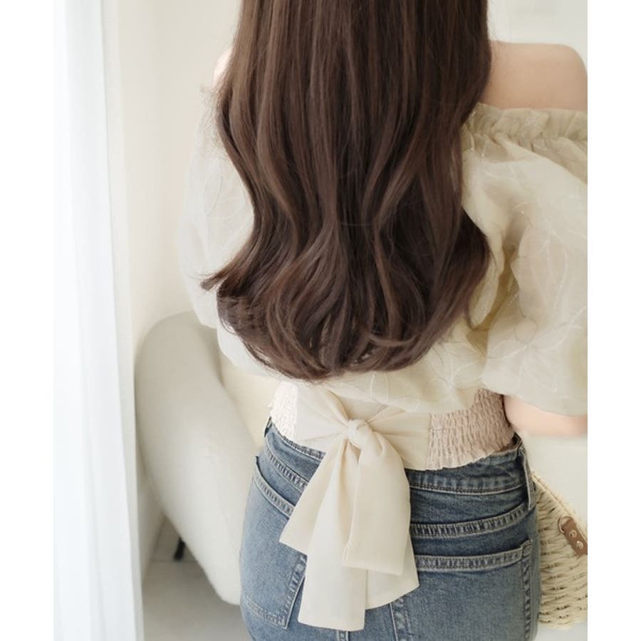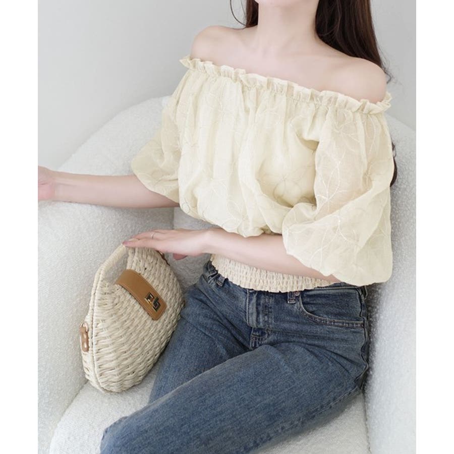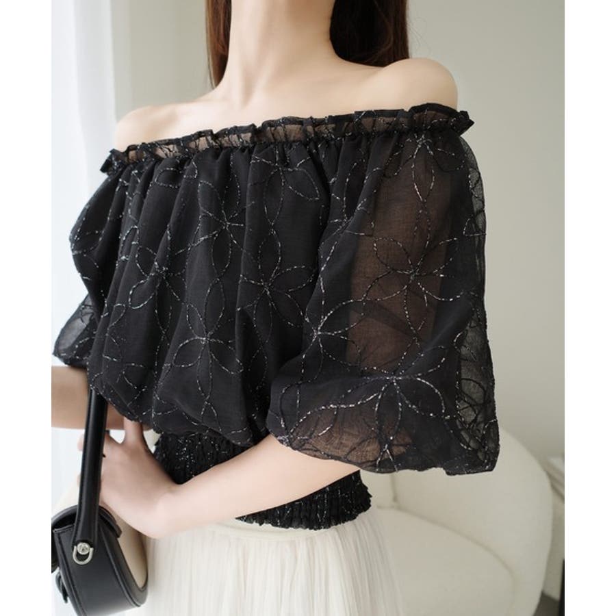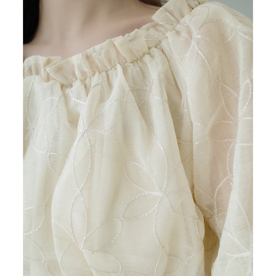 オフショル2WAY花柄コード刺繍バックリボンブラウス