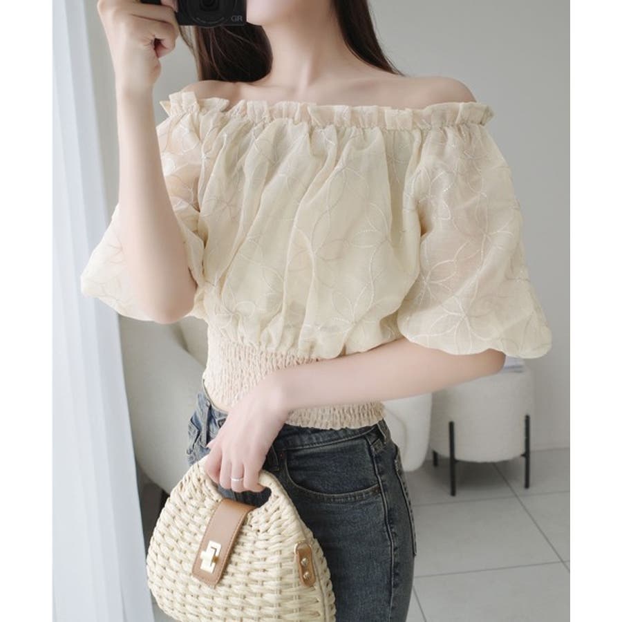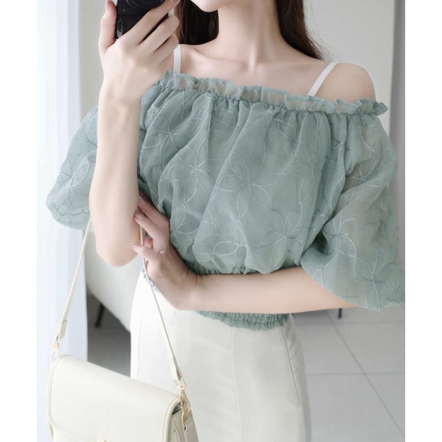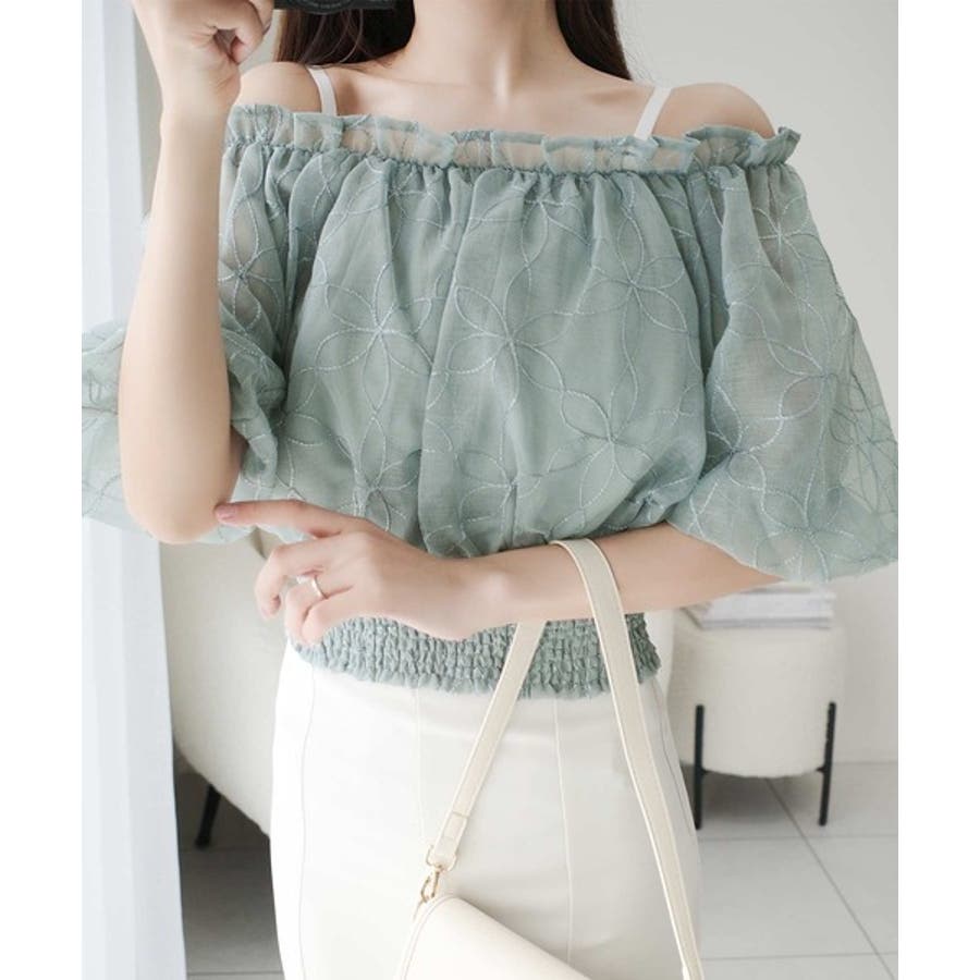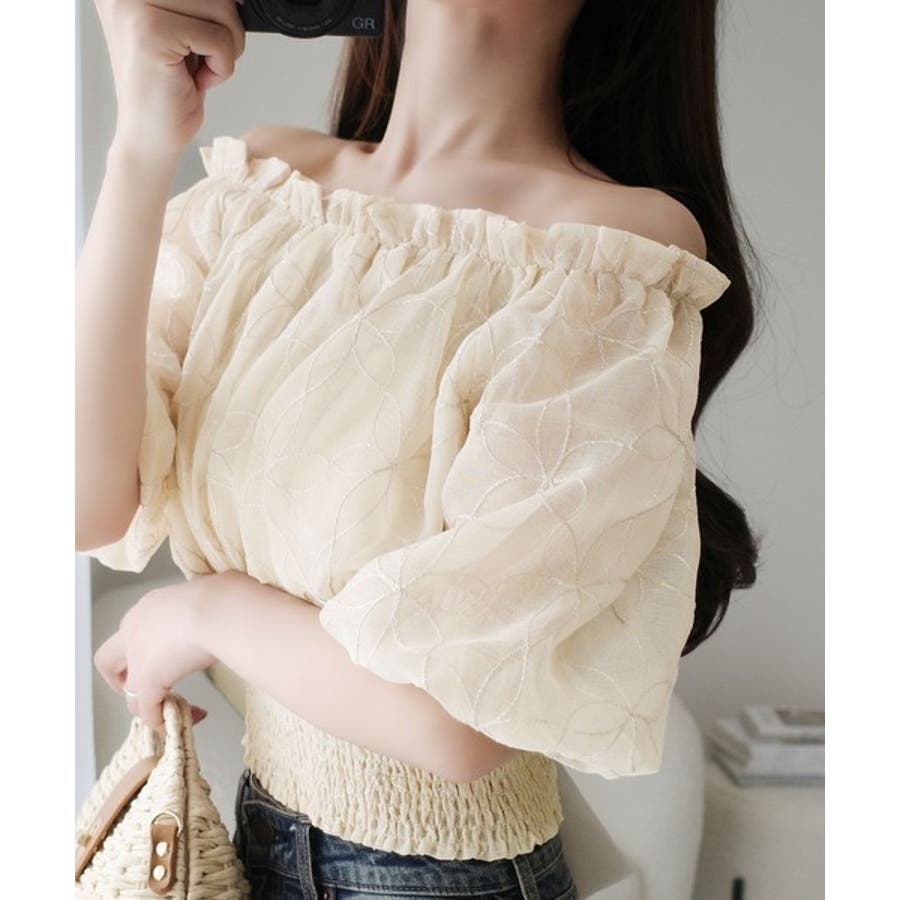 1枚で女性らしさを引き立てるこのブラウスは春夏コーデに1着は欲しいアイテム!