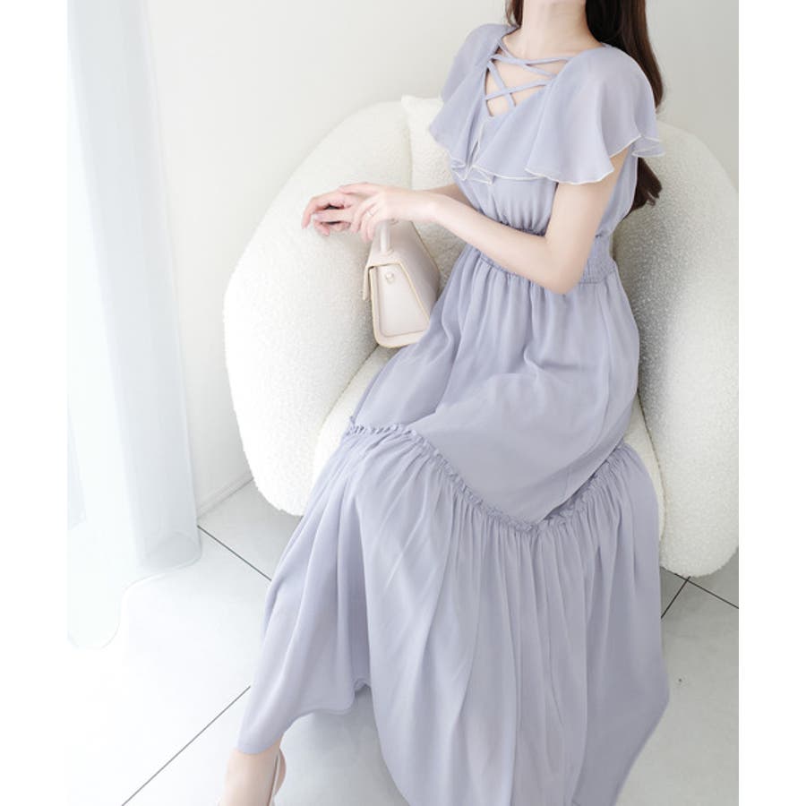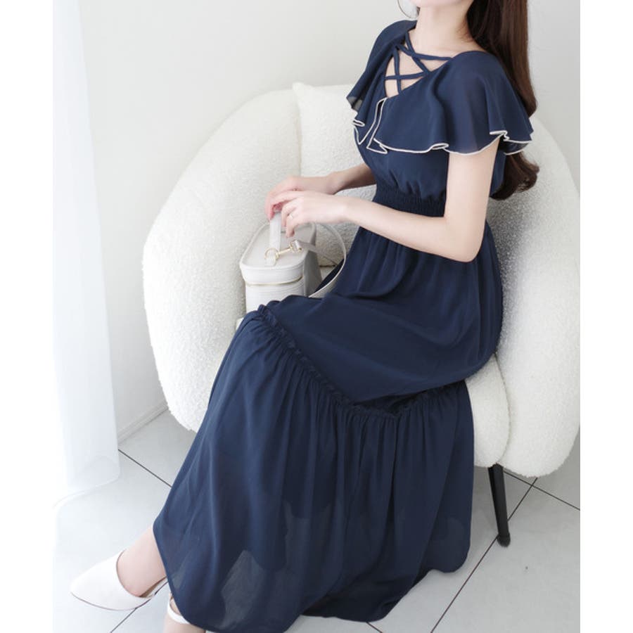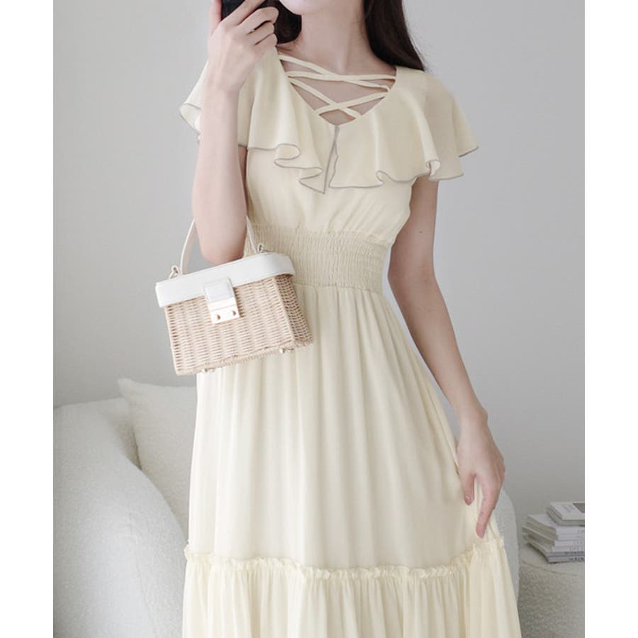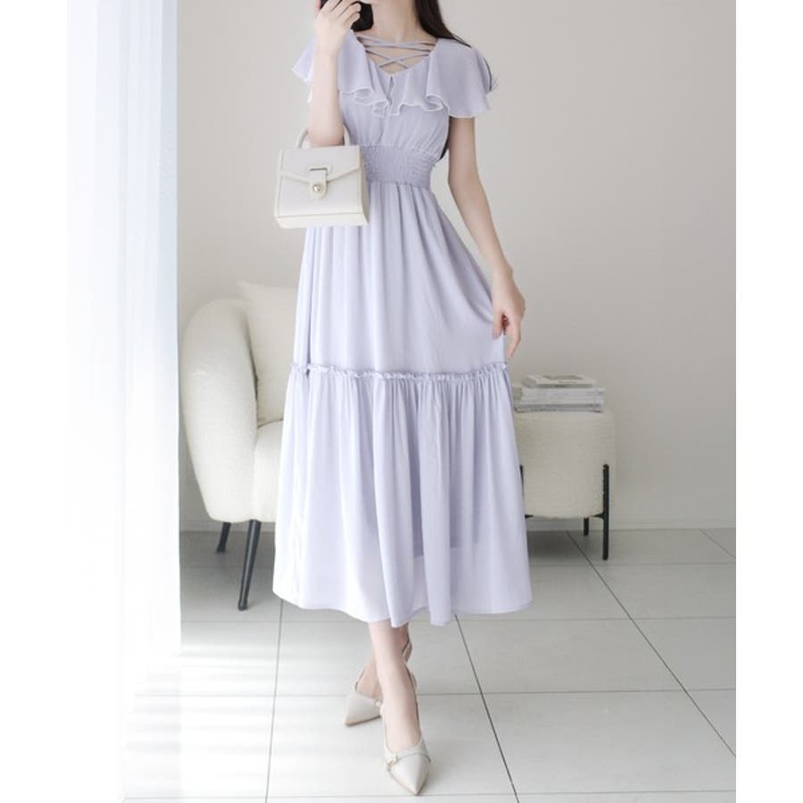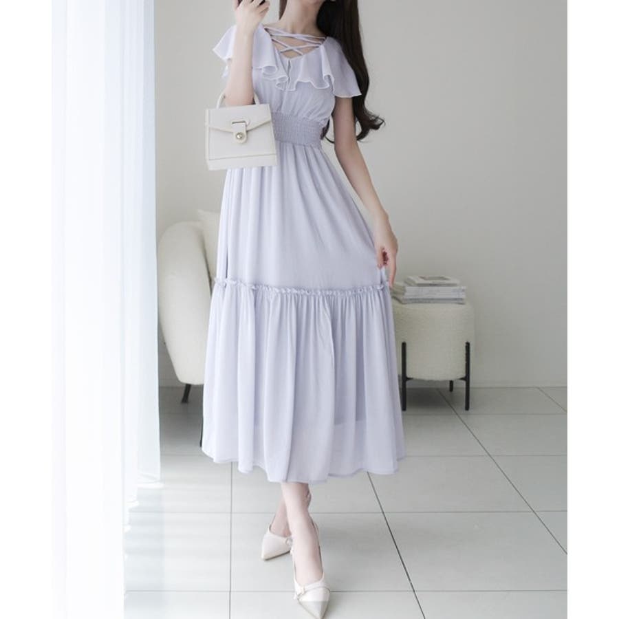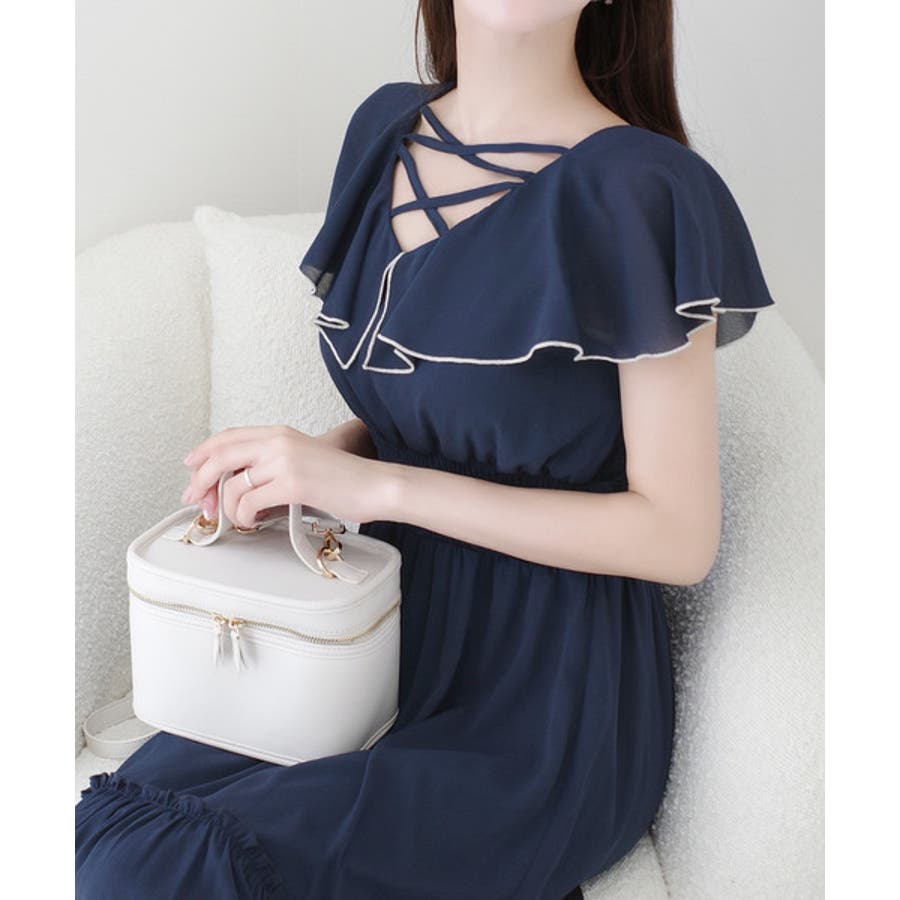 【mily bilet】今季上品に大活躍♪クロスデザイン楊柳使いフリル襟ワンピー…