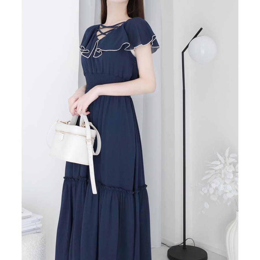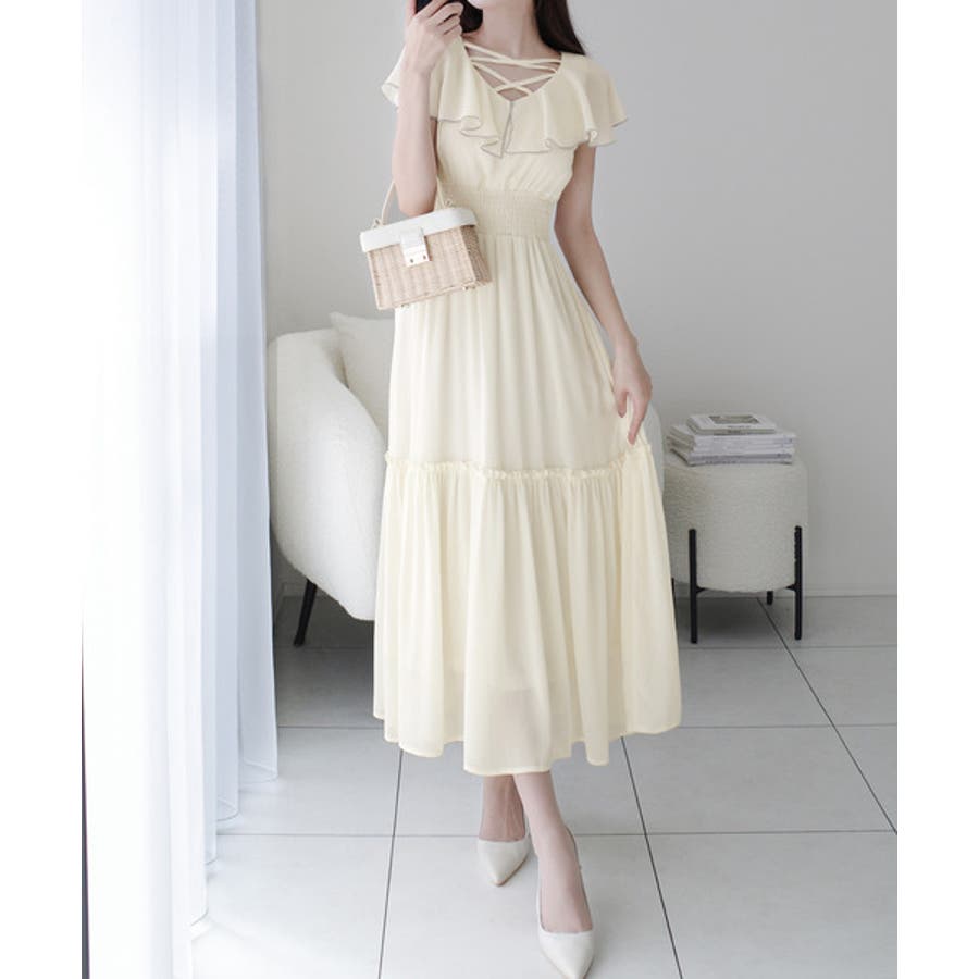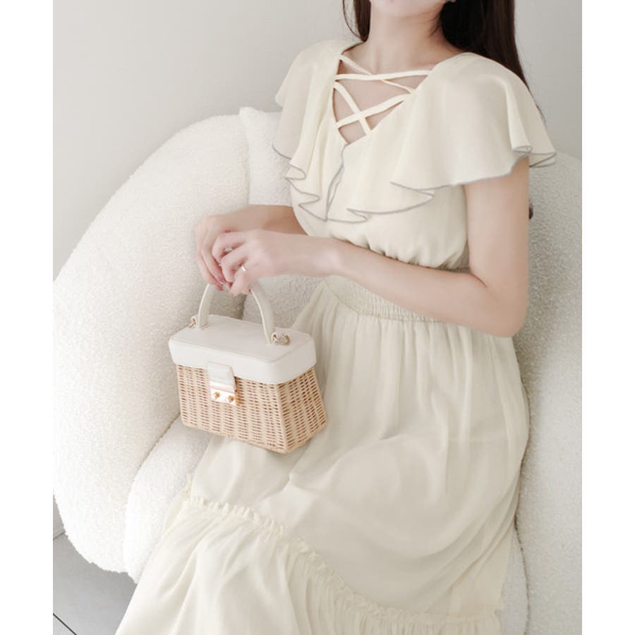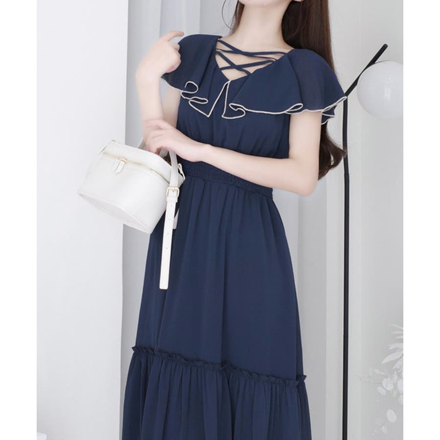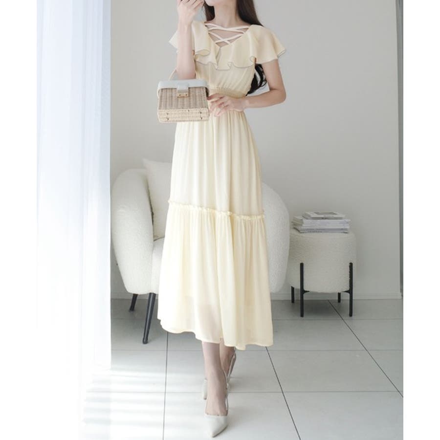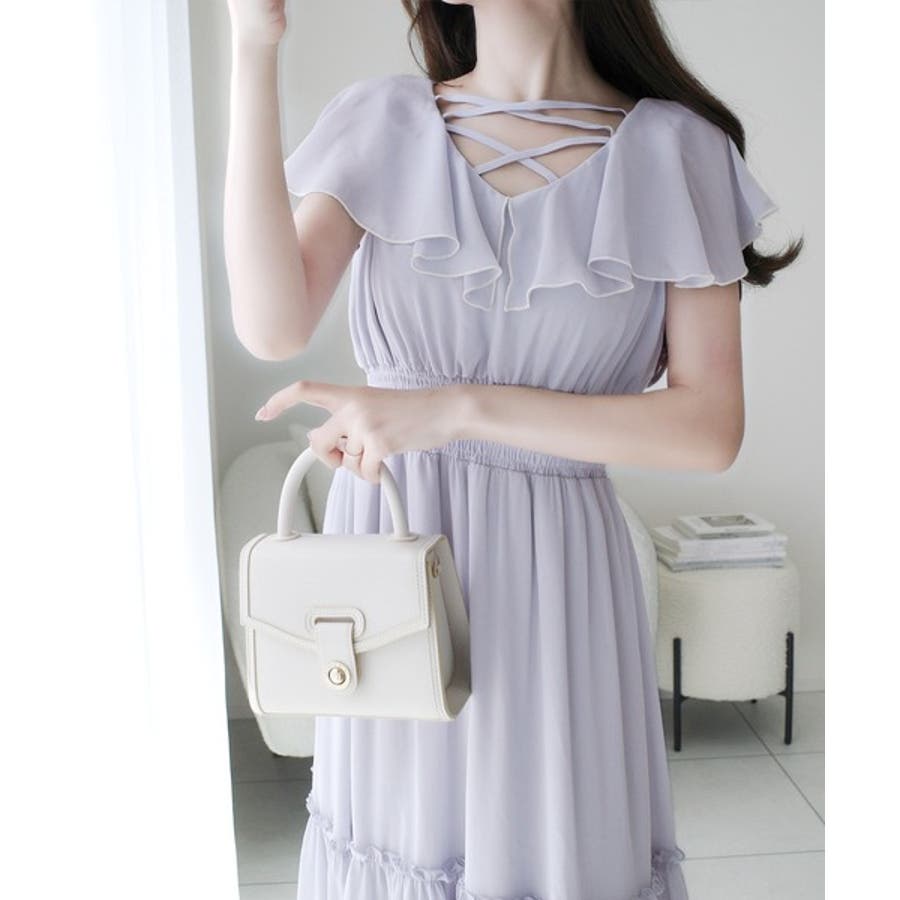 【mily bilet】今季上品に大活躍♪クロスデザイン楊柳使いフリル襟ワンピー…