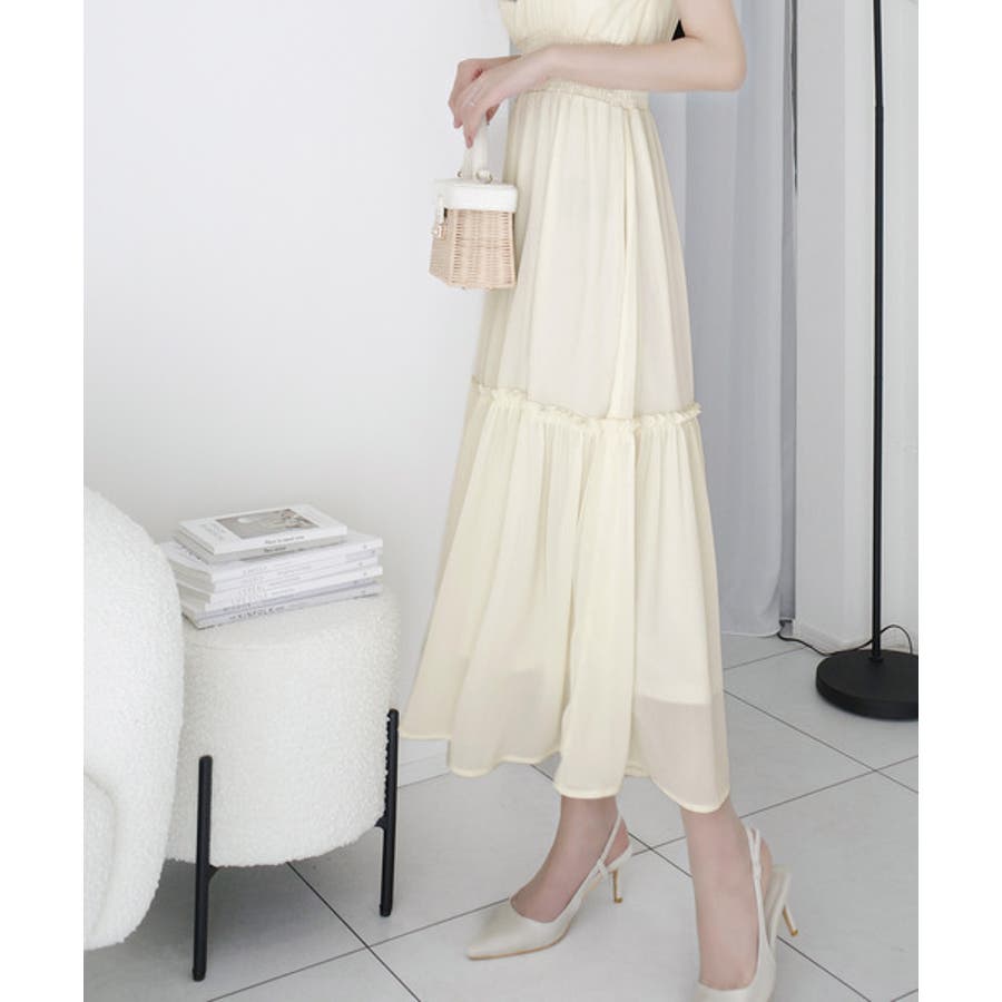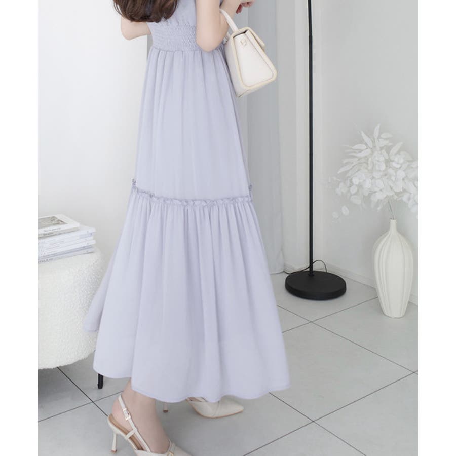 スカート部分はティアードデザインになっていて、可愛らしさもプラス。