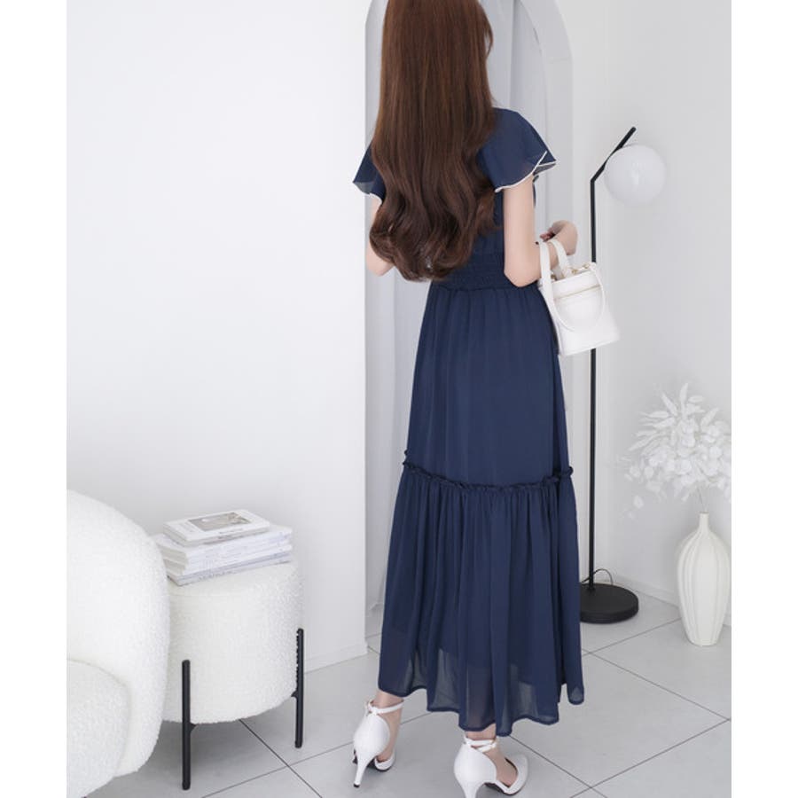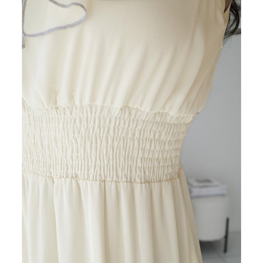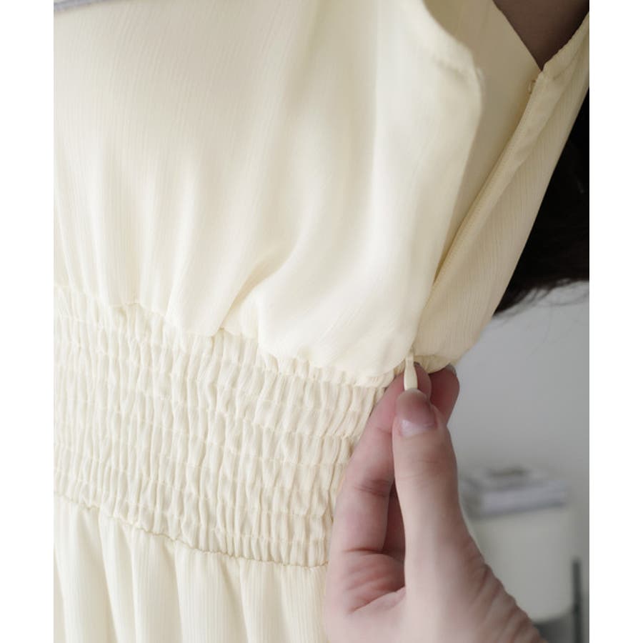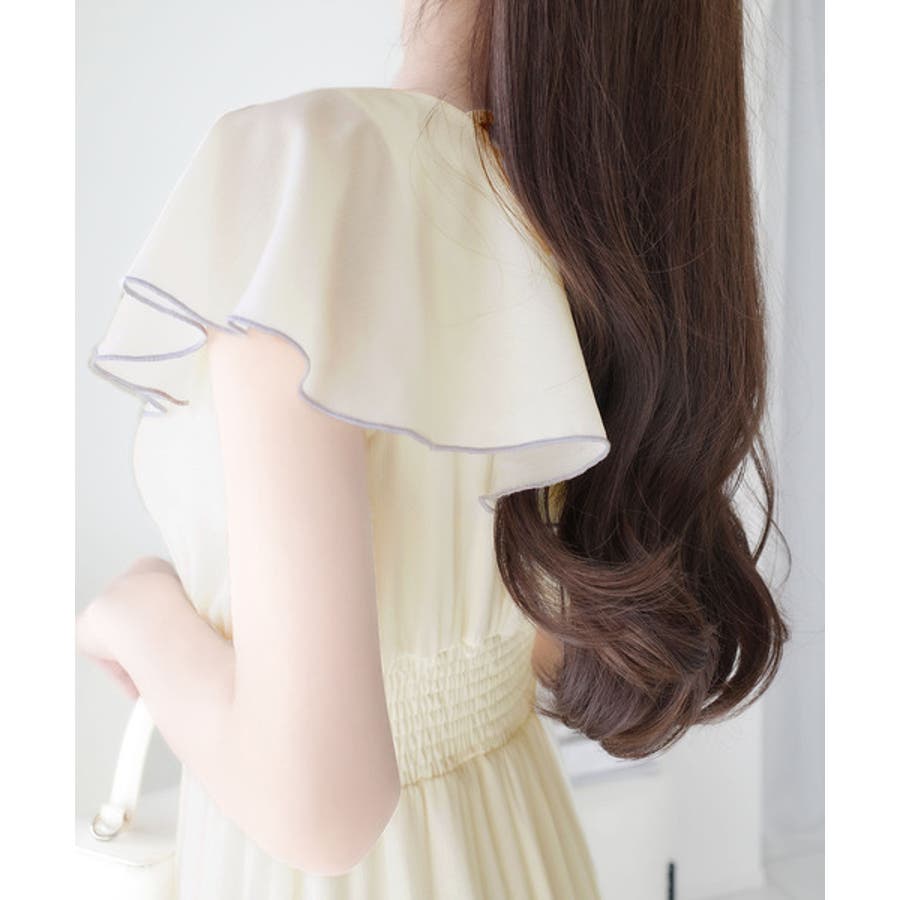 二の腕をカバーできる前後フリルは、女性らしさを引き立て、