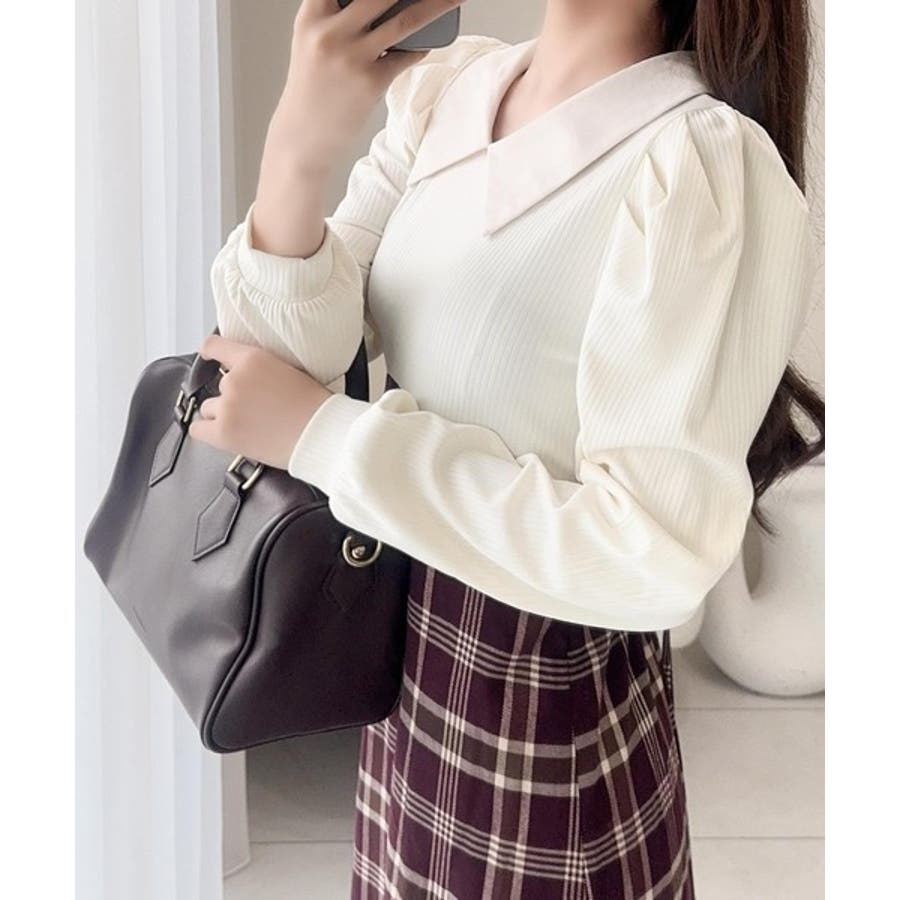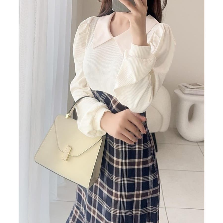 襟付きできちんとした印象のトップスと