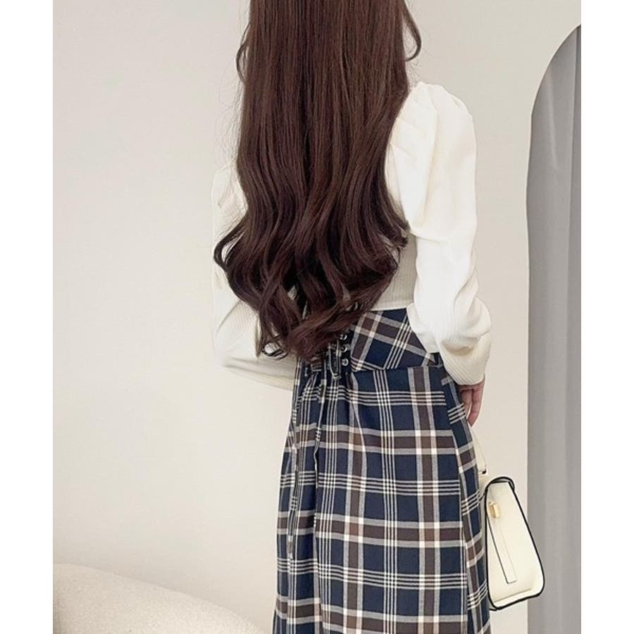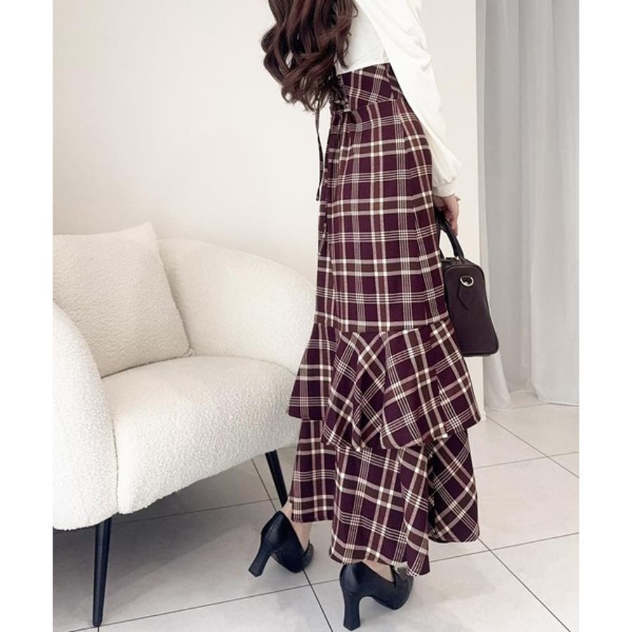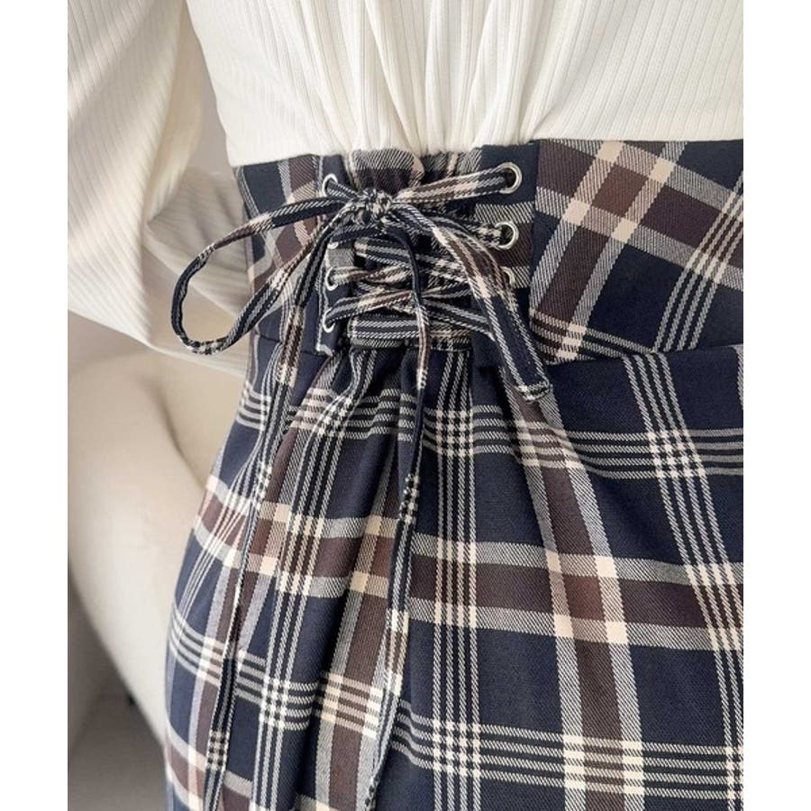 ハイウエストで切り替えたチェック柄のスカートは、