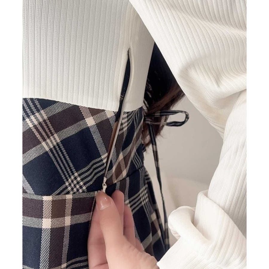 レトロなチェック柄のフレアスカートとのドッキングワンピース。