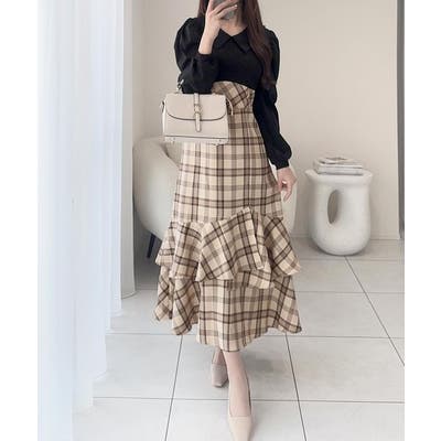フリルを重ねたデザインのスカートが、シルエットに動きを加えてくれます。