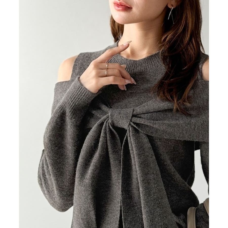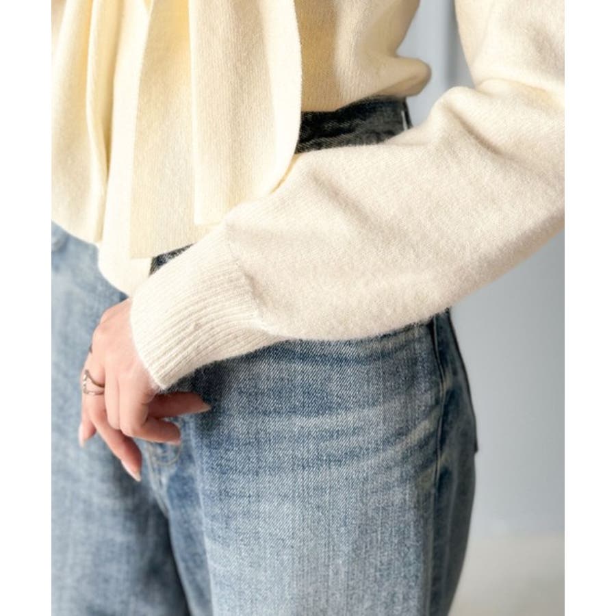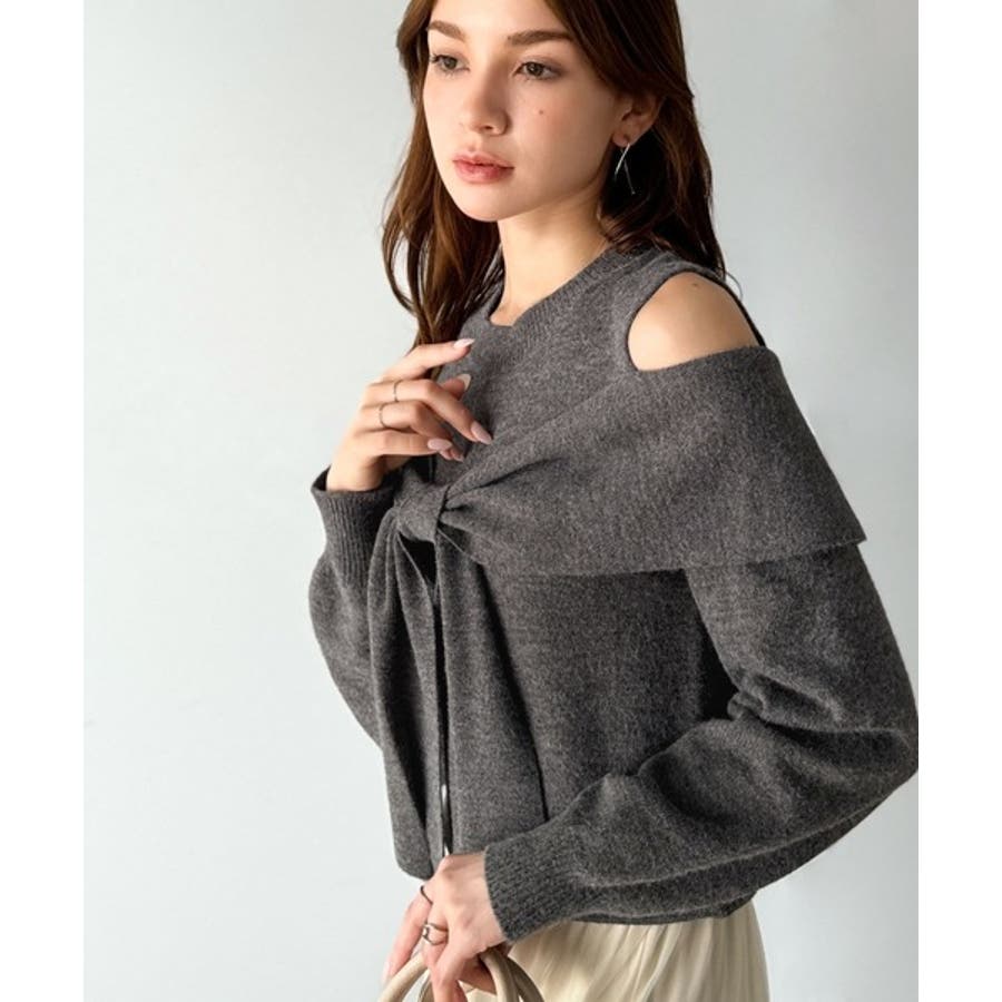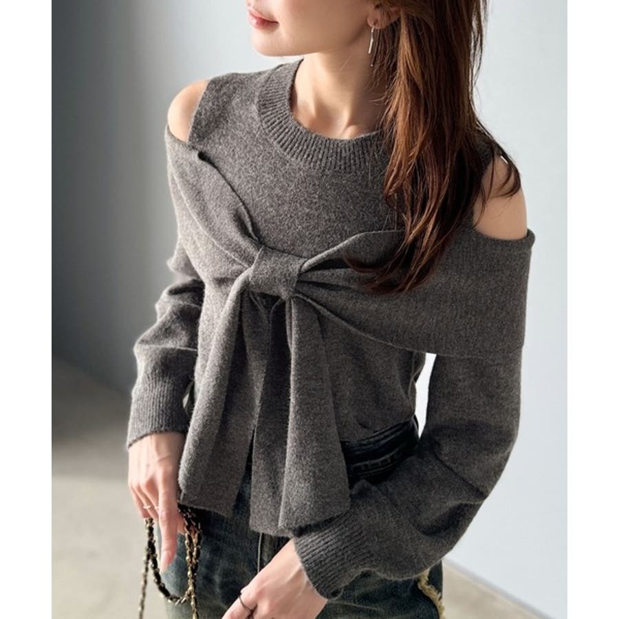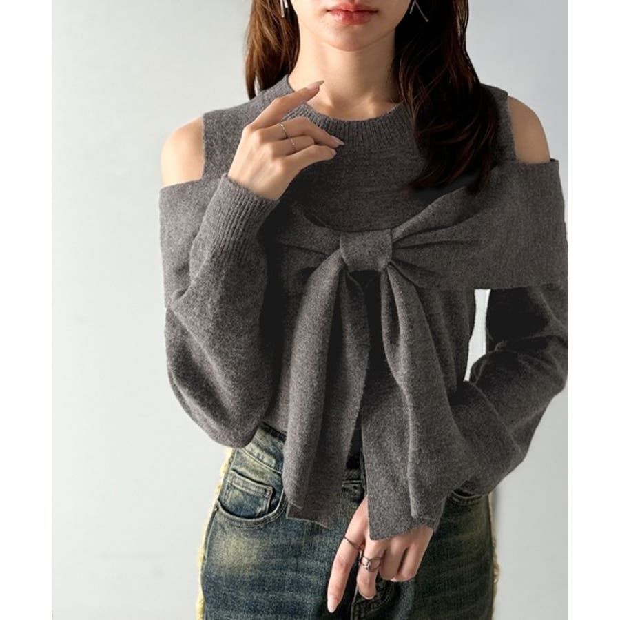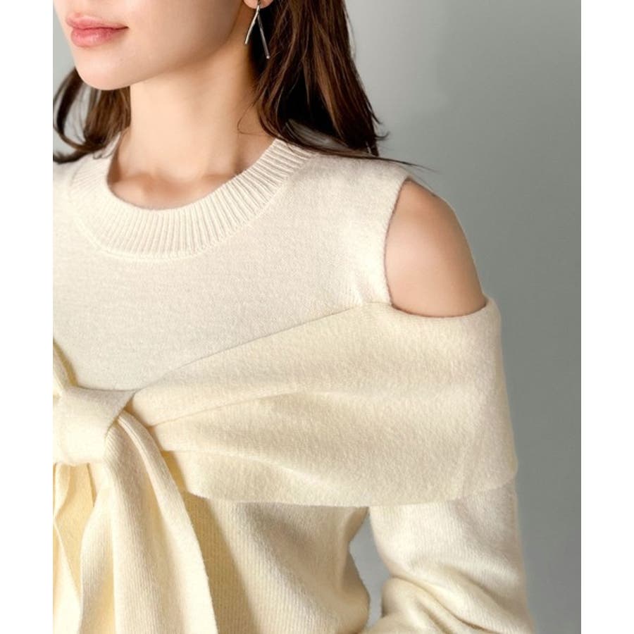 立体的なリボンが胸元を飾るガーリーなニット。