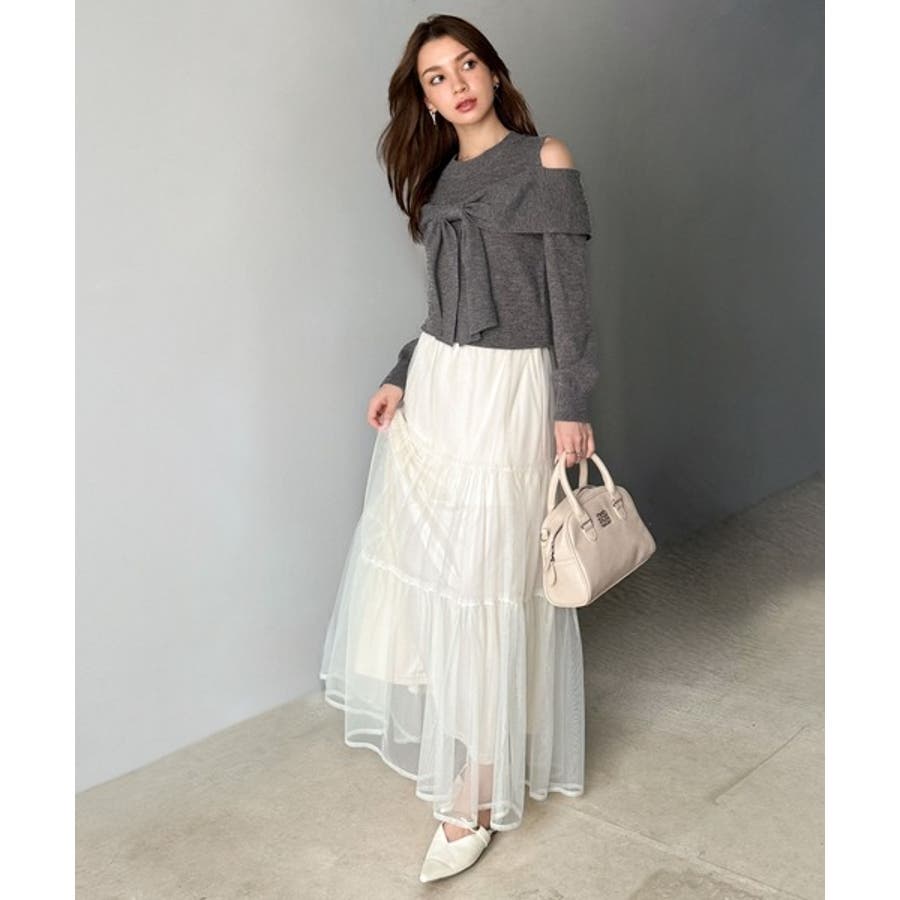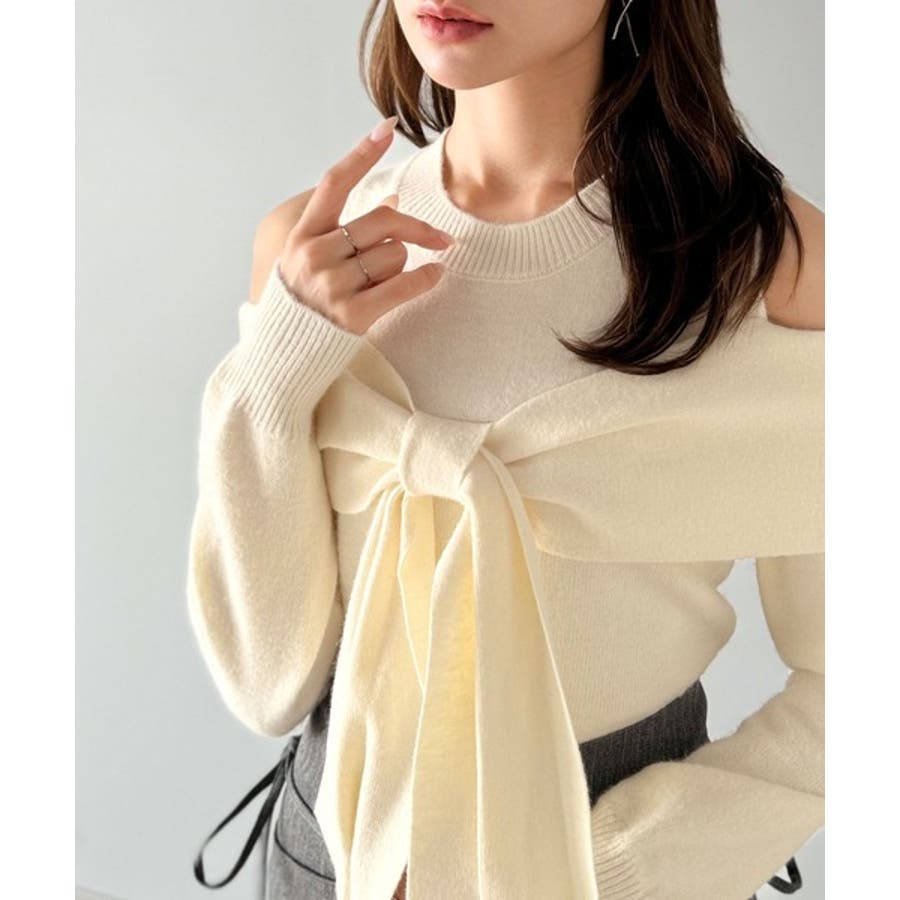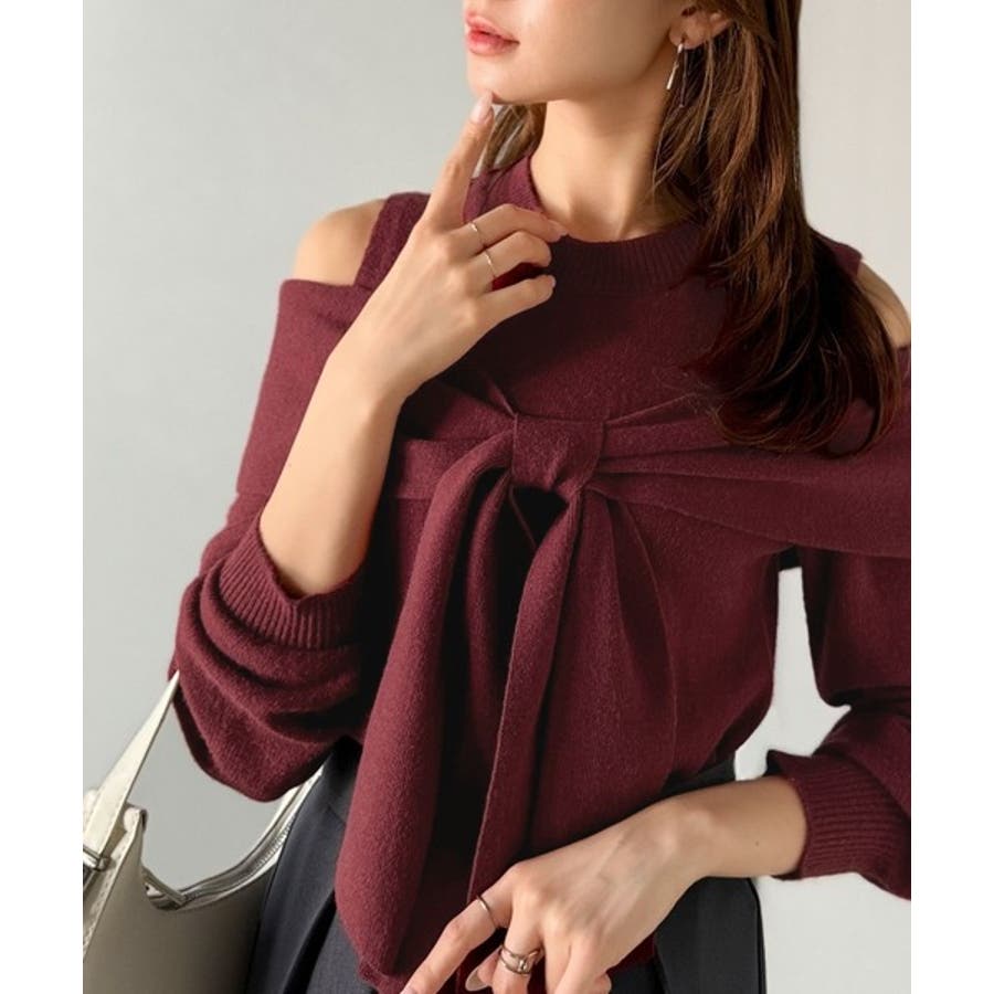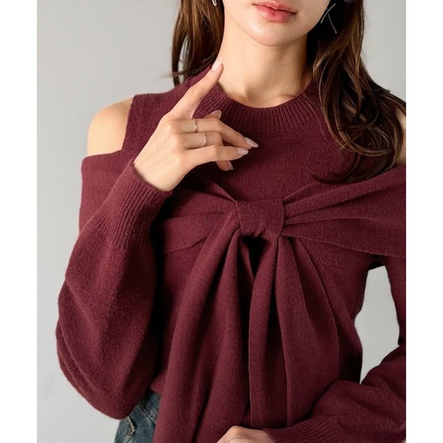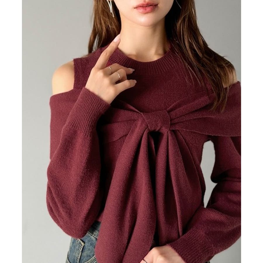 立体的なリボンが胸元を飾るガーリーなニット。