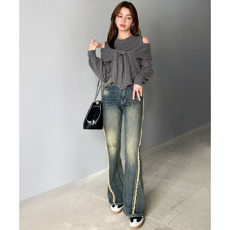 デニムやフレアパンツなどに合わせた大人カジュアルスタイルから