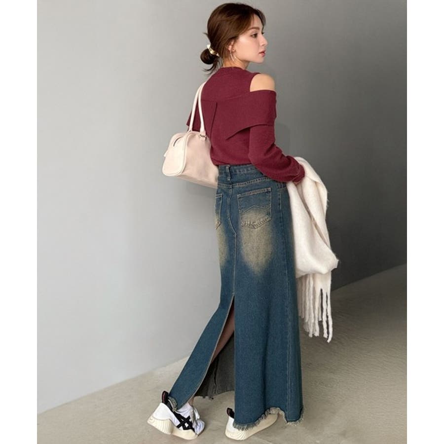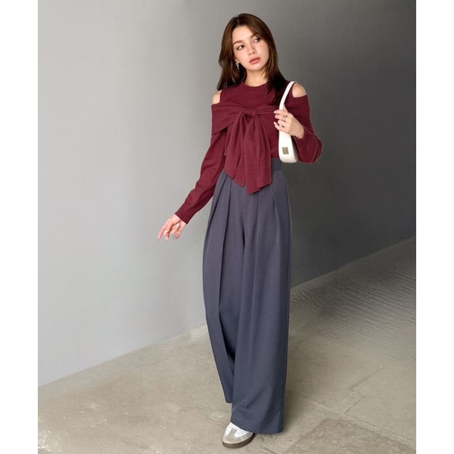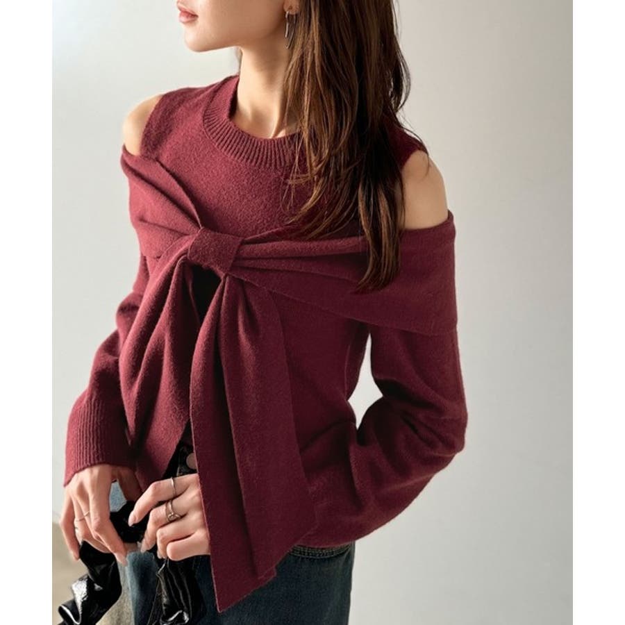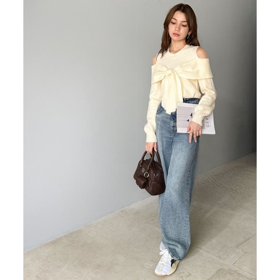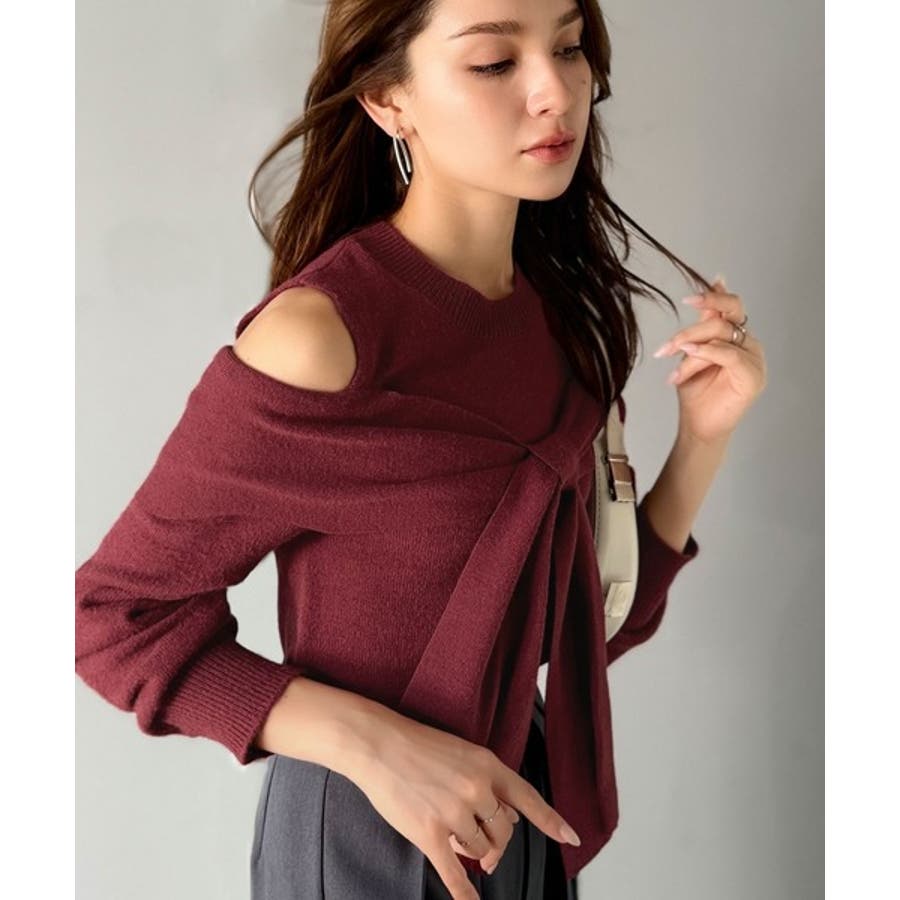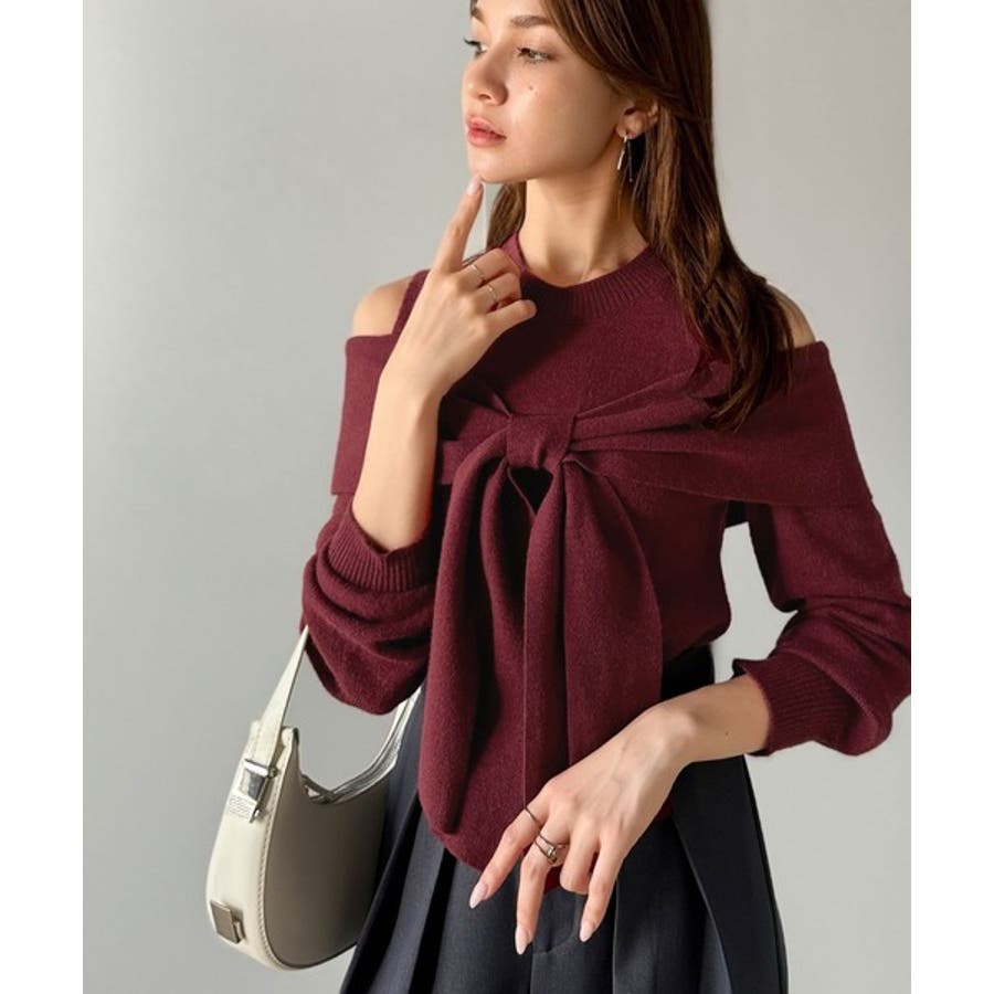 1枚で女性らしさを引き立てるオフショルダーニット♪