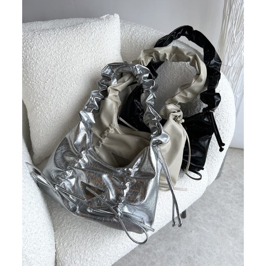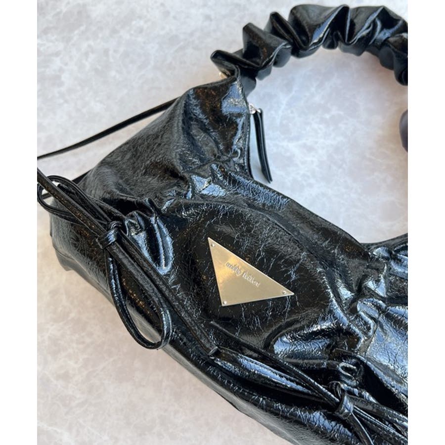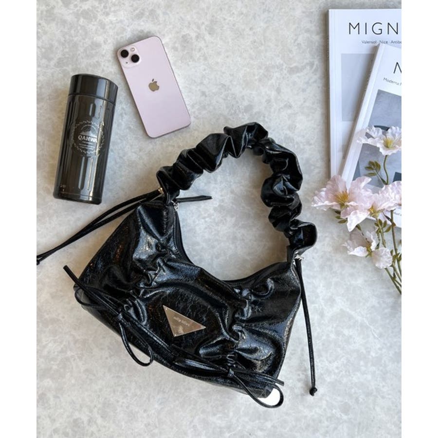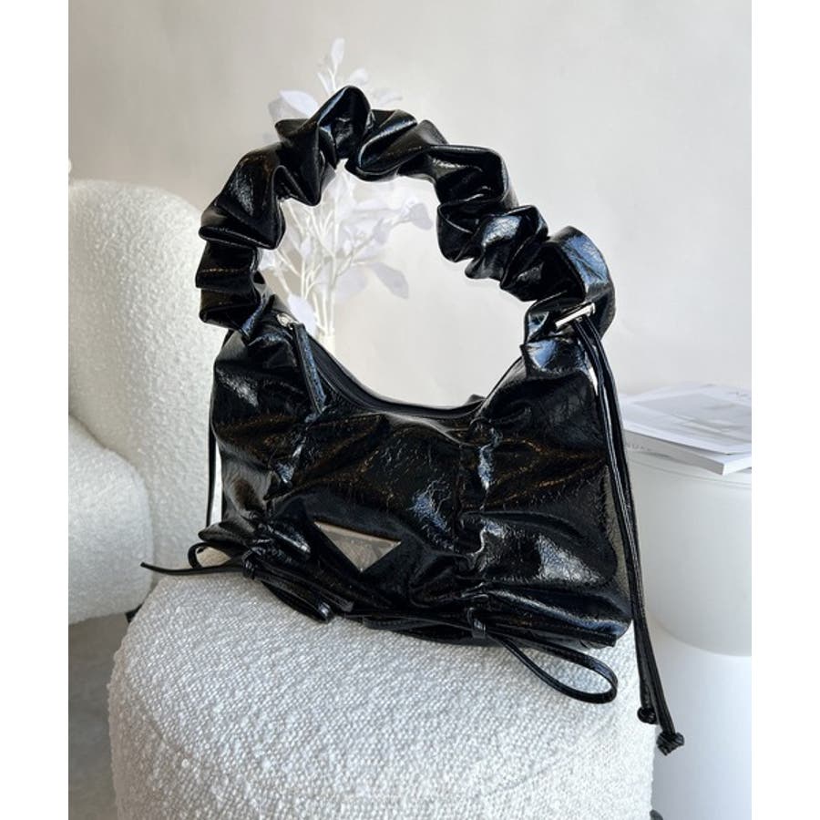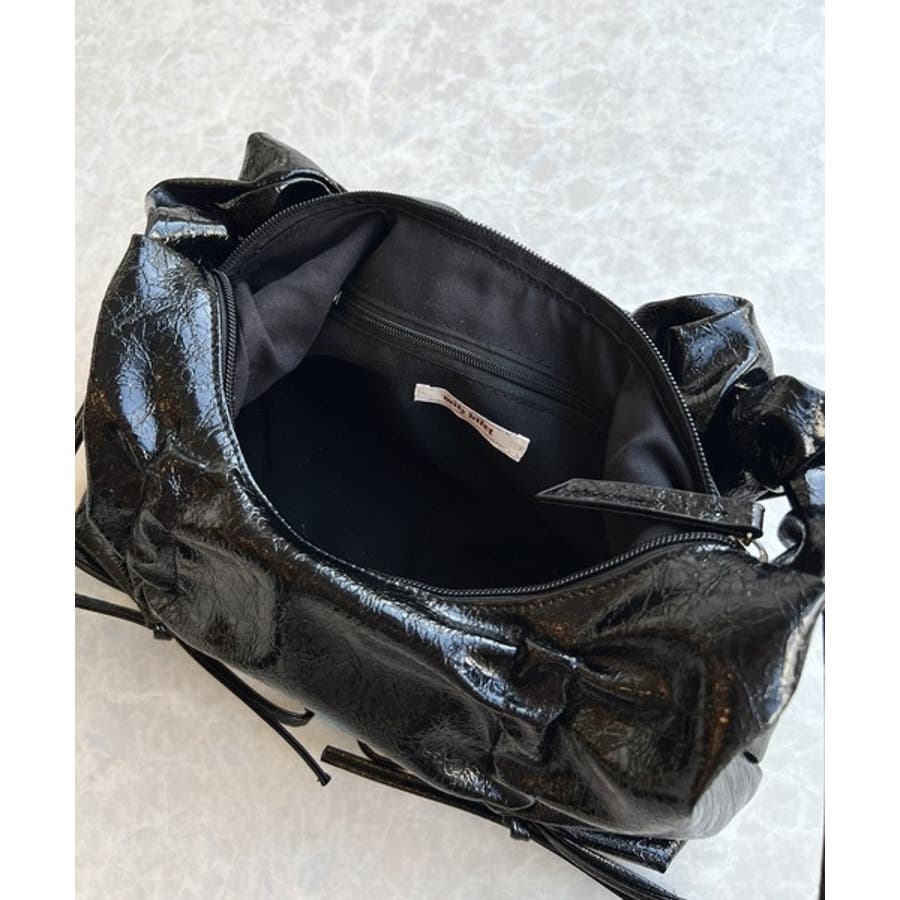 見た目以上の収納力。クラッキングエナメル2WAYドロストハンドルリボンデザインハ…