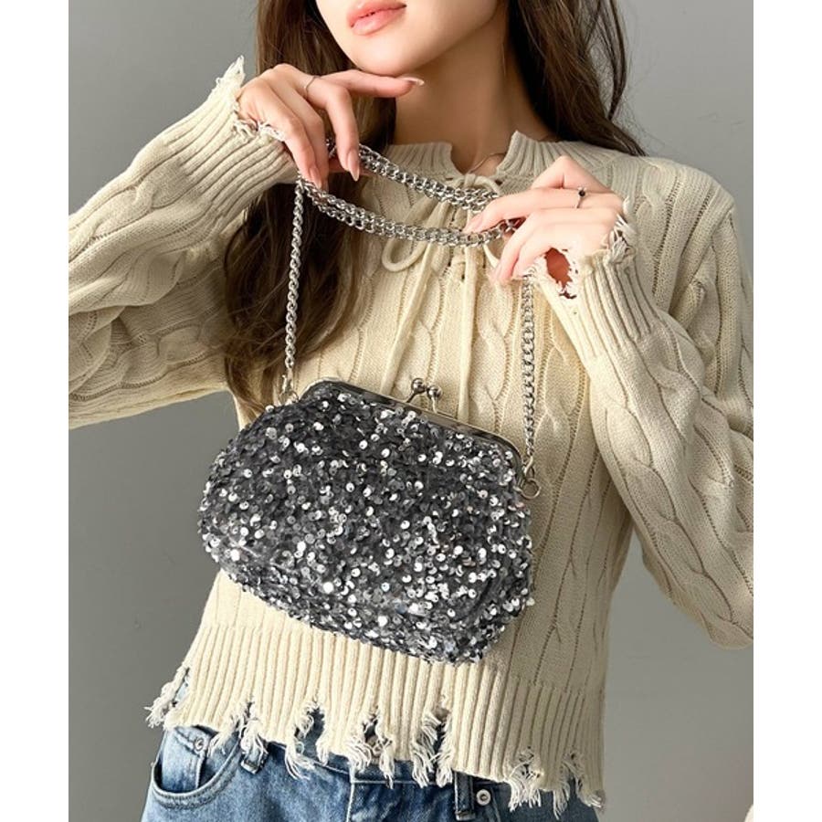 自分だけのスタイルを楽しむことができるスパンコールがま口ショルダーバッグで、