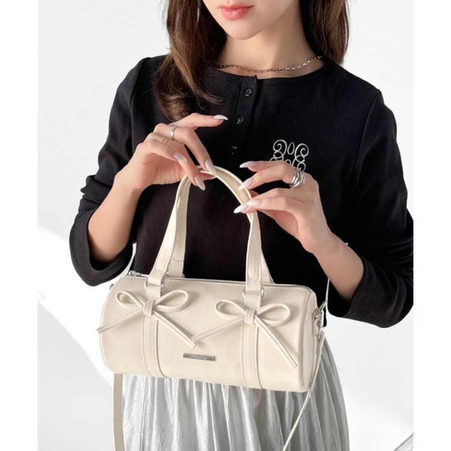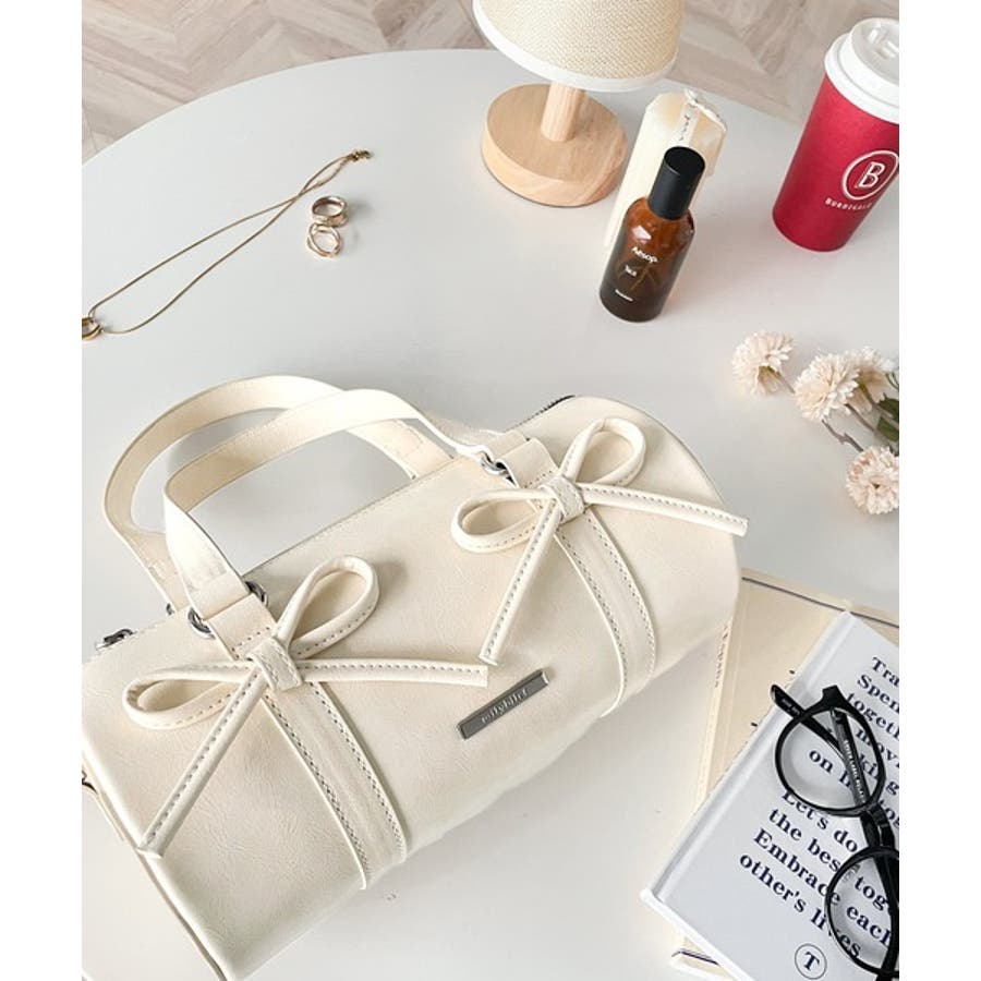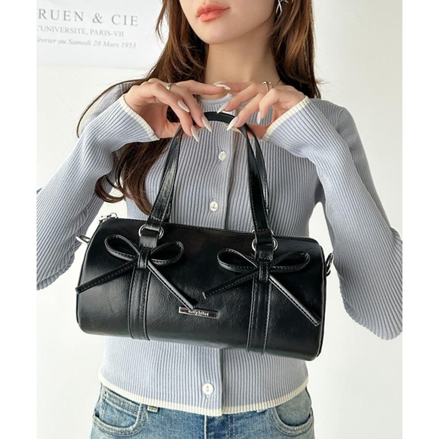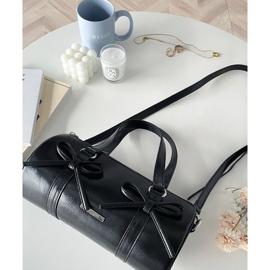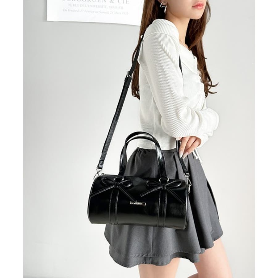 目を惹く可愛さ♪リボンデザイン筒型フェイクレザー2WAYショルダーバッグ