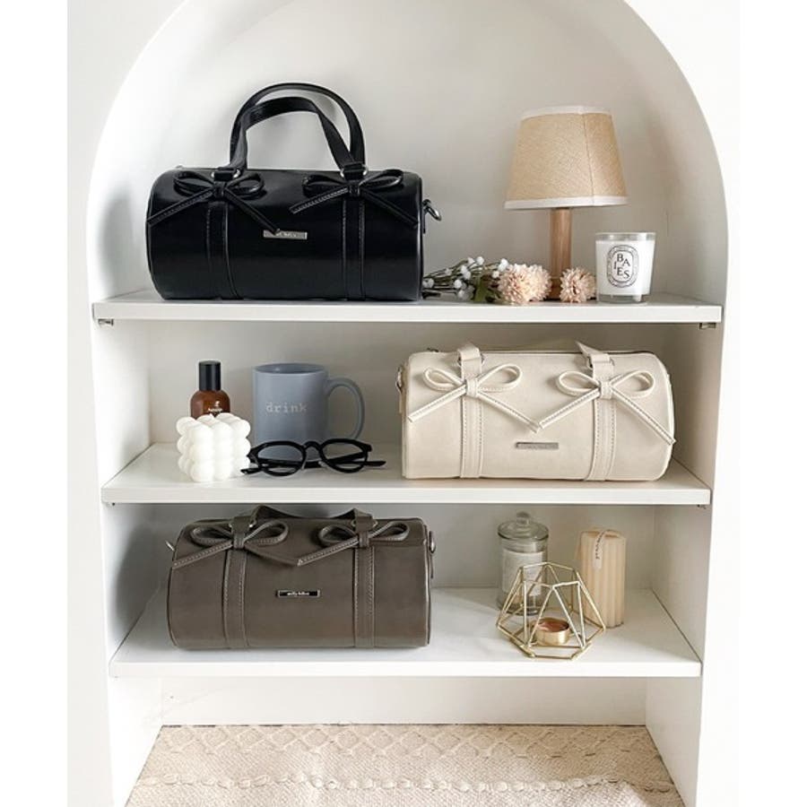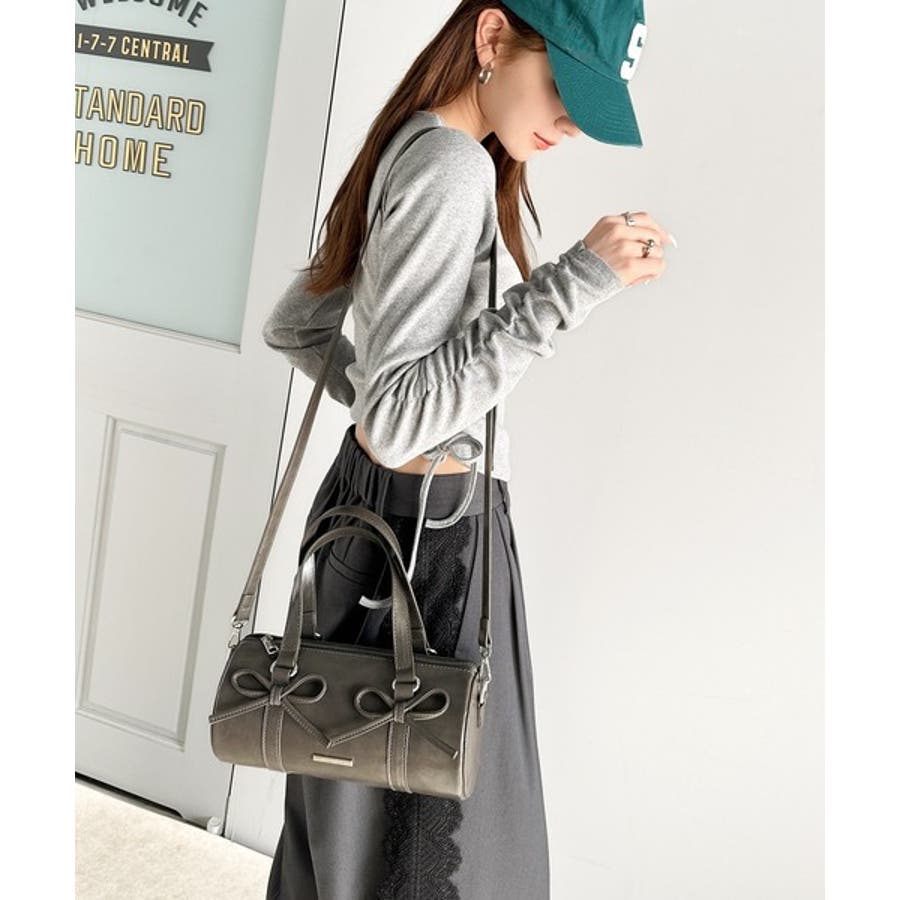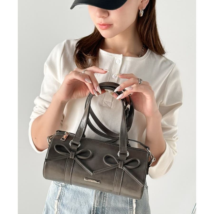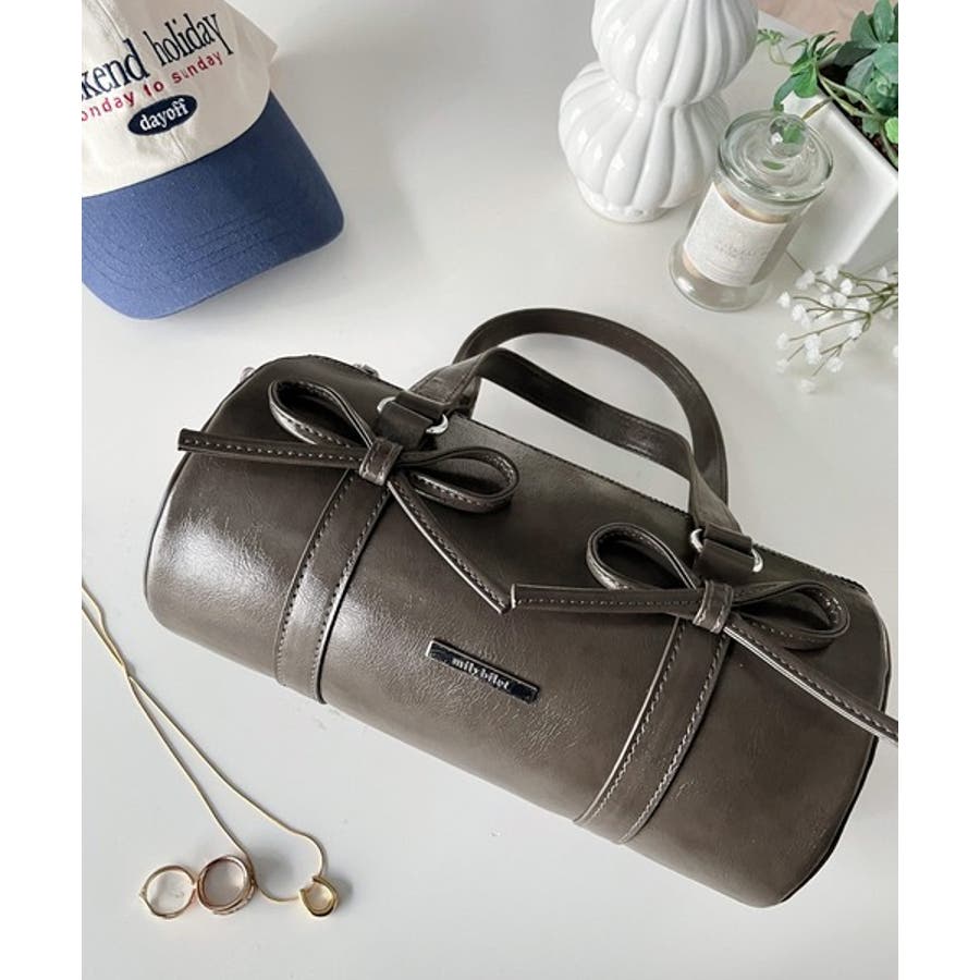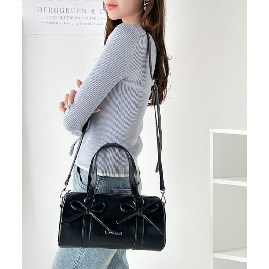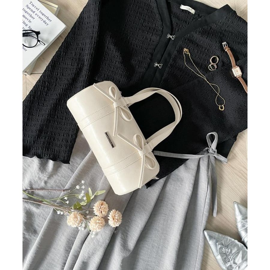 目を惹く可愛さ♪リボンデザイン筒型フェイクレザー2WAYショルダーバッグ