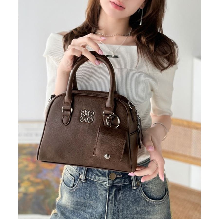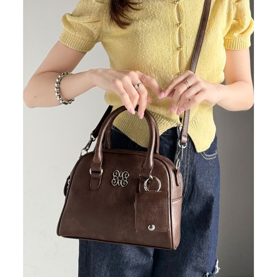 いつでも、どんなスタイルにもちょうどいい♪ロゴプレート使いラウンドミニボストンバ…