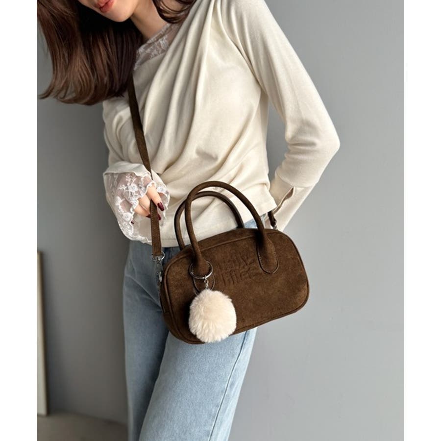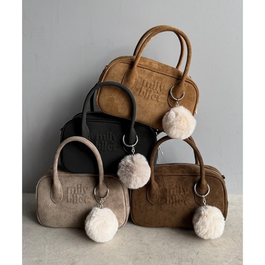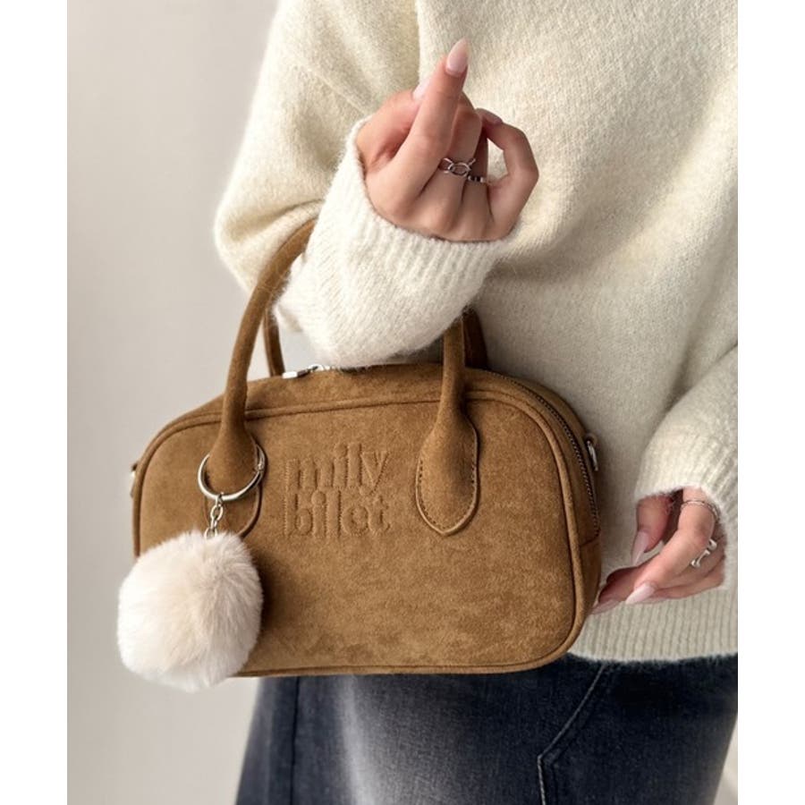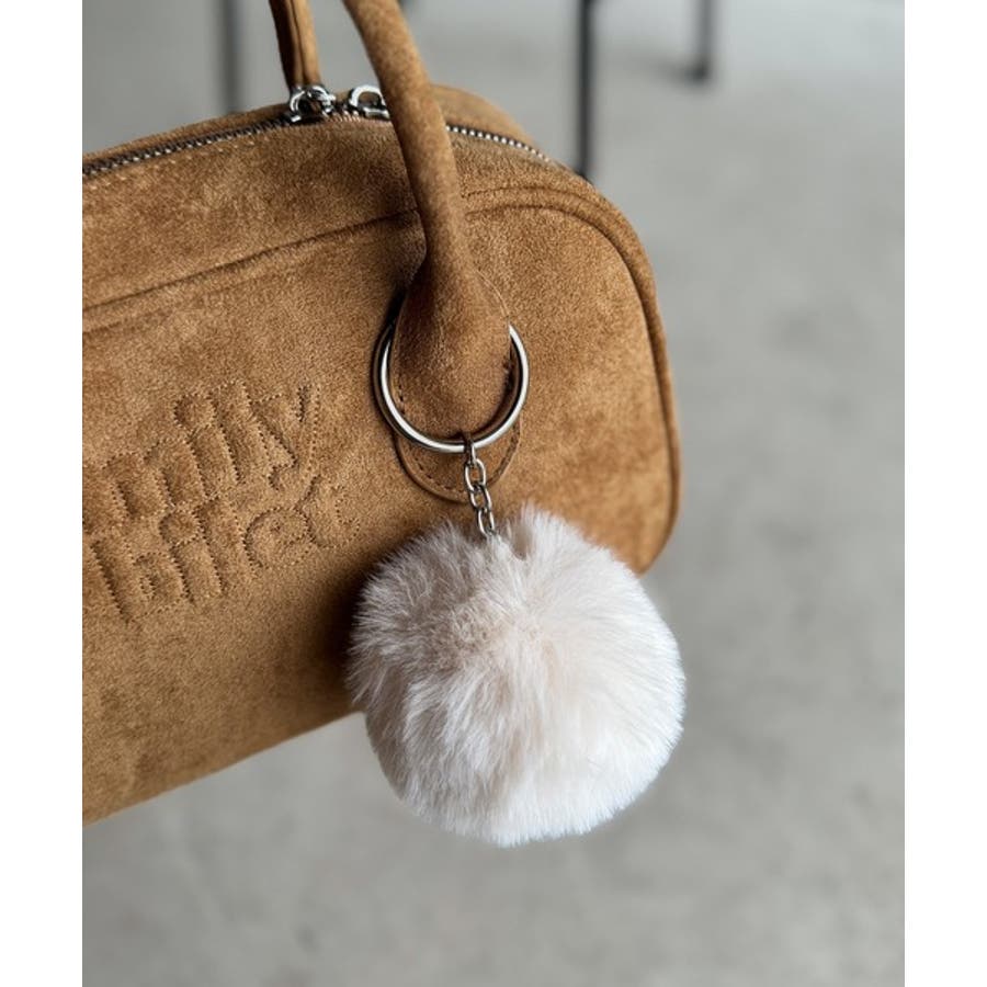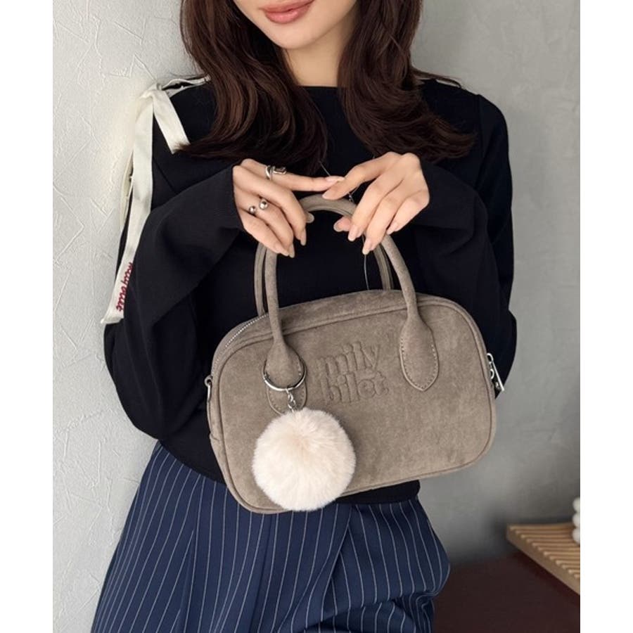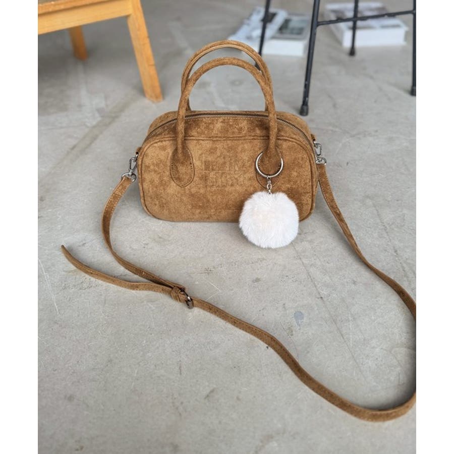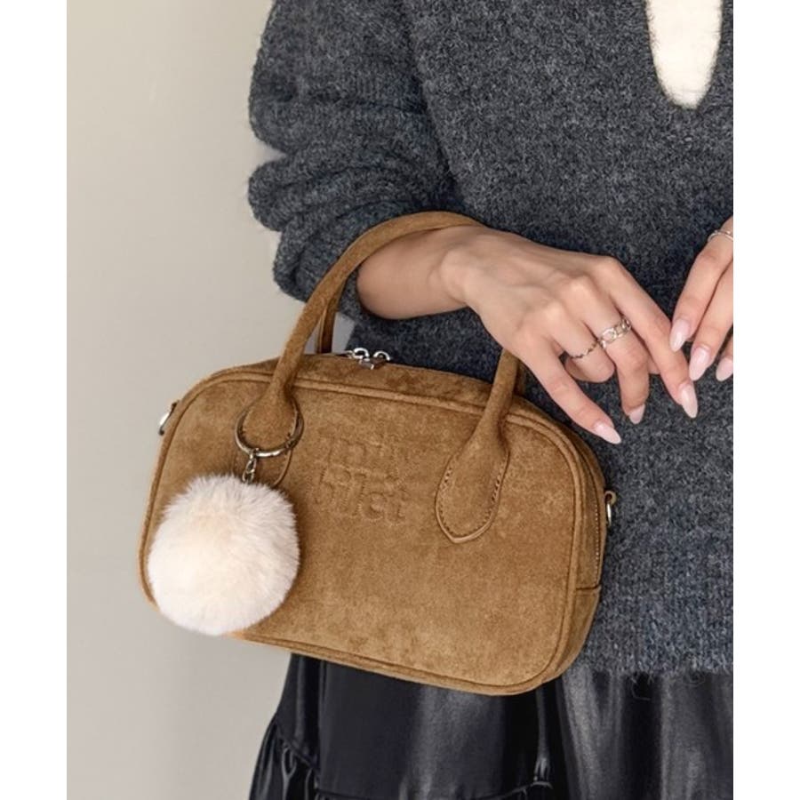 スエードライクの素材にぼんぼんファーチャームと、可愛いがいっぱいのミニボストン♪