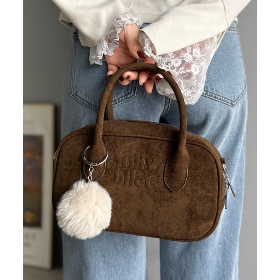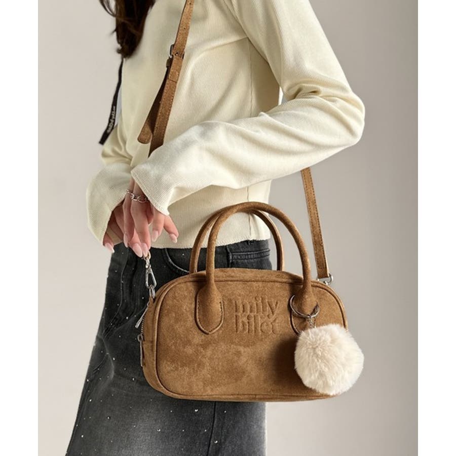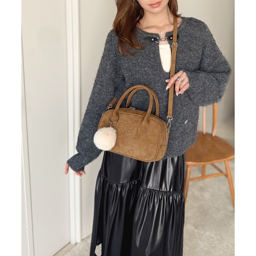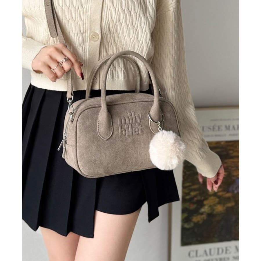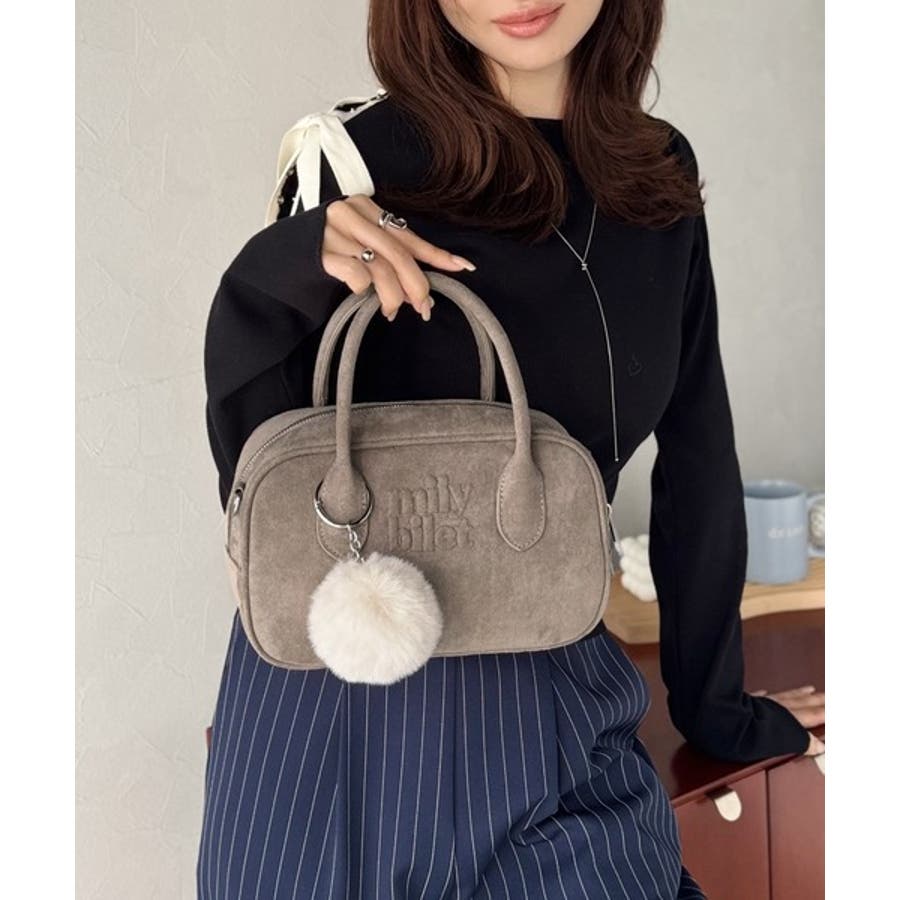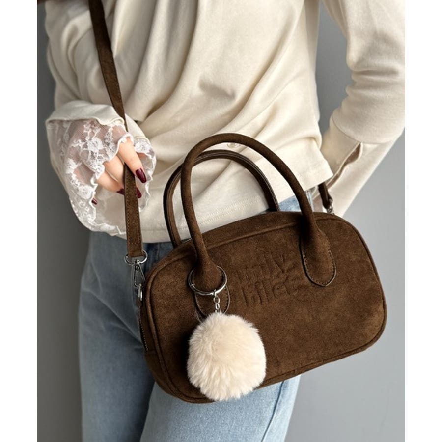 スエードライクの素材にぼんぼんファーチャームと、可愛いがいっぱいのミニボストン♪