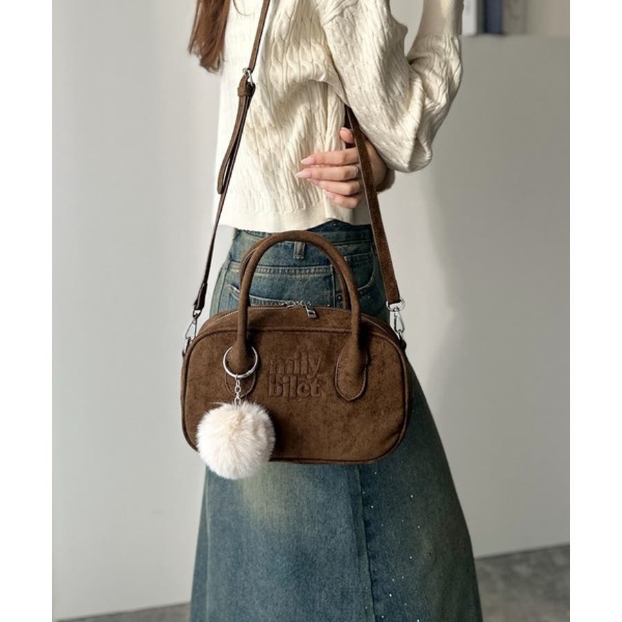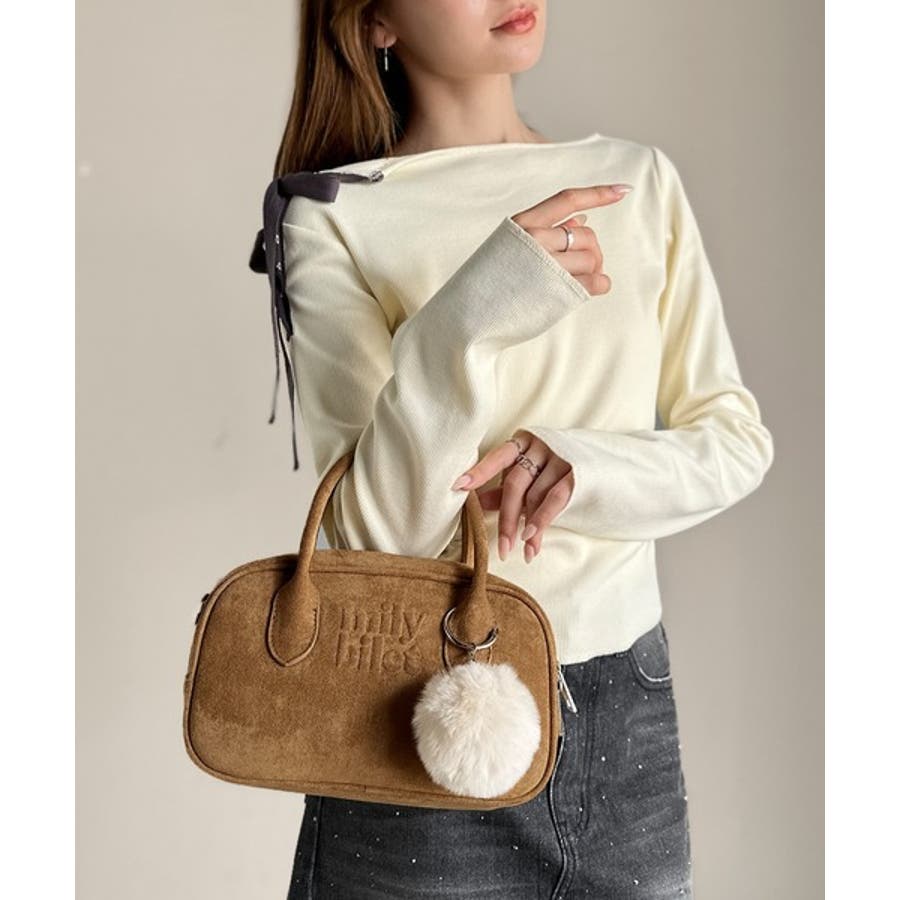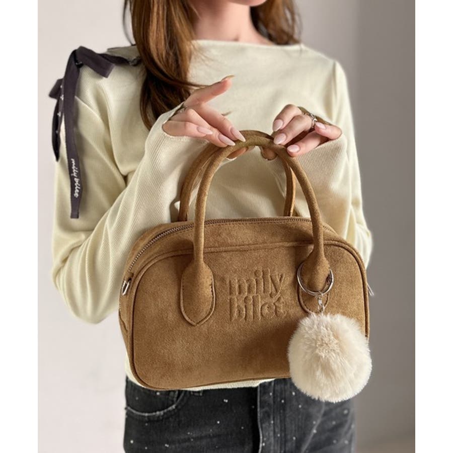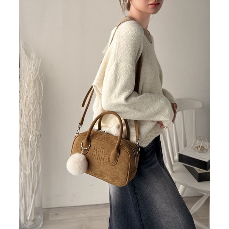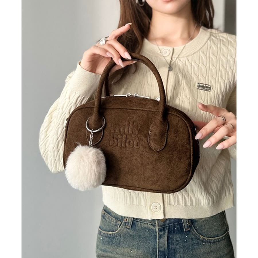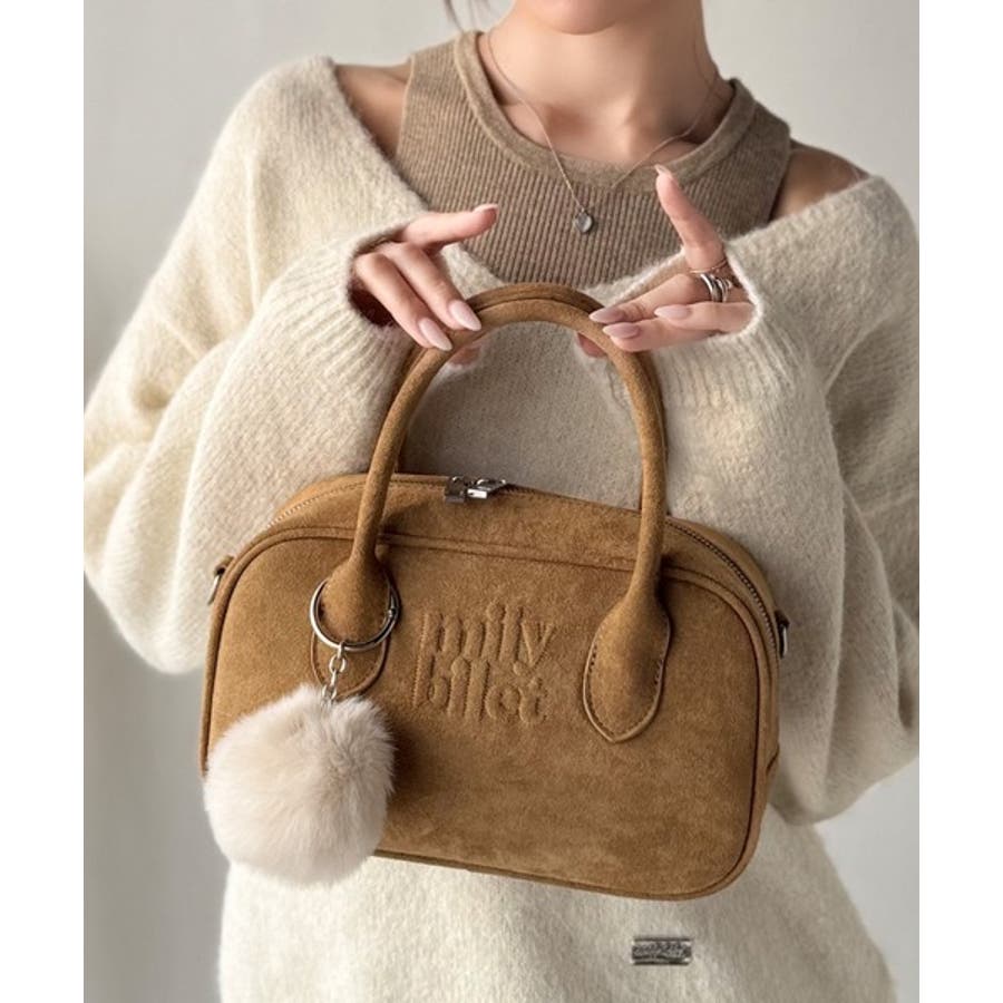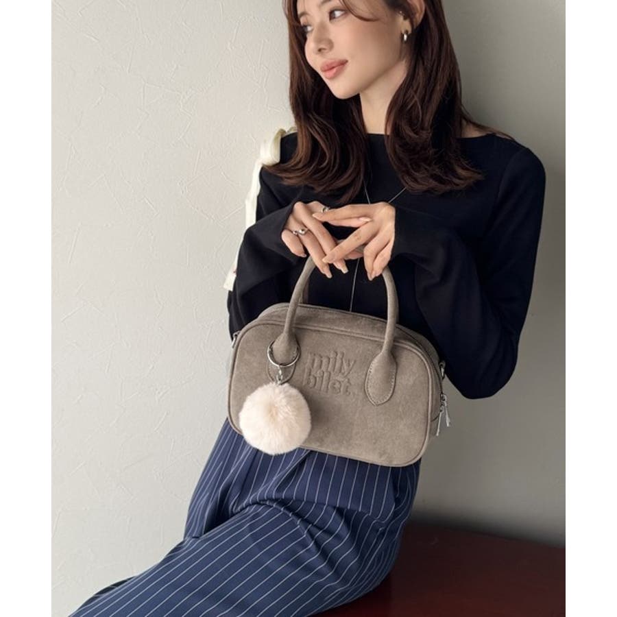 スエードライクの素材にぼんぼんファーチャームと、可愛いがいっぱいのミニボストン♪