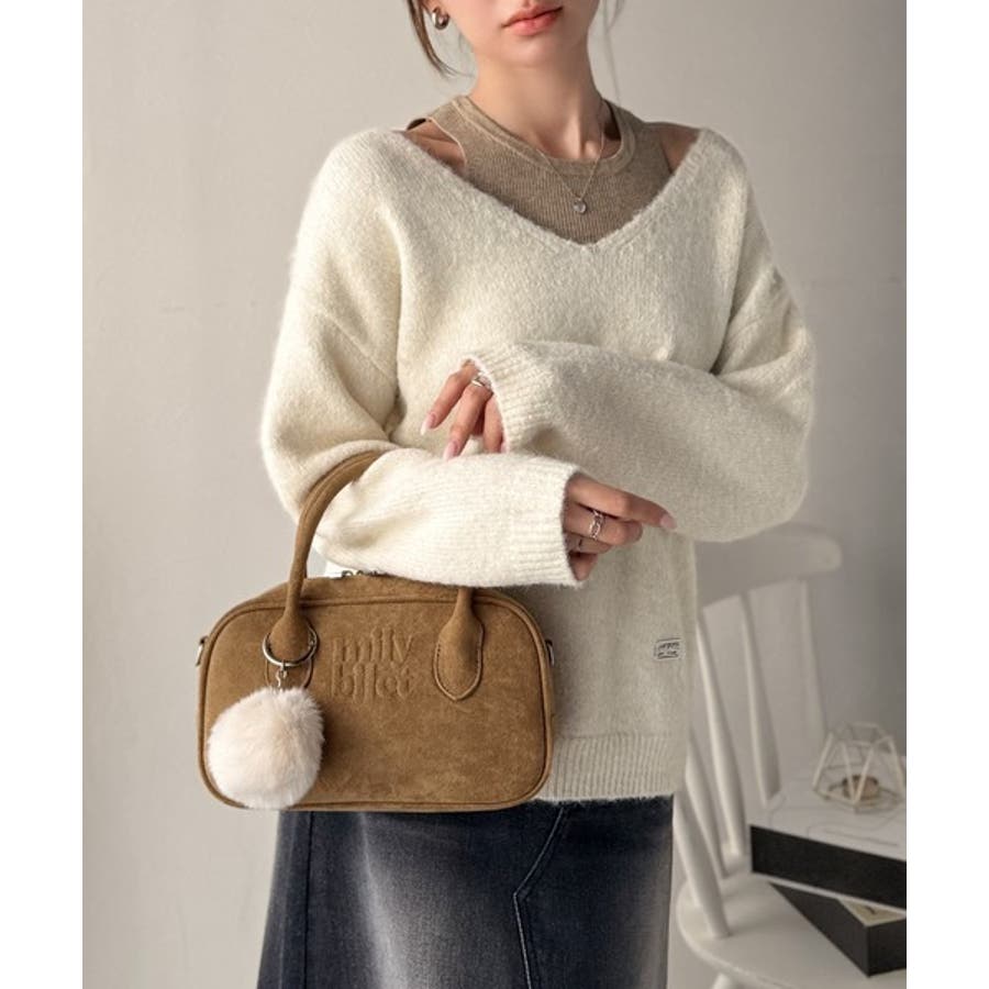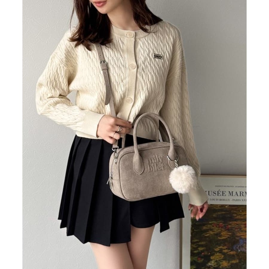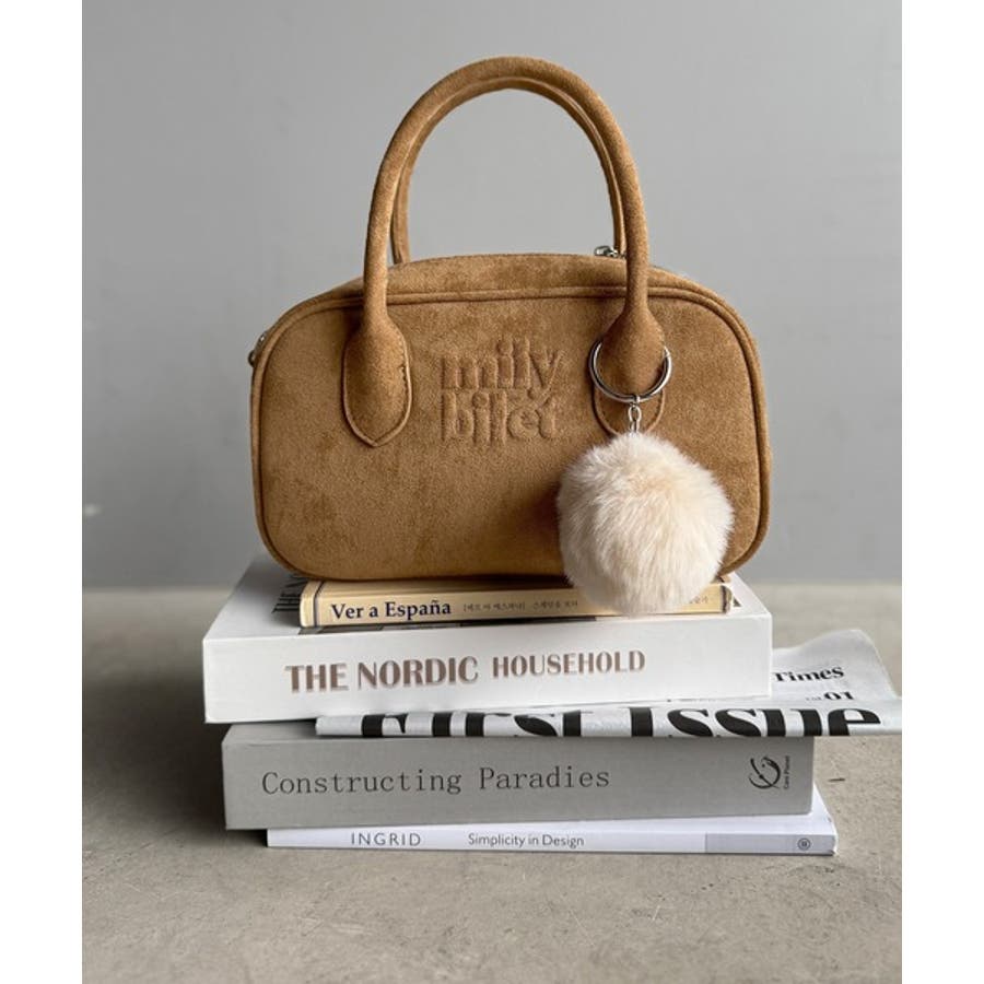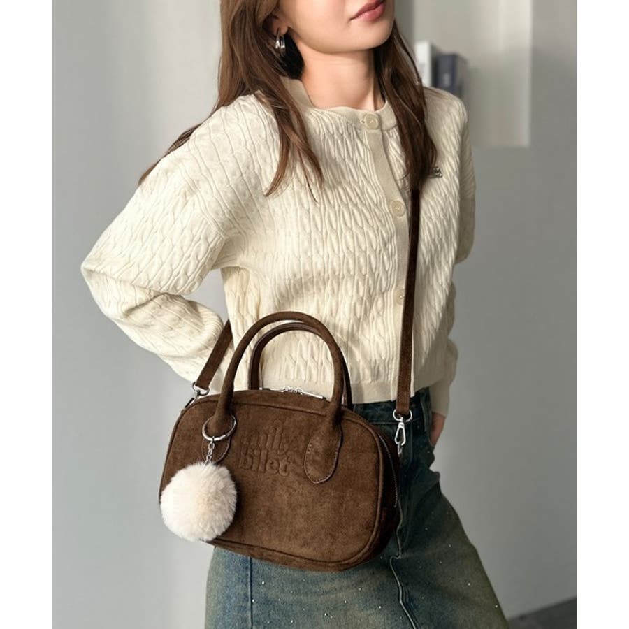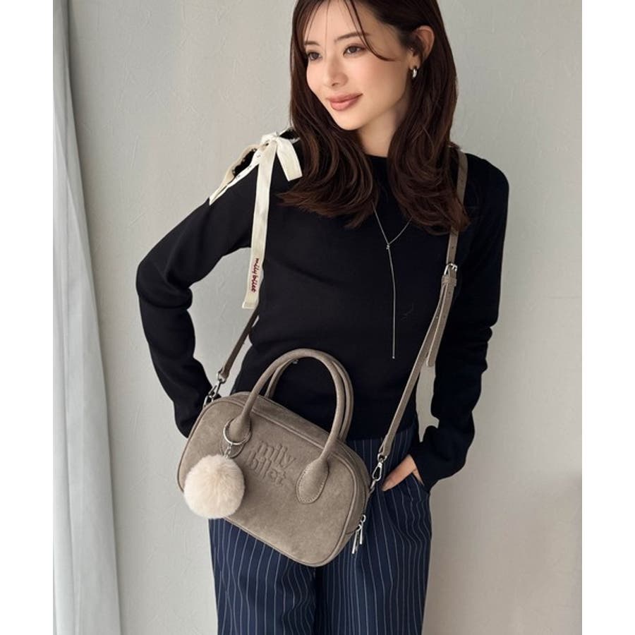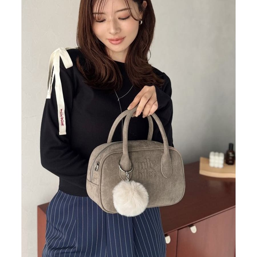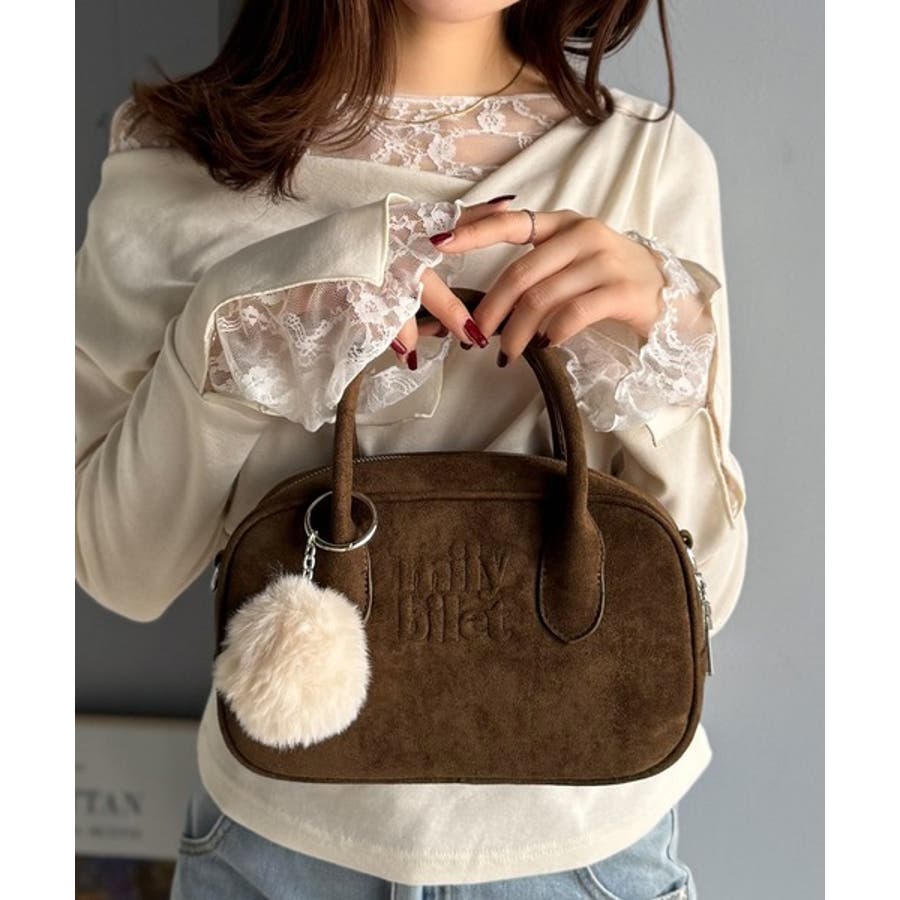 スエードライクの素材にぼんぼんファーチャームと、可愛いがいっぱいのミニボストン♪