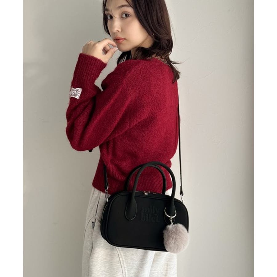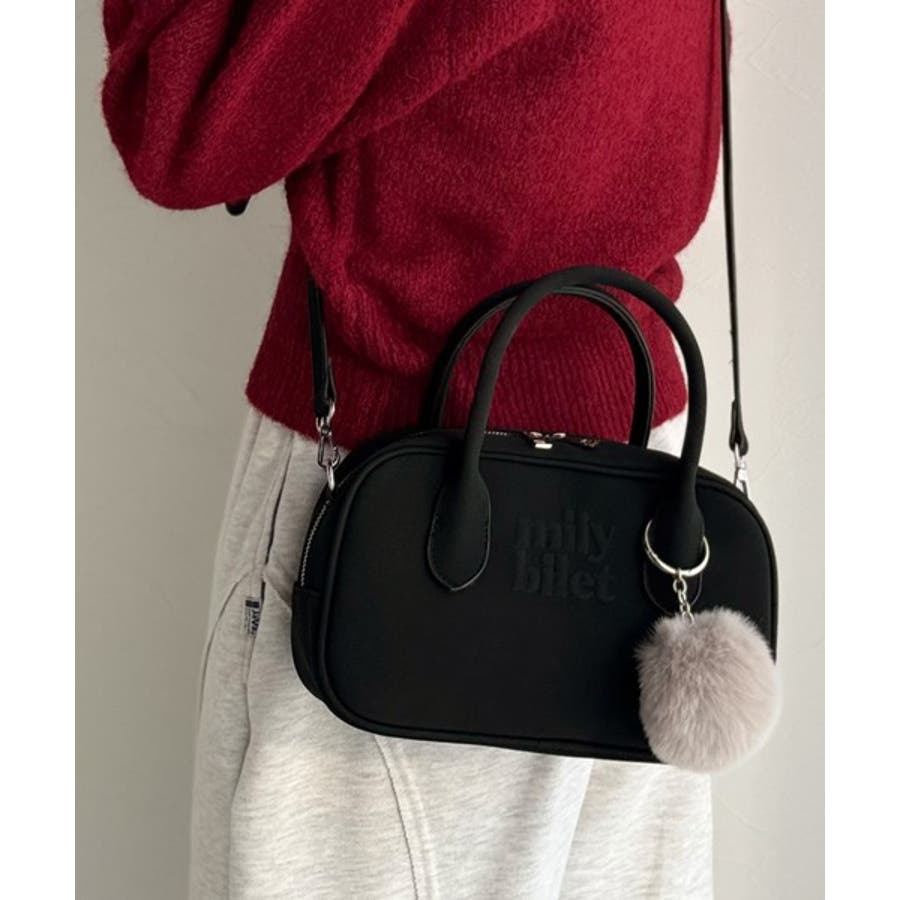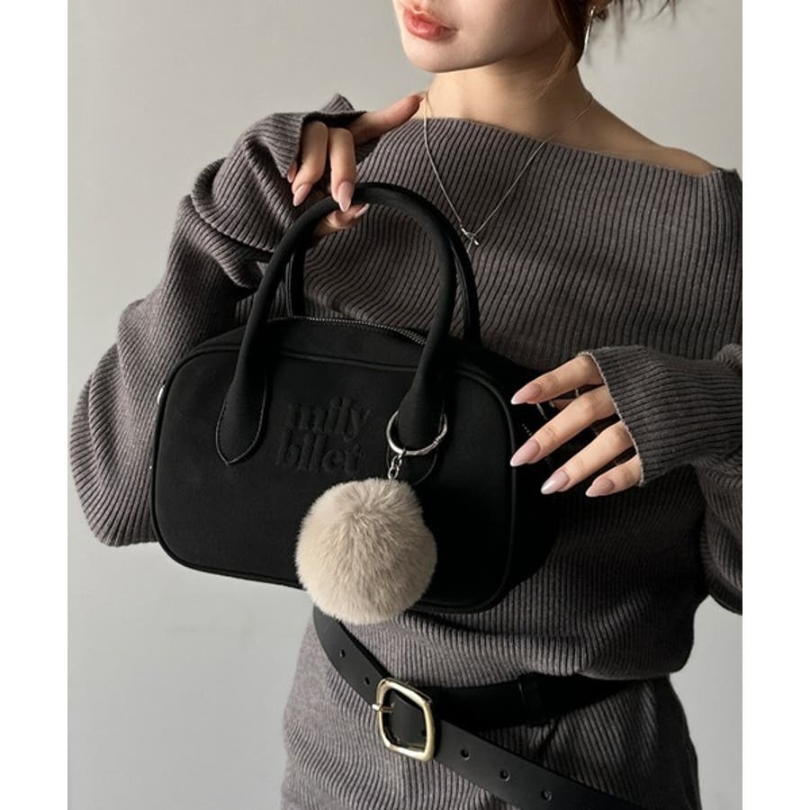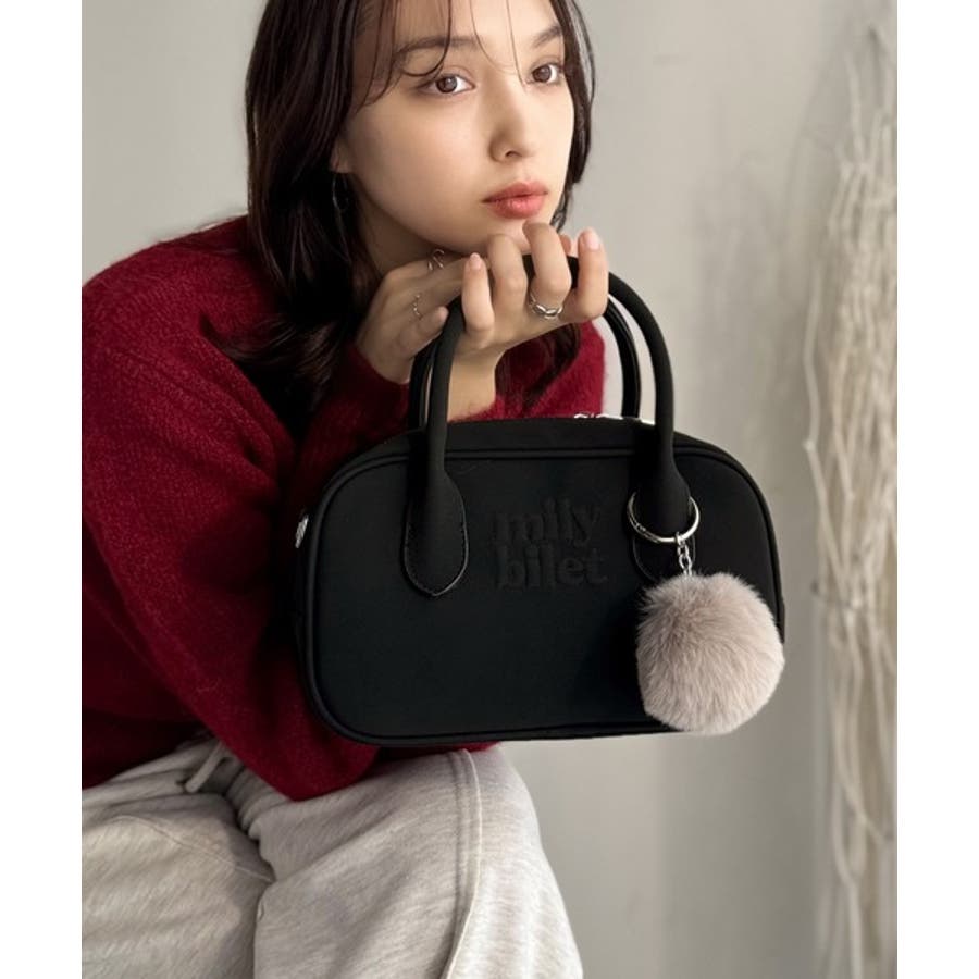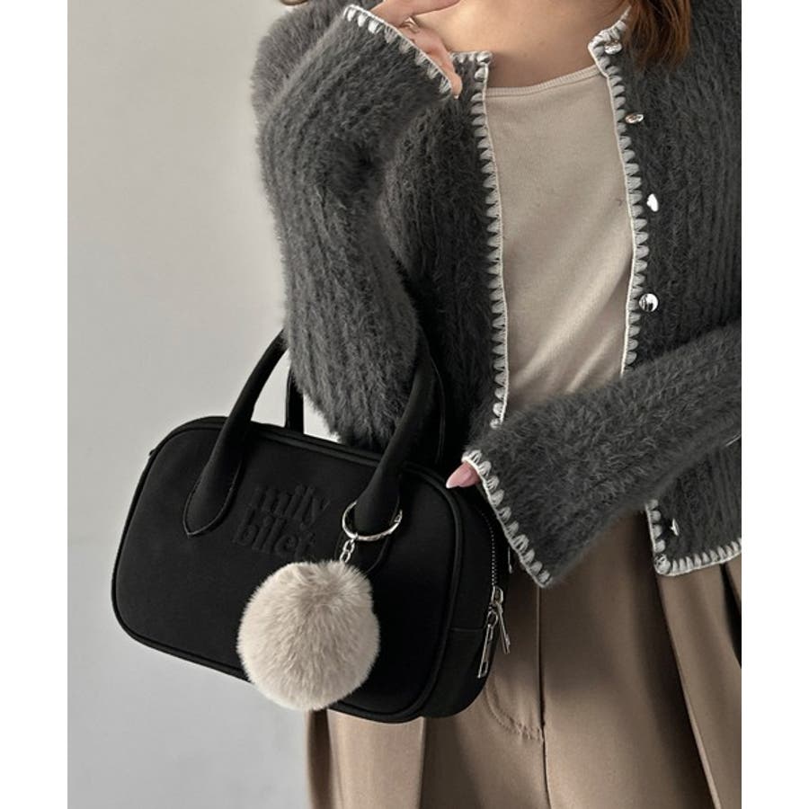 ふわふわのファーチャーム付きのミニボストン!