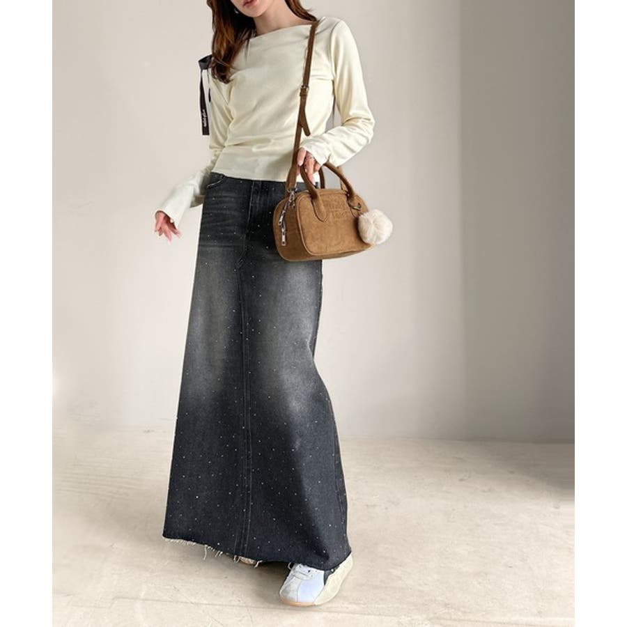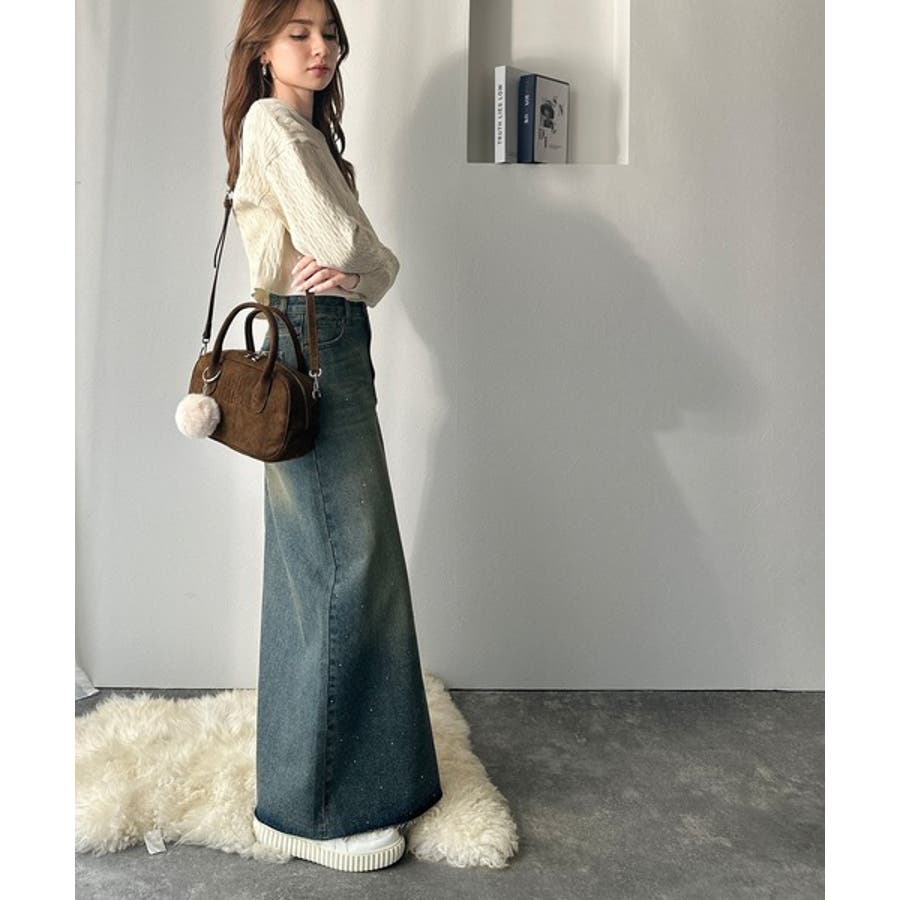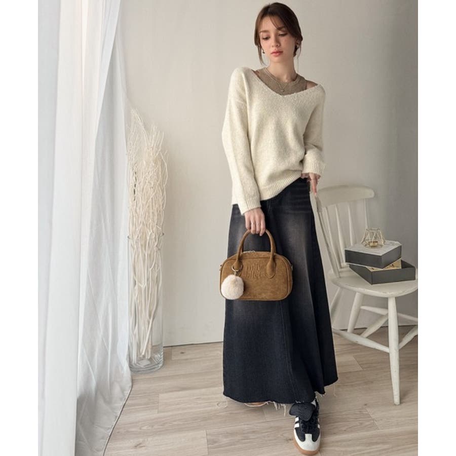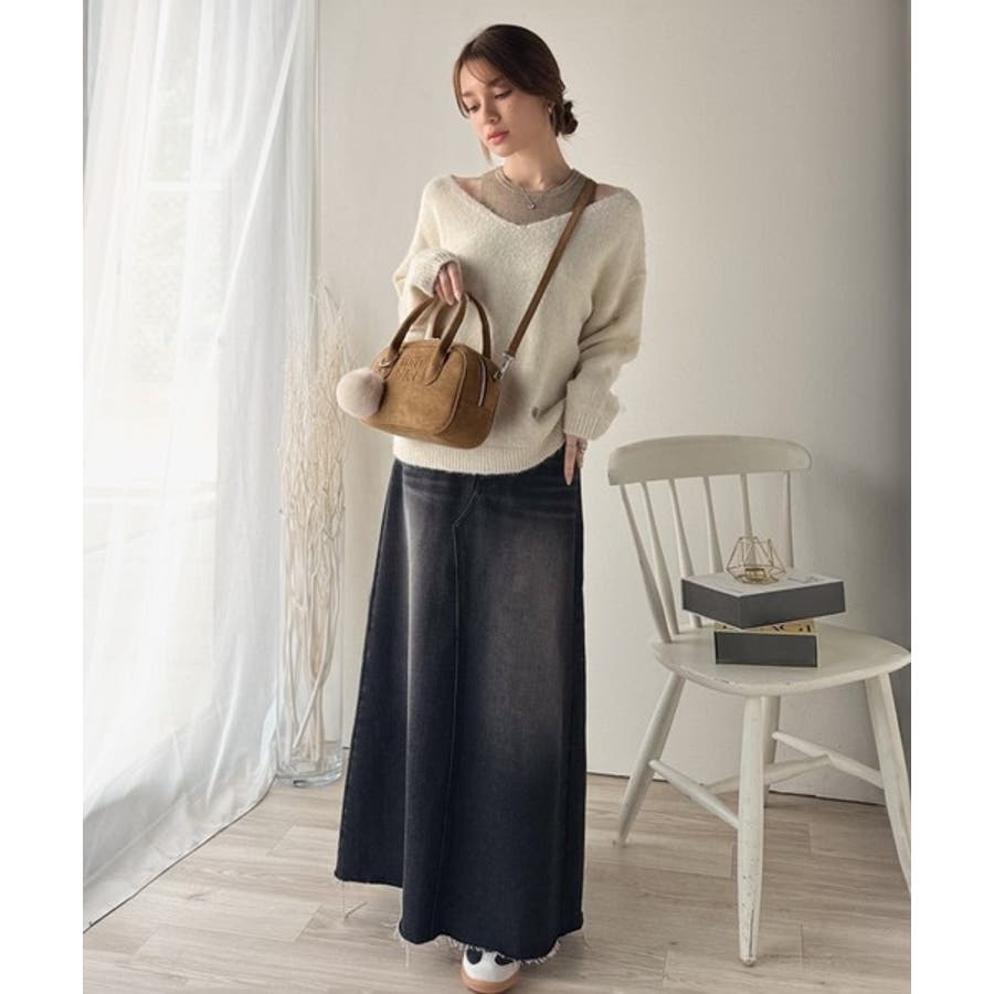 オフショルニットとスカートで合わせたきれいめスタイルにも◎