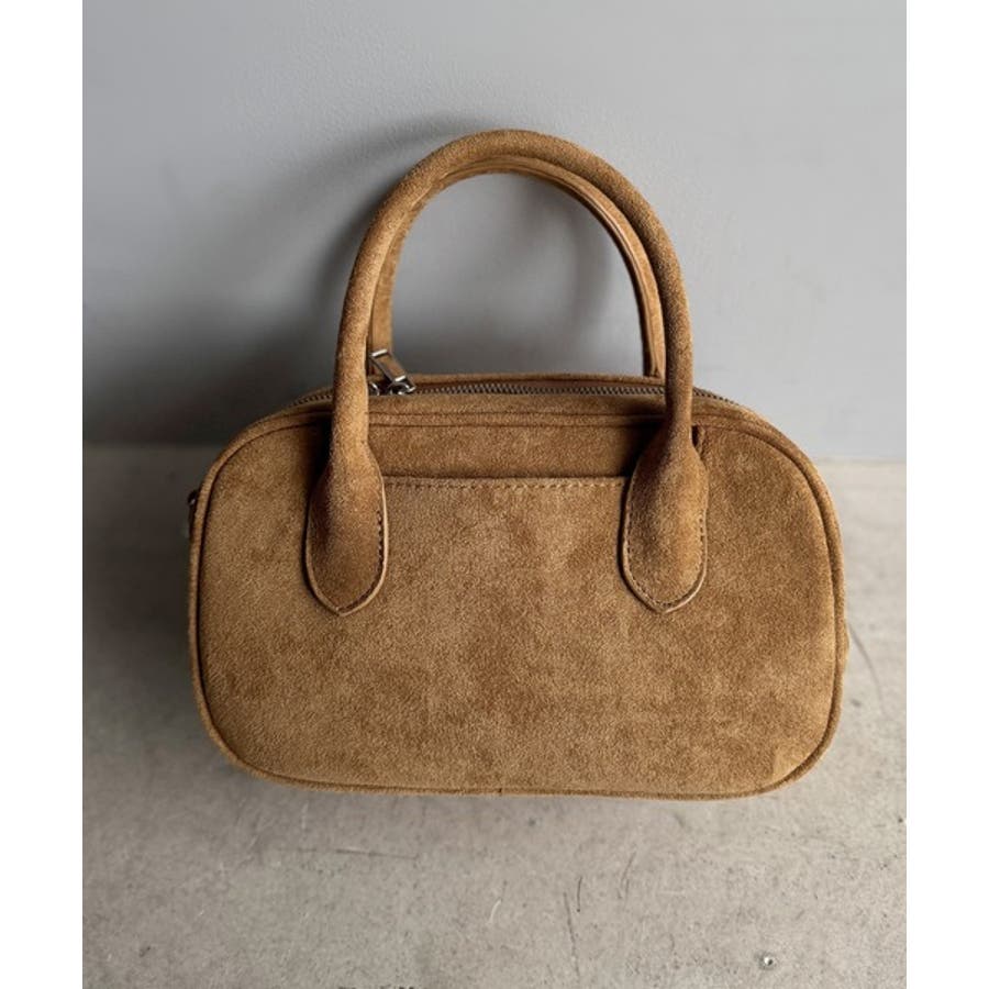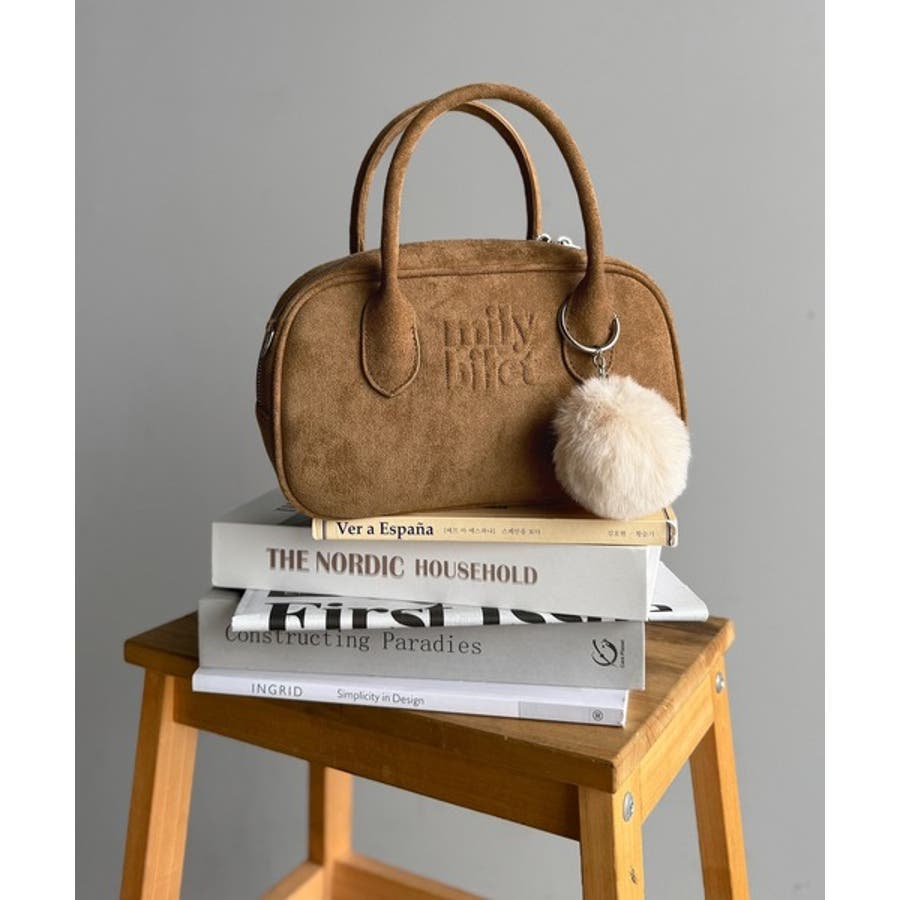 甘い見た目で実力派♪エンボスロゴスウェードライクミニボストンバッグ