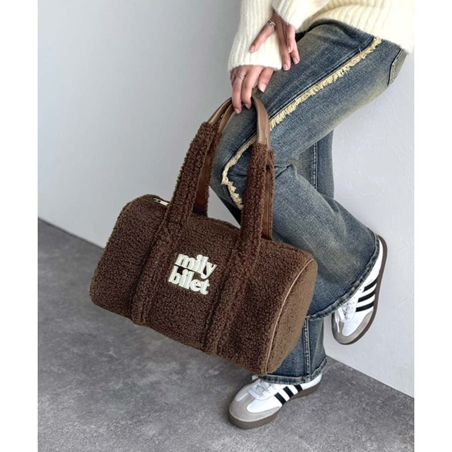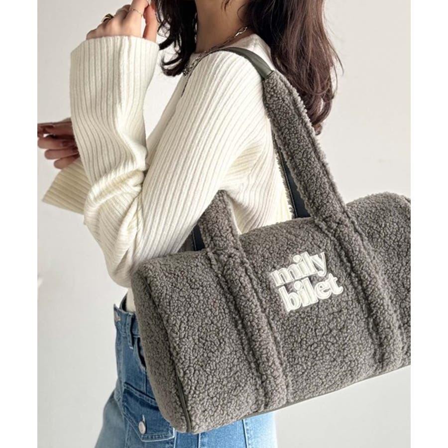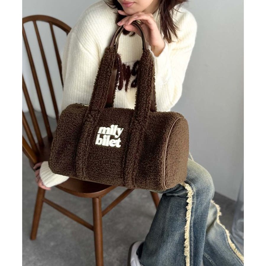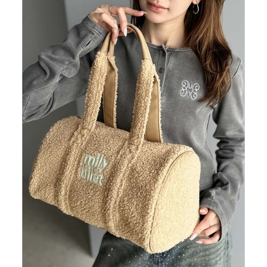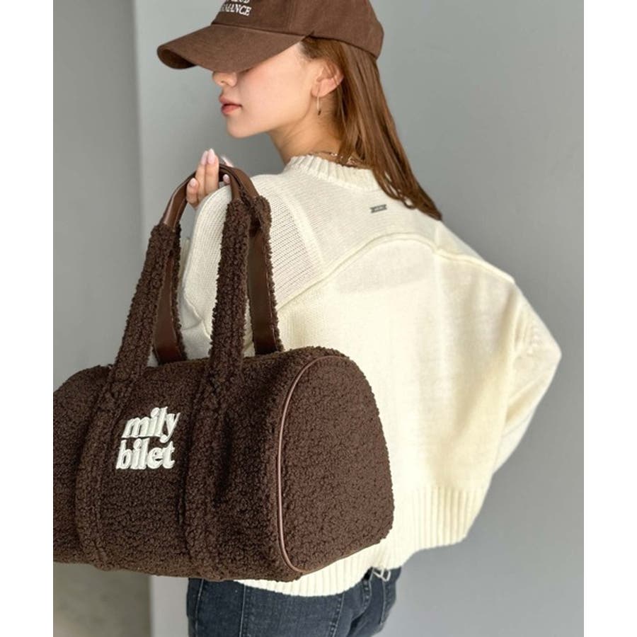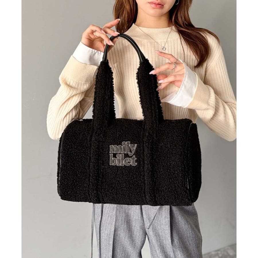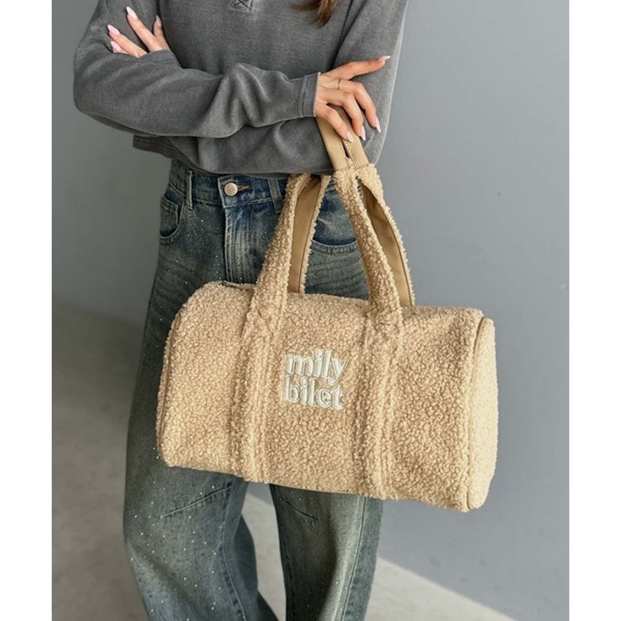 【mily bilet】ふわもこ感がたまらない主役バッグ♪ロゴ刺繍ボアボストンバ…