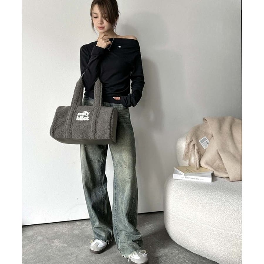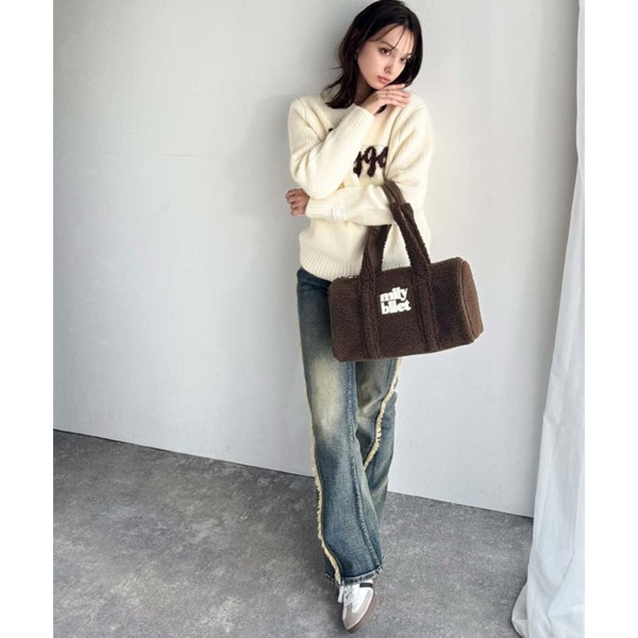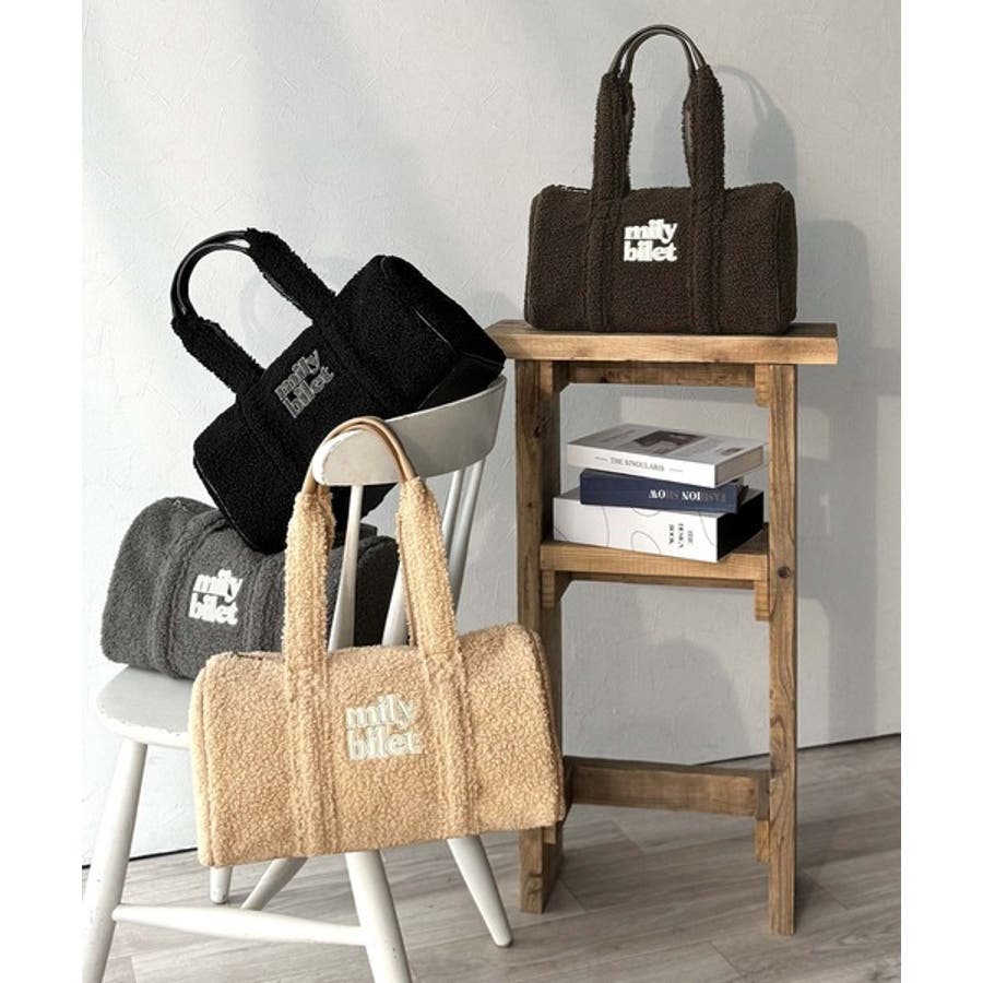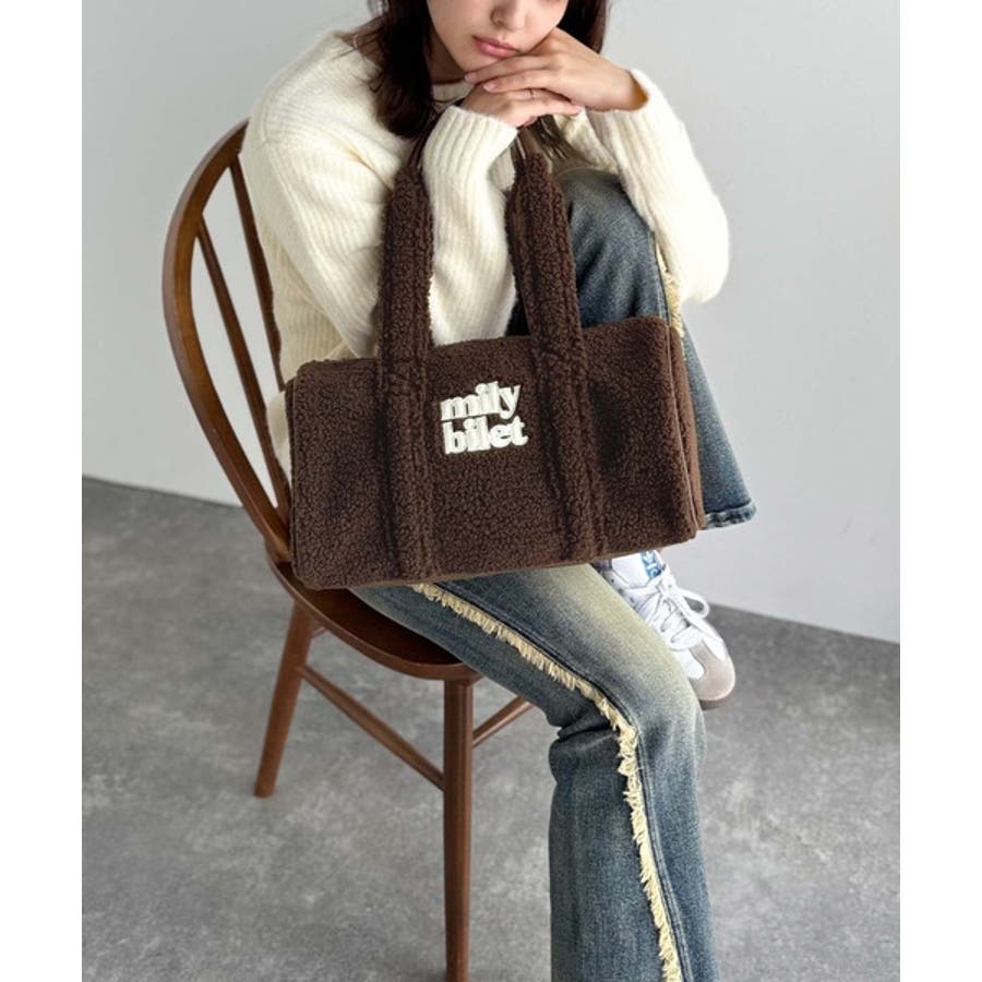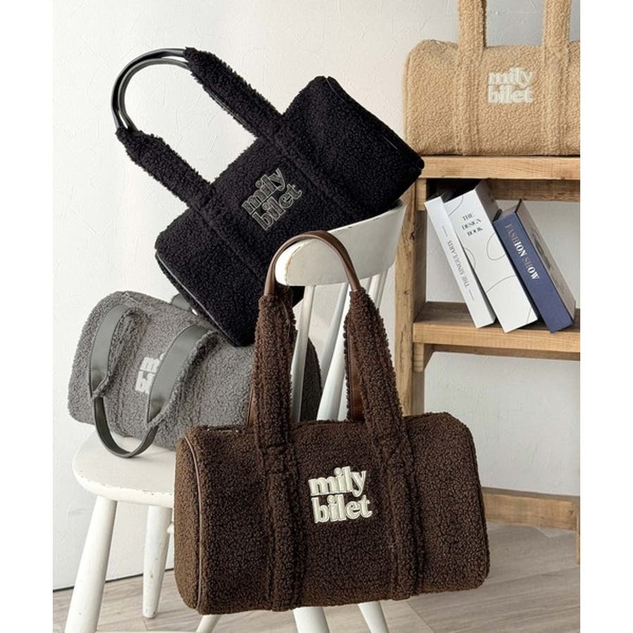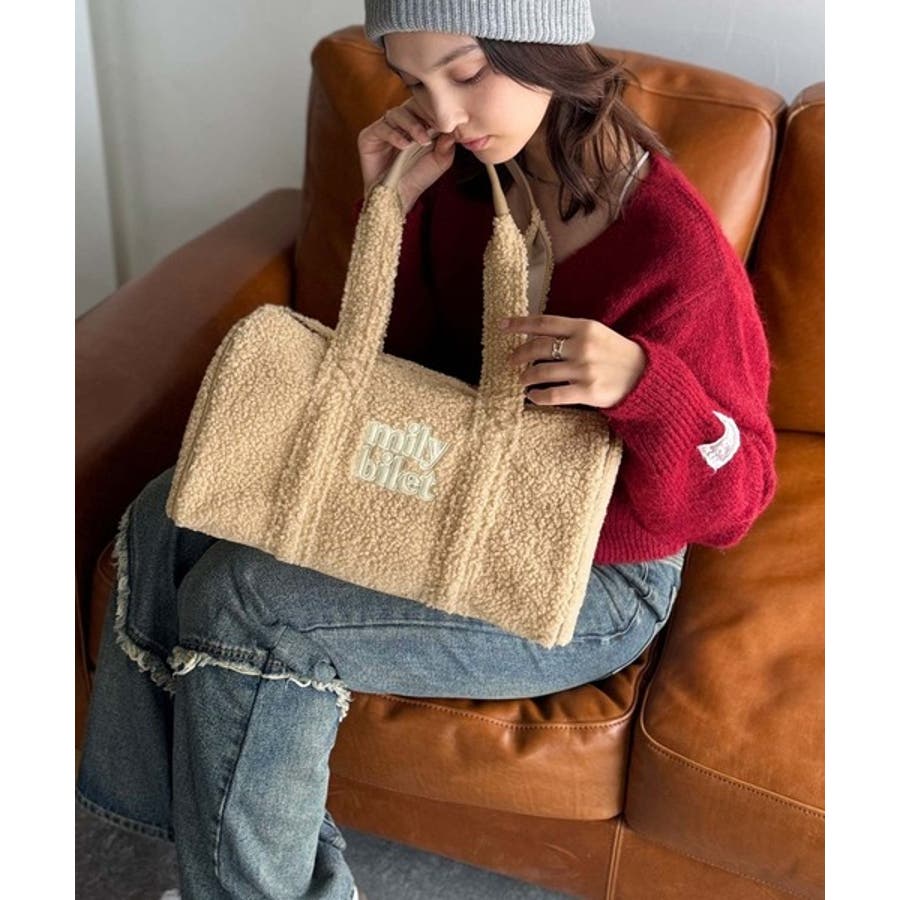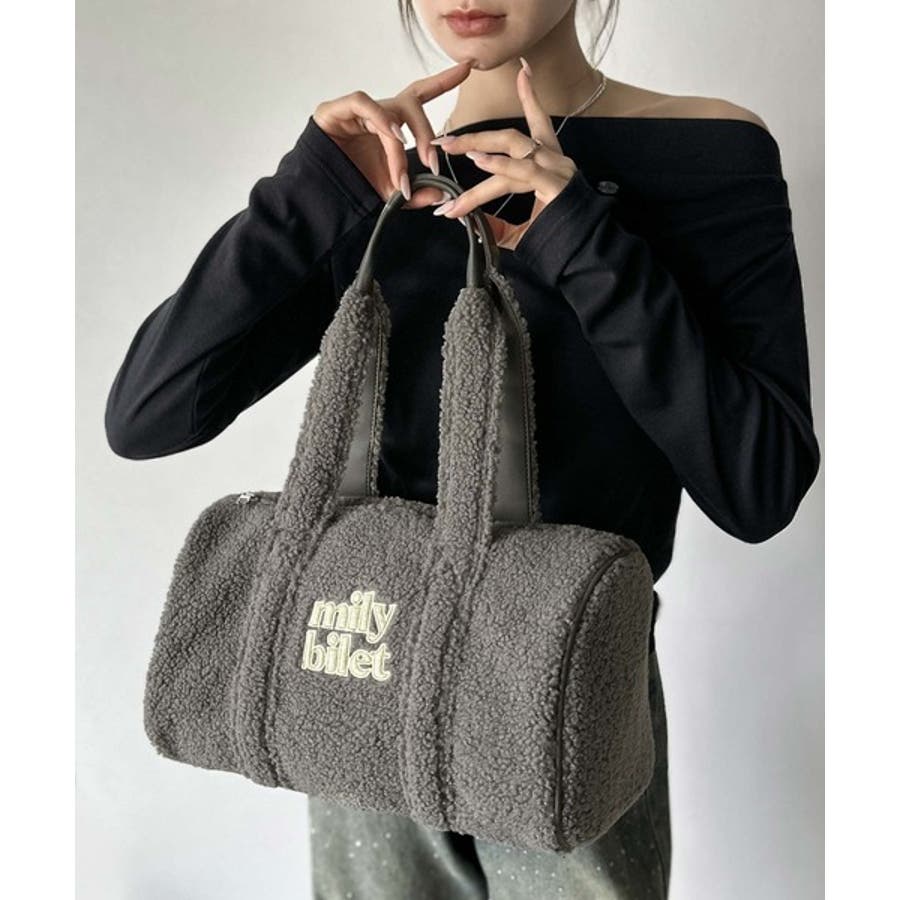 【mily bilet】ふわもこ感がたまらない主役バッグ♪ロゴ刺繍ボアボストンバ…