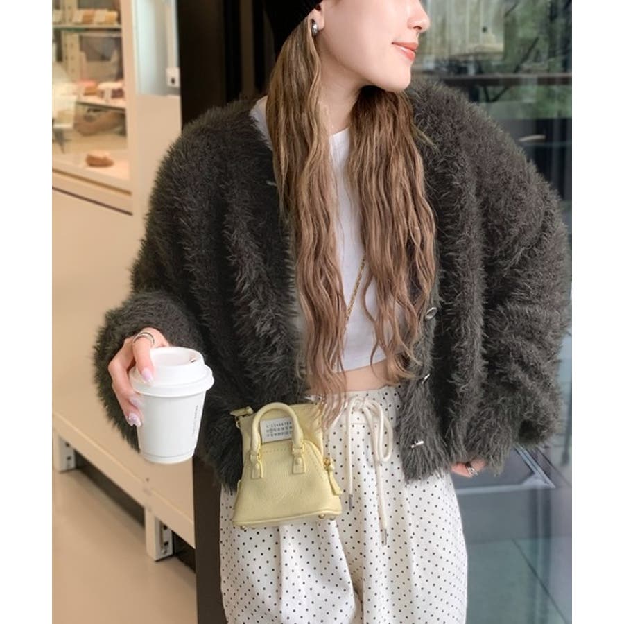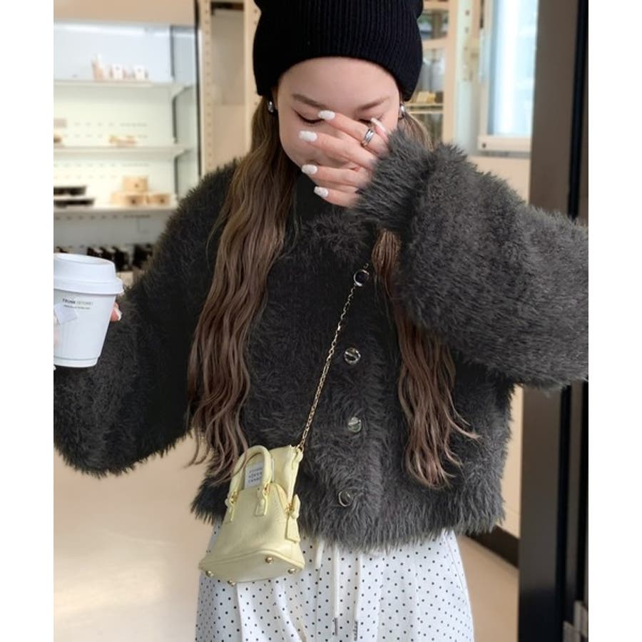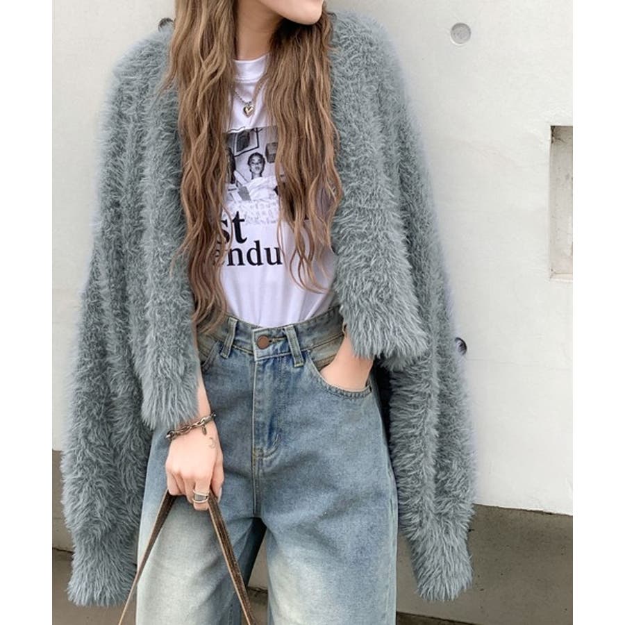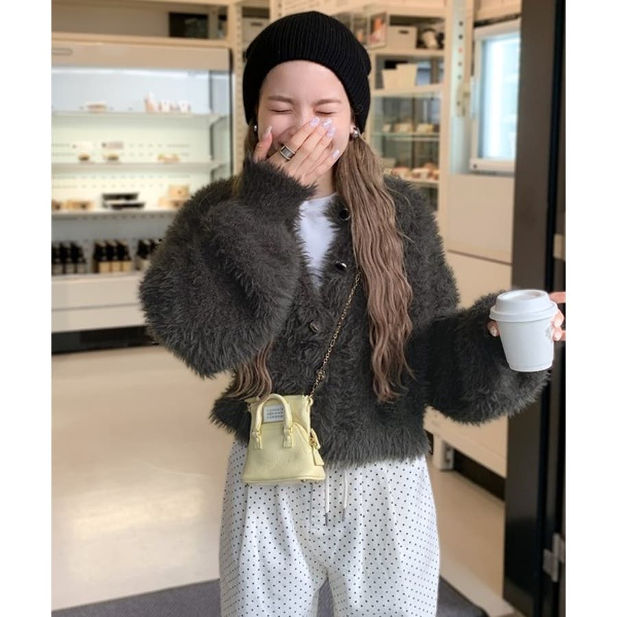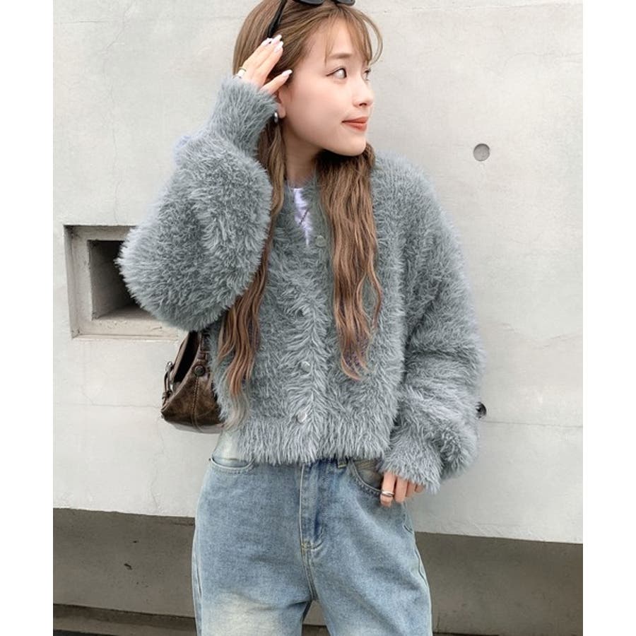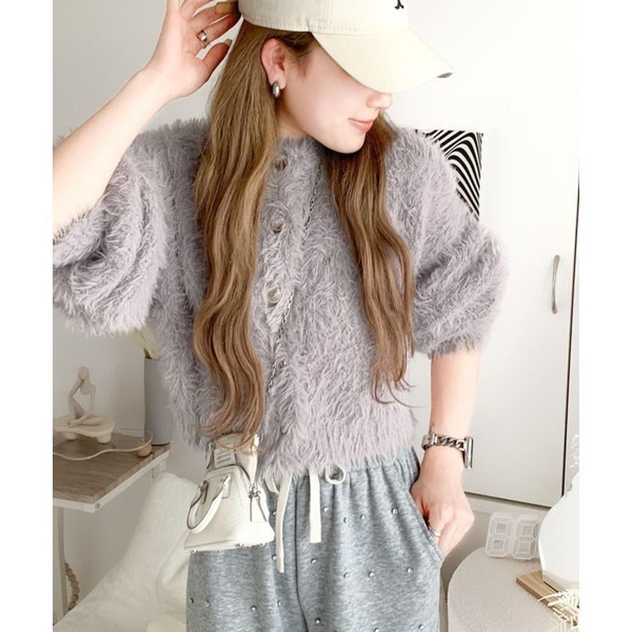ふんわり大人可愛い。ボリューム袖クロプドシャギーカーディガン