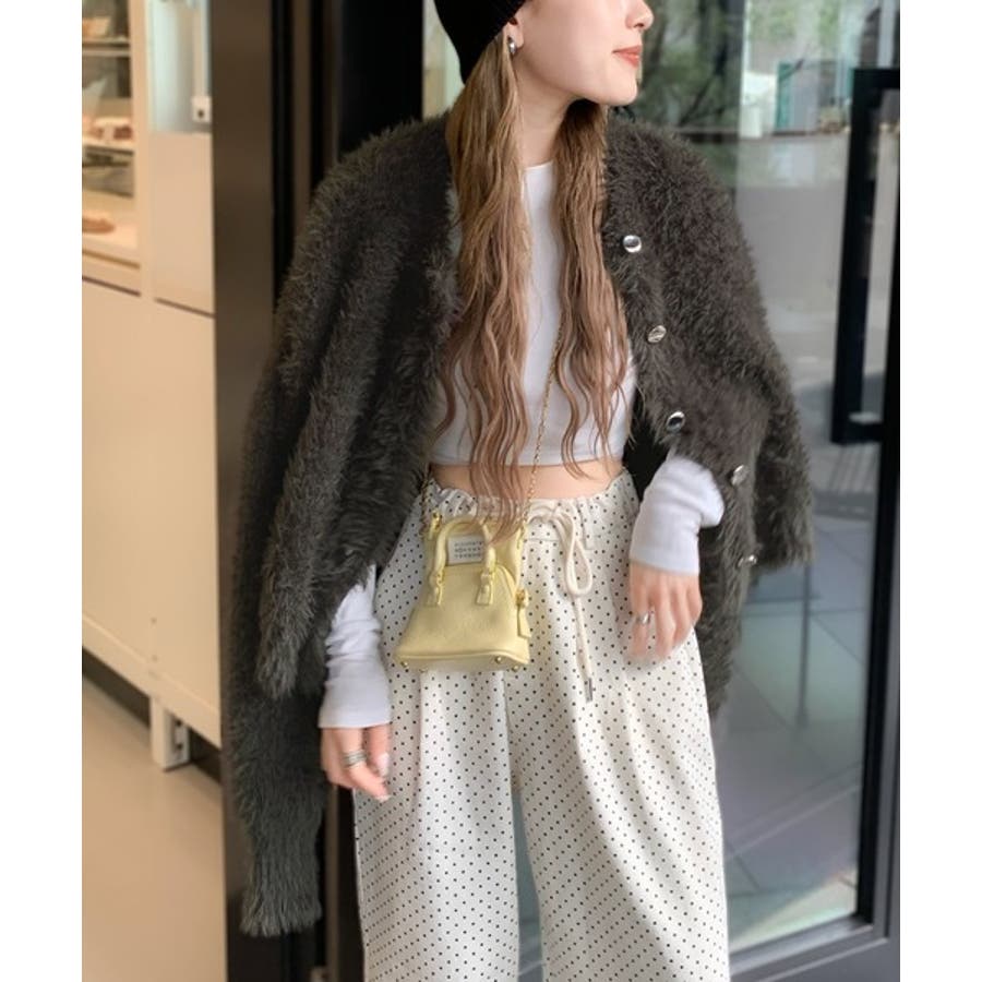 ふんわりしたシャギーニットとボリューム袖で羽織るだけで大人フェミニンな印象をプラスします。