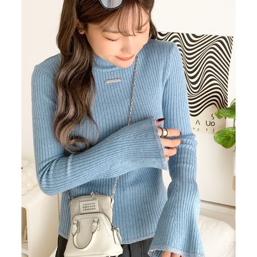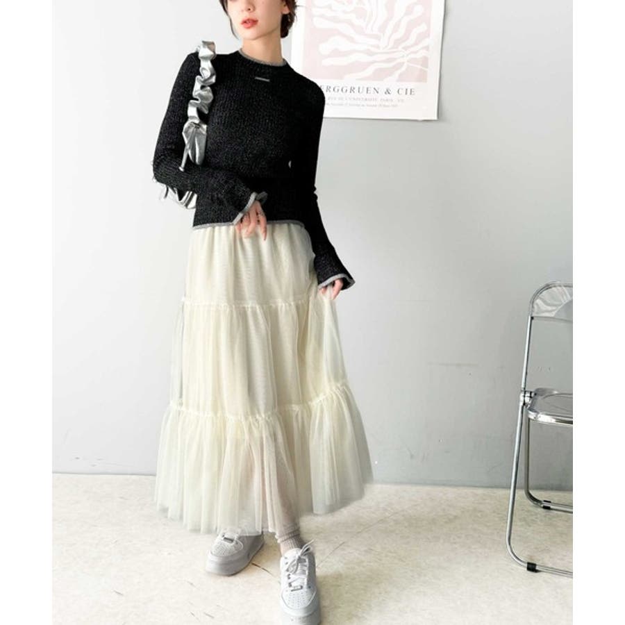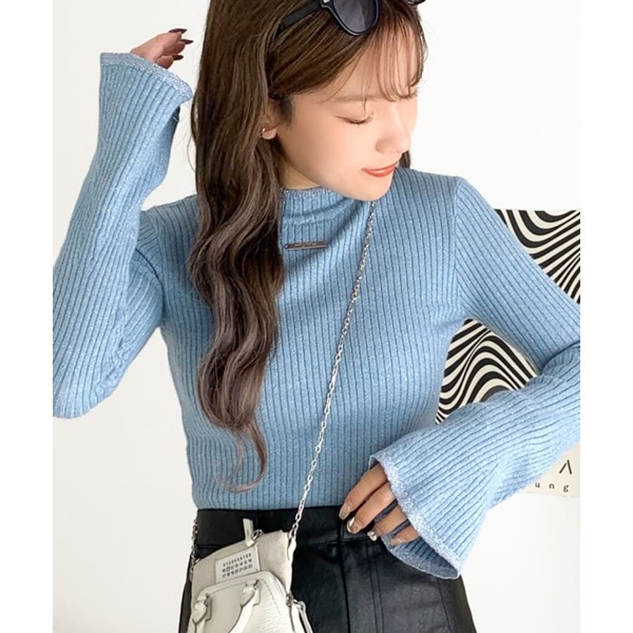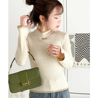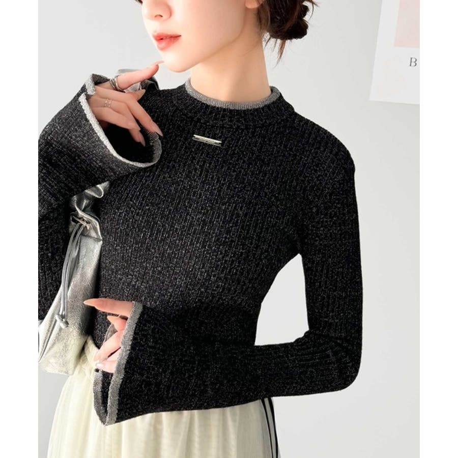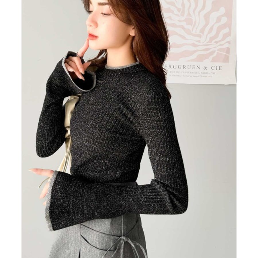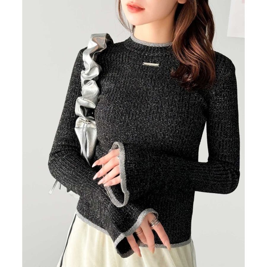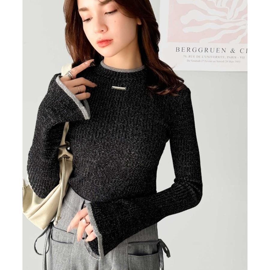 きらきらとしたラメ入り生地が魅力的な「ラメ配色リブプチハイニット」は