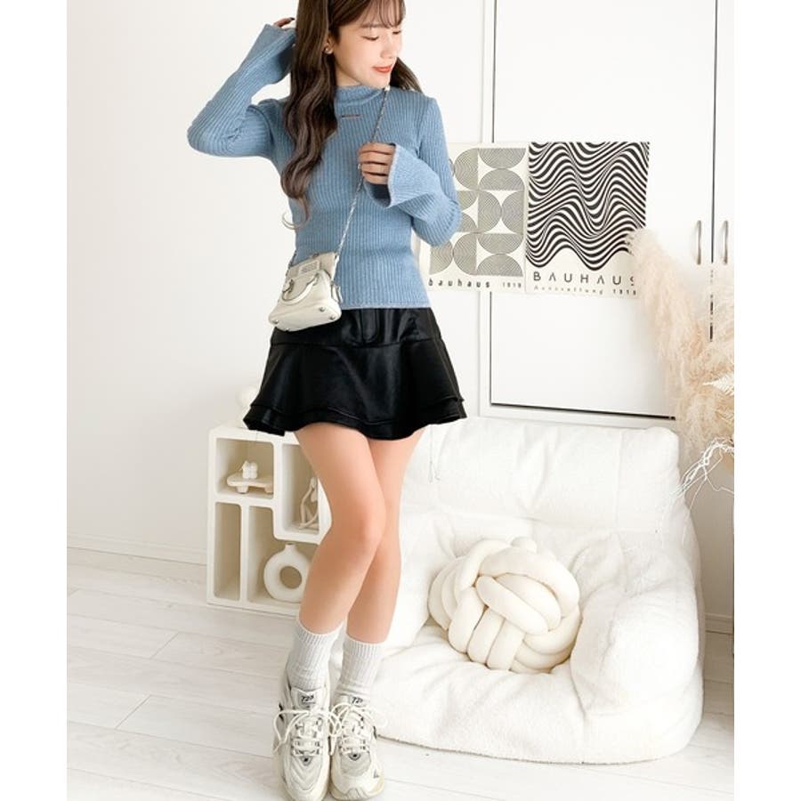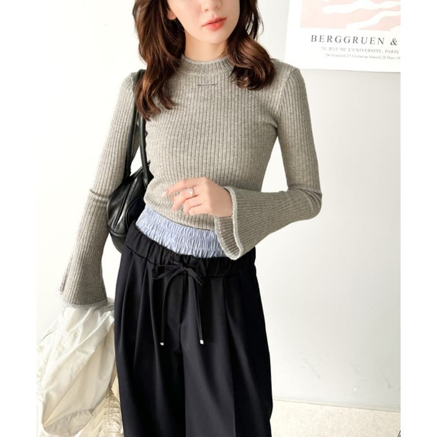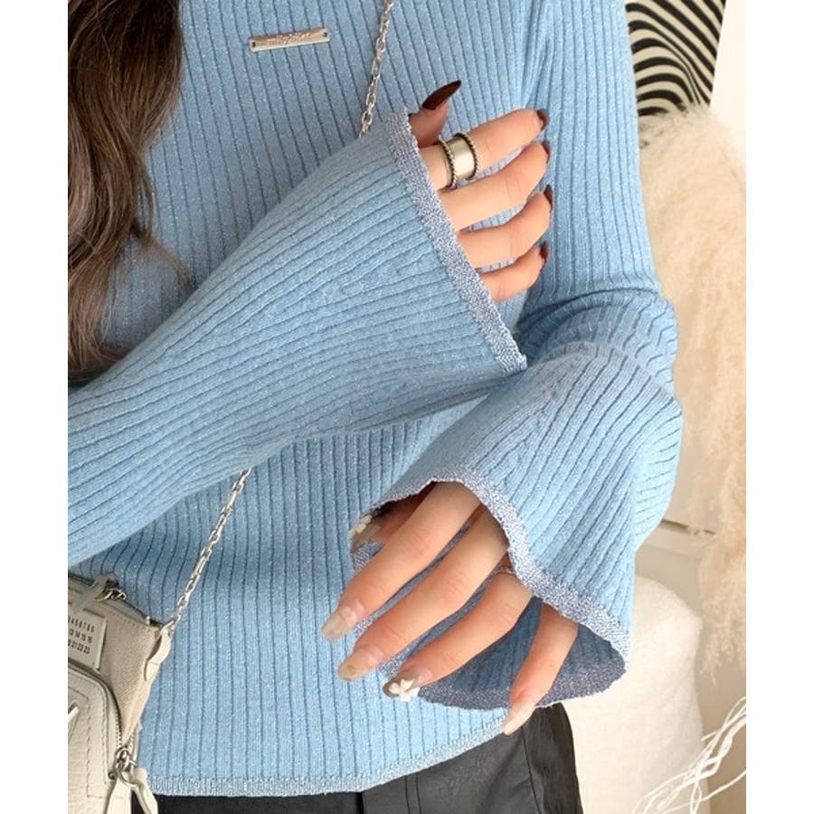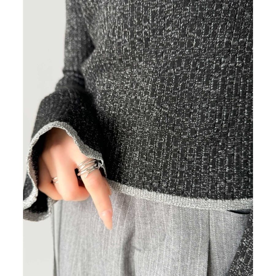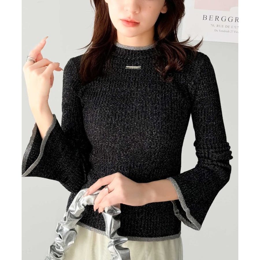 【mily bilet】きらめきと上品さ溢れる。ラメ入りリブプチハイ袖フレアニッ…