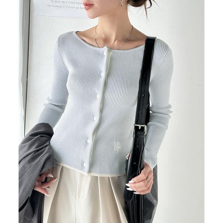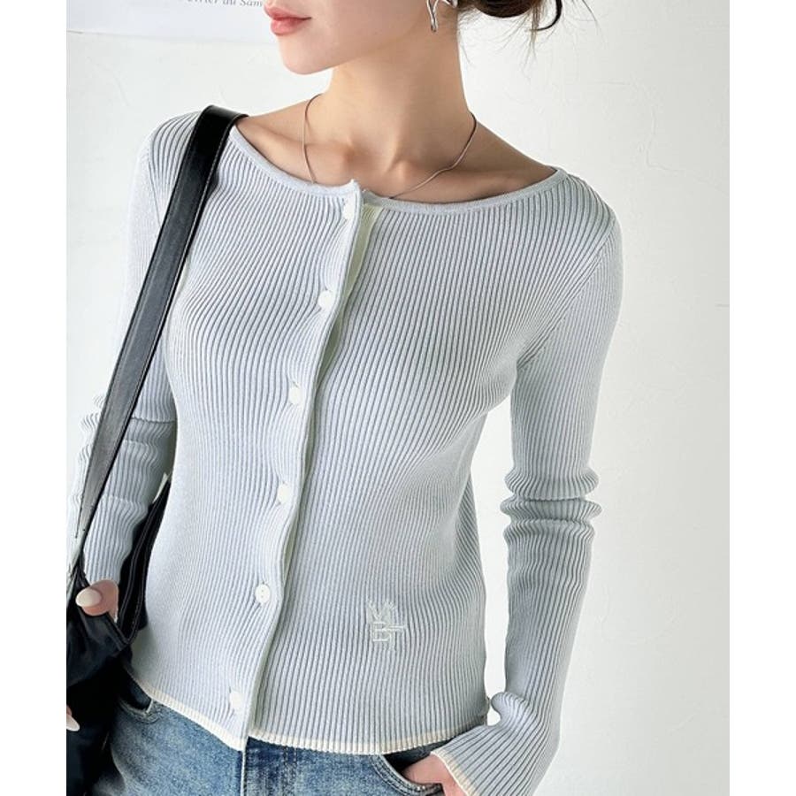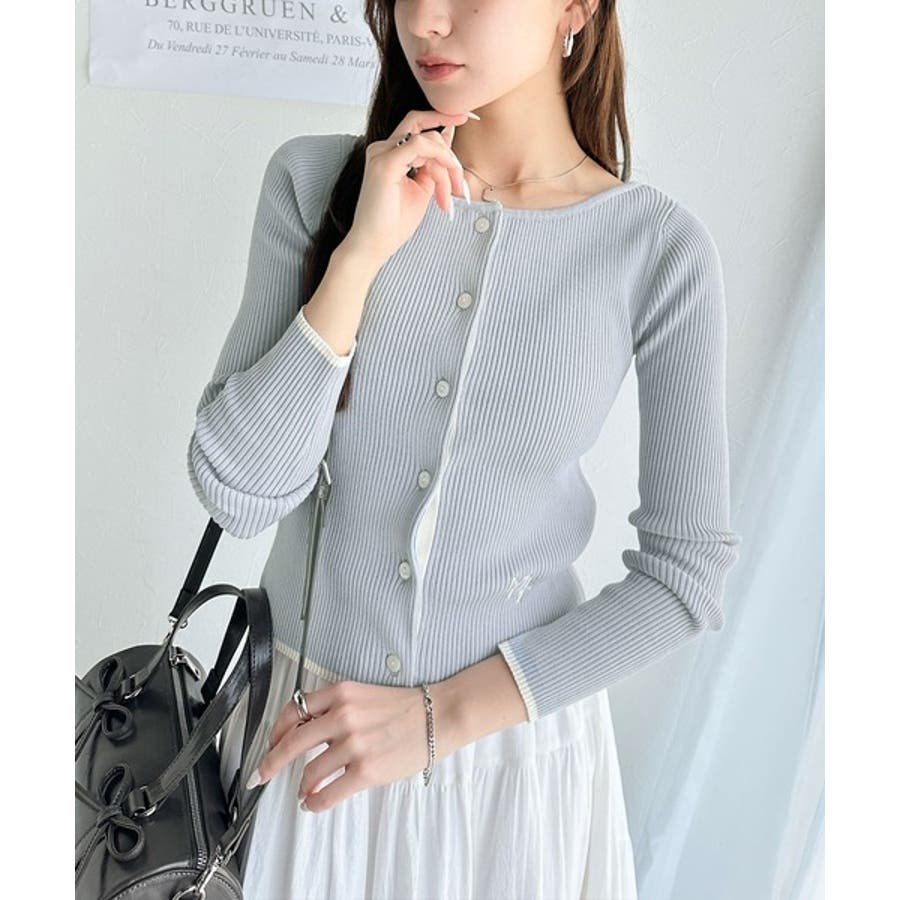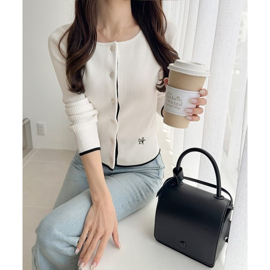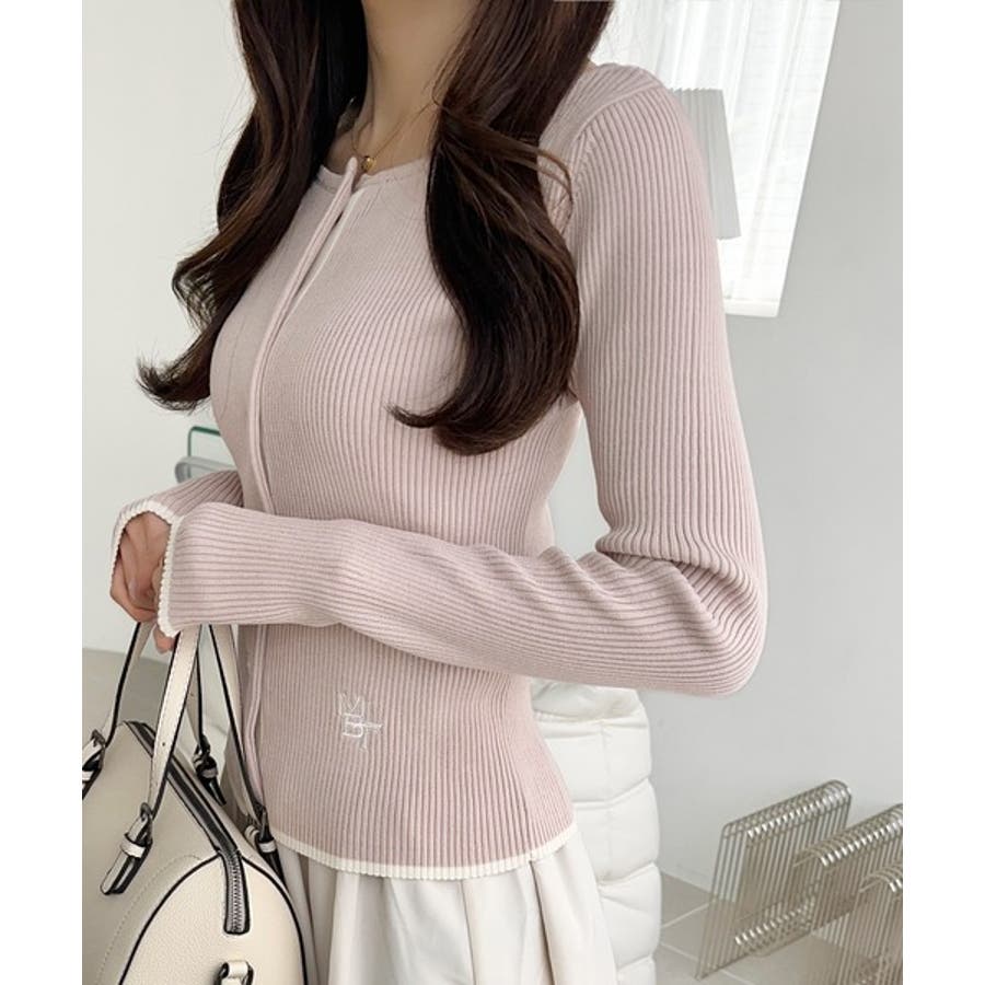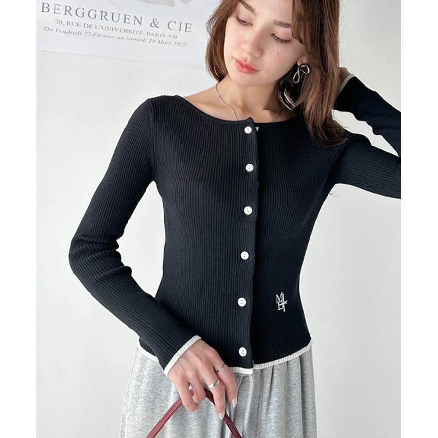 【mily bilet】女性らしさ漂う。裾配色ロゴ刺繍コンパクトニットカーディガ…